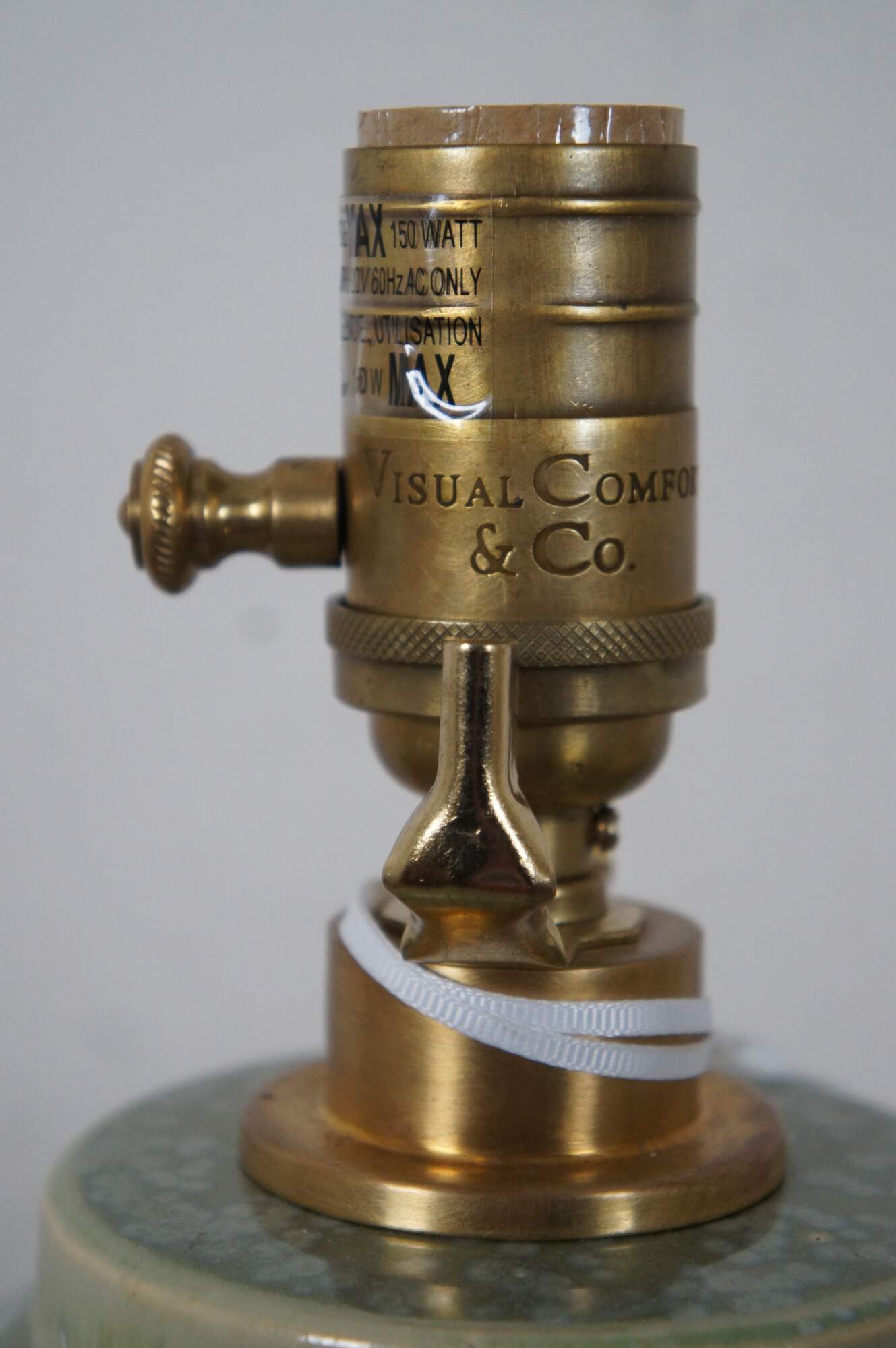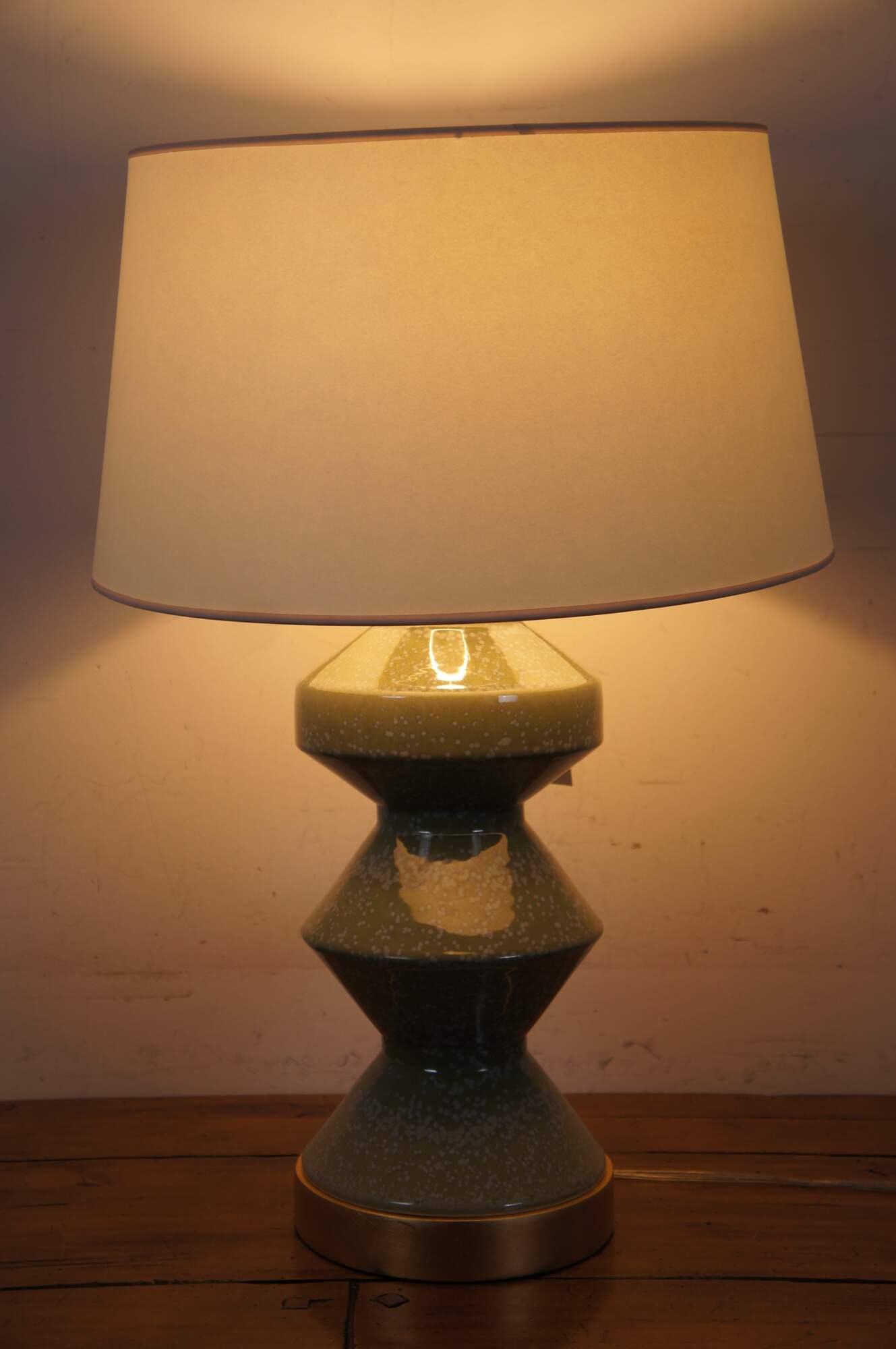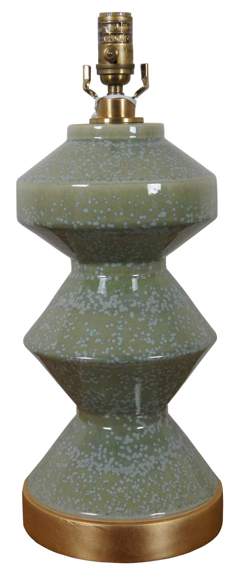 Visual Comfort & Company, E.F. Chapman & Myers Weller Zig-Zag earthenware table lamp in Shellish Kiwi reactive glaze with natural paper shade, product number CHA8666SHK. MSRP: $819