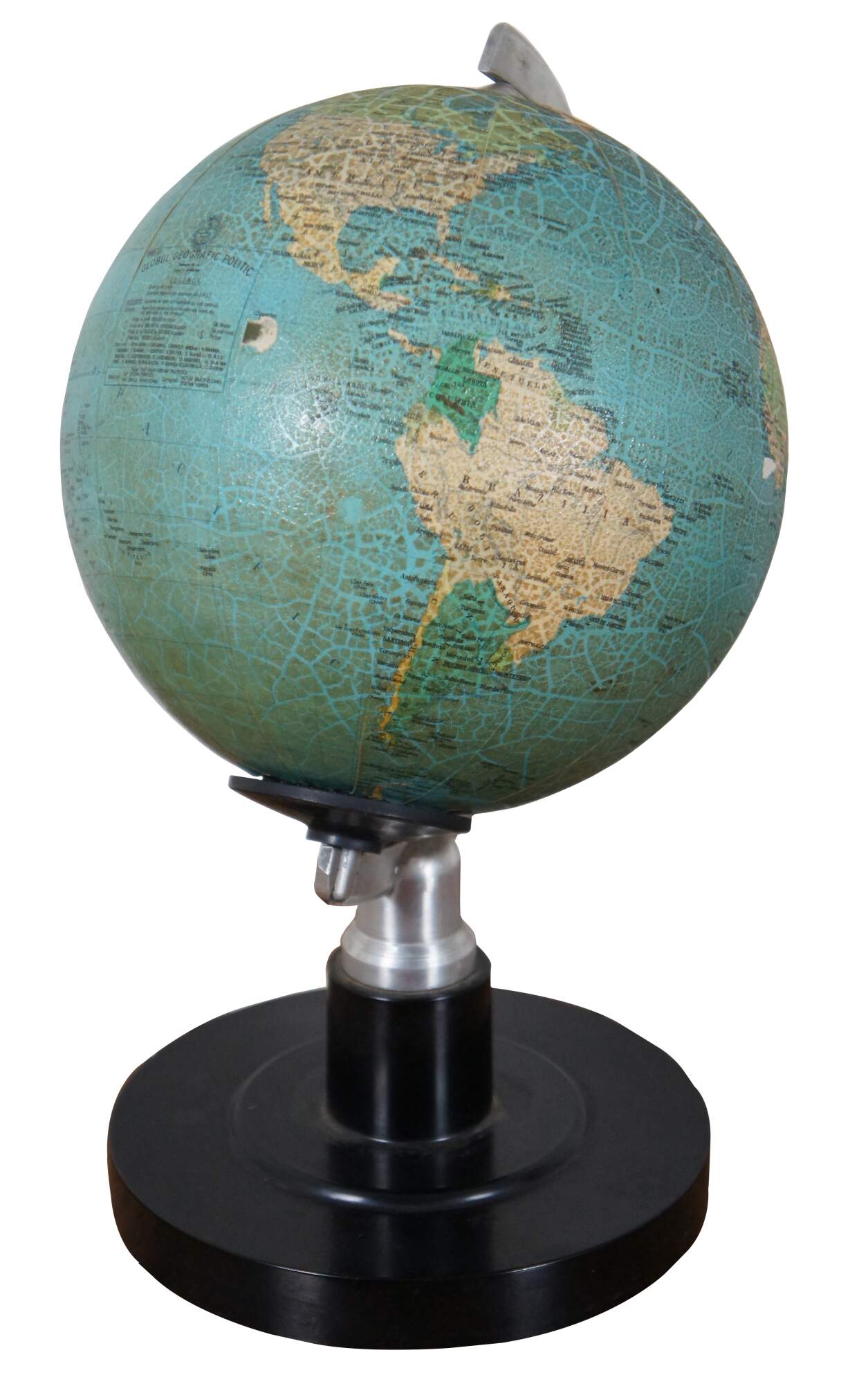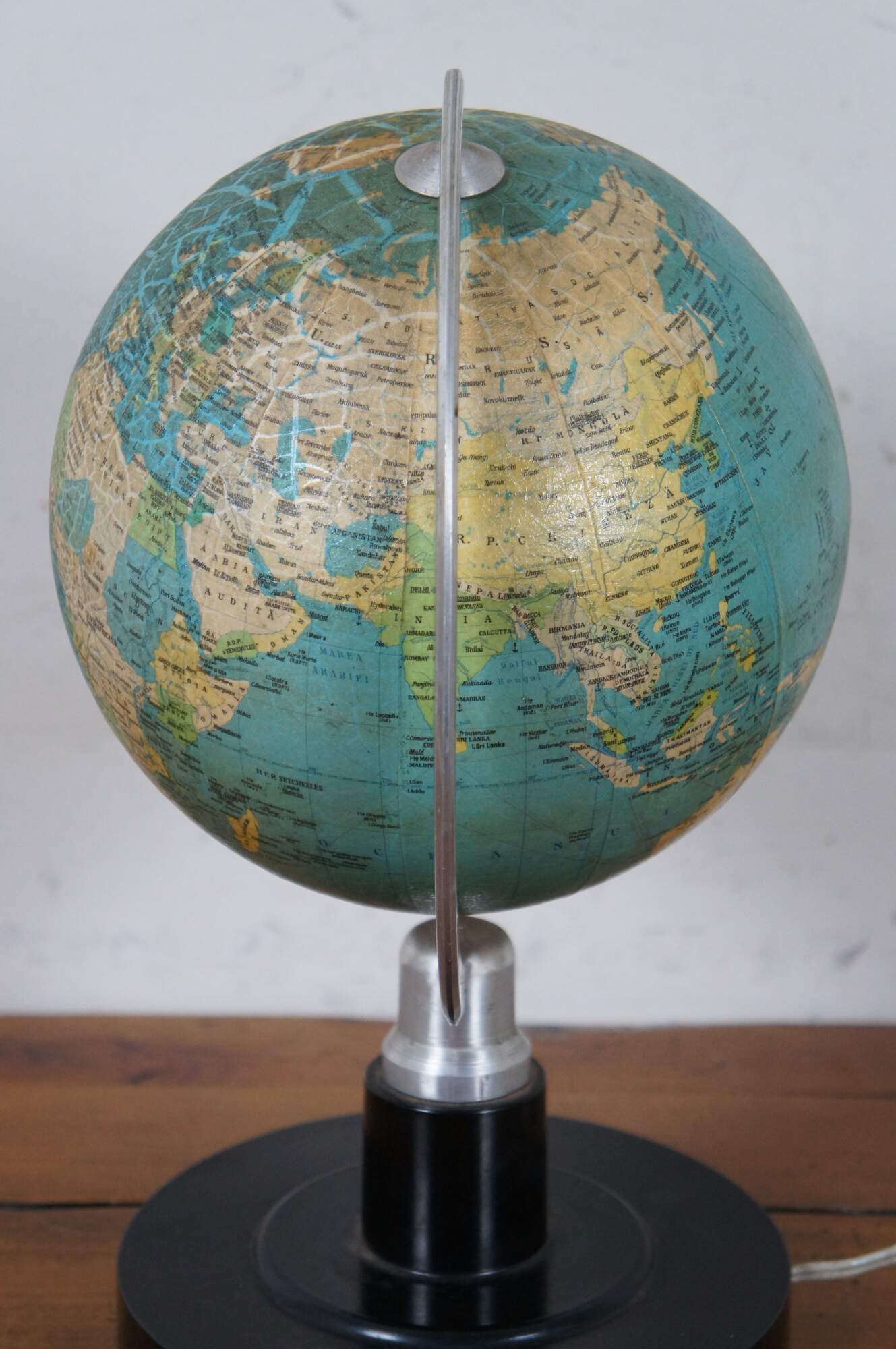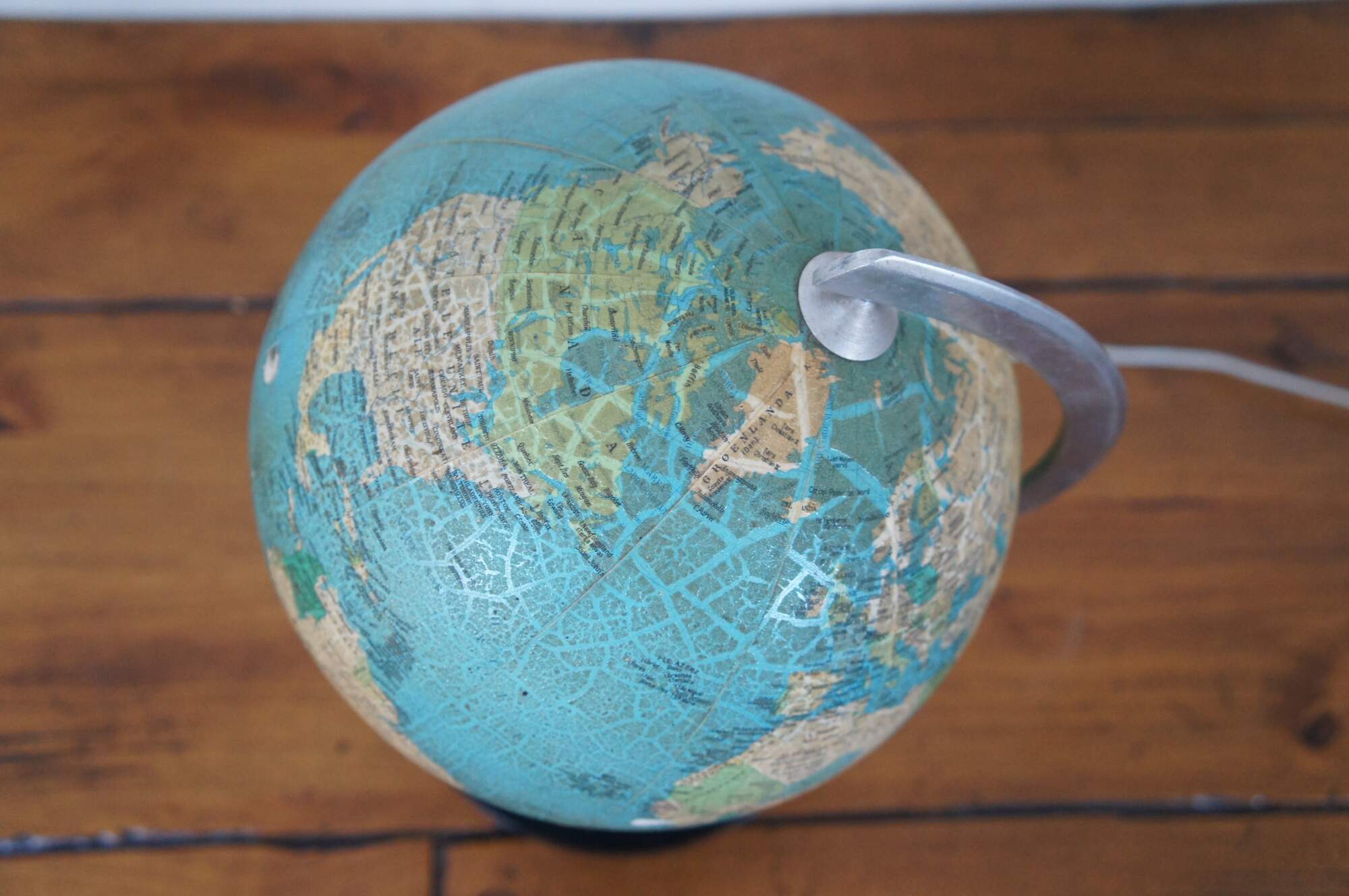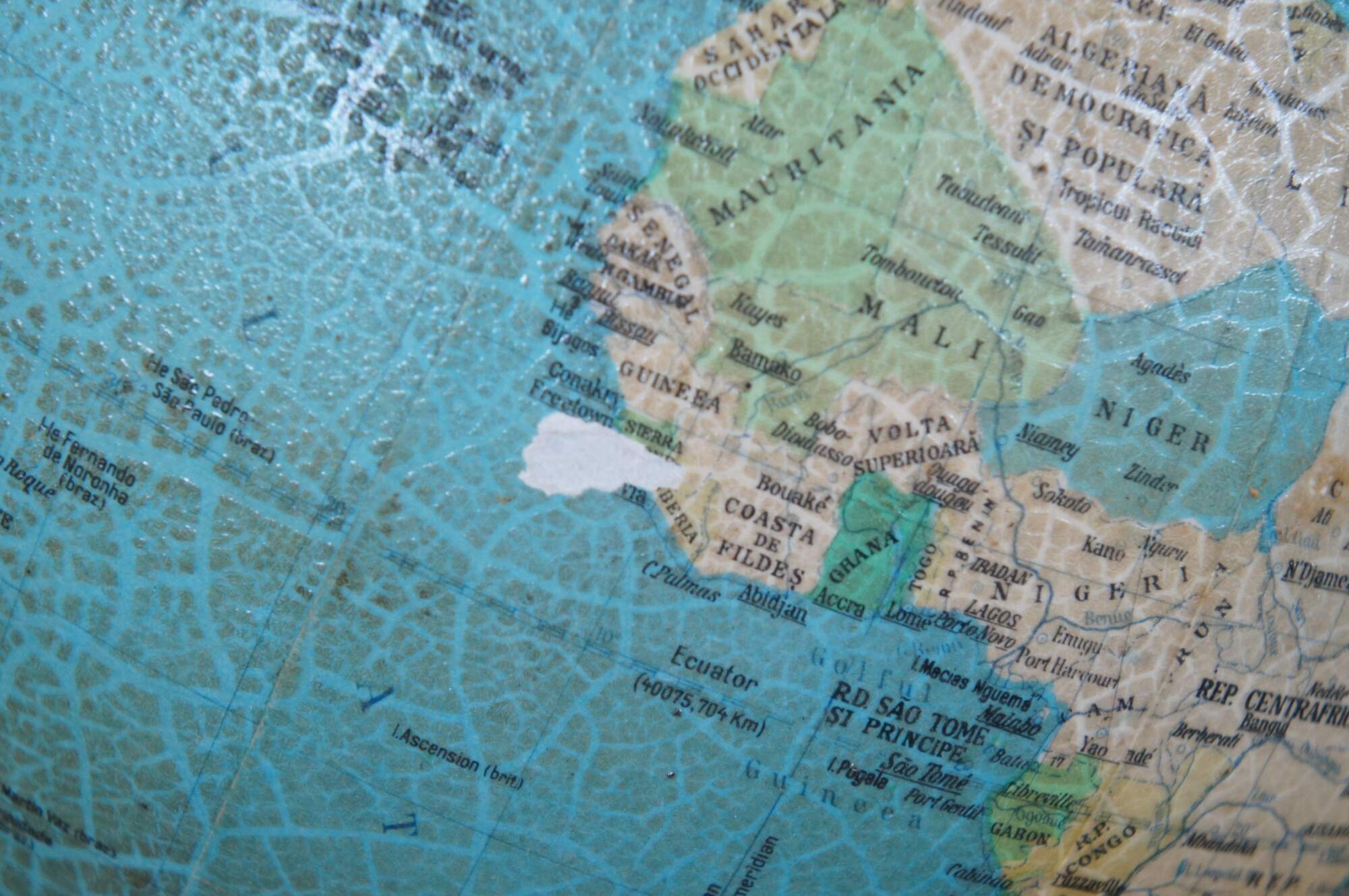 Illuminated 1980 / II Globul Geografic Politic (The Political Geographic Globe) published by the Intreprinderea Poligrafica (Polygraphic Company) of Brasov, Romania. Comprised of paper overlaid on a glass globe, mounted on a metal and plastic base. European plug.