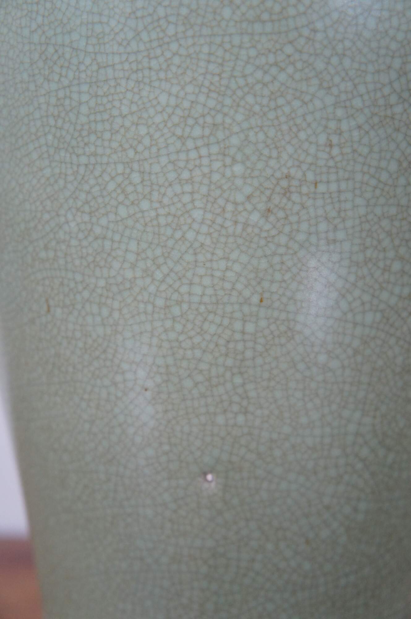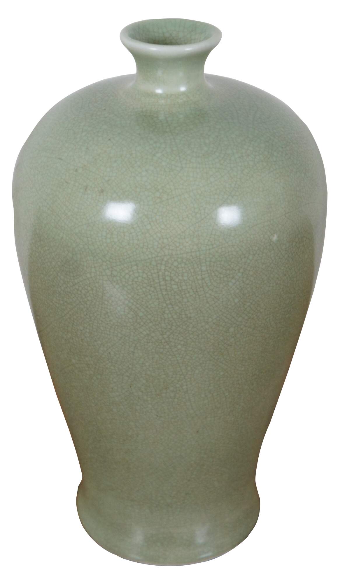 Vintage ceramic celadon green crackle vase or mantel urn from Vietnam. 49-001-0075.