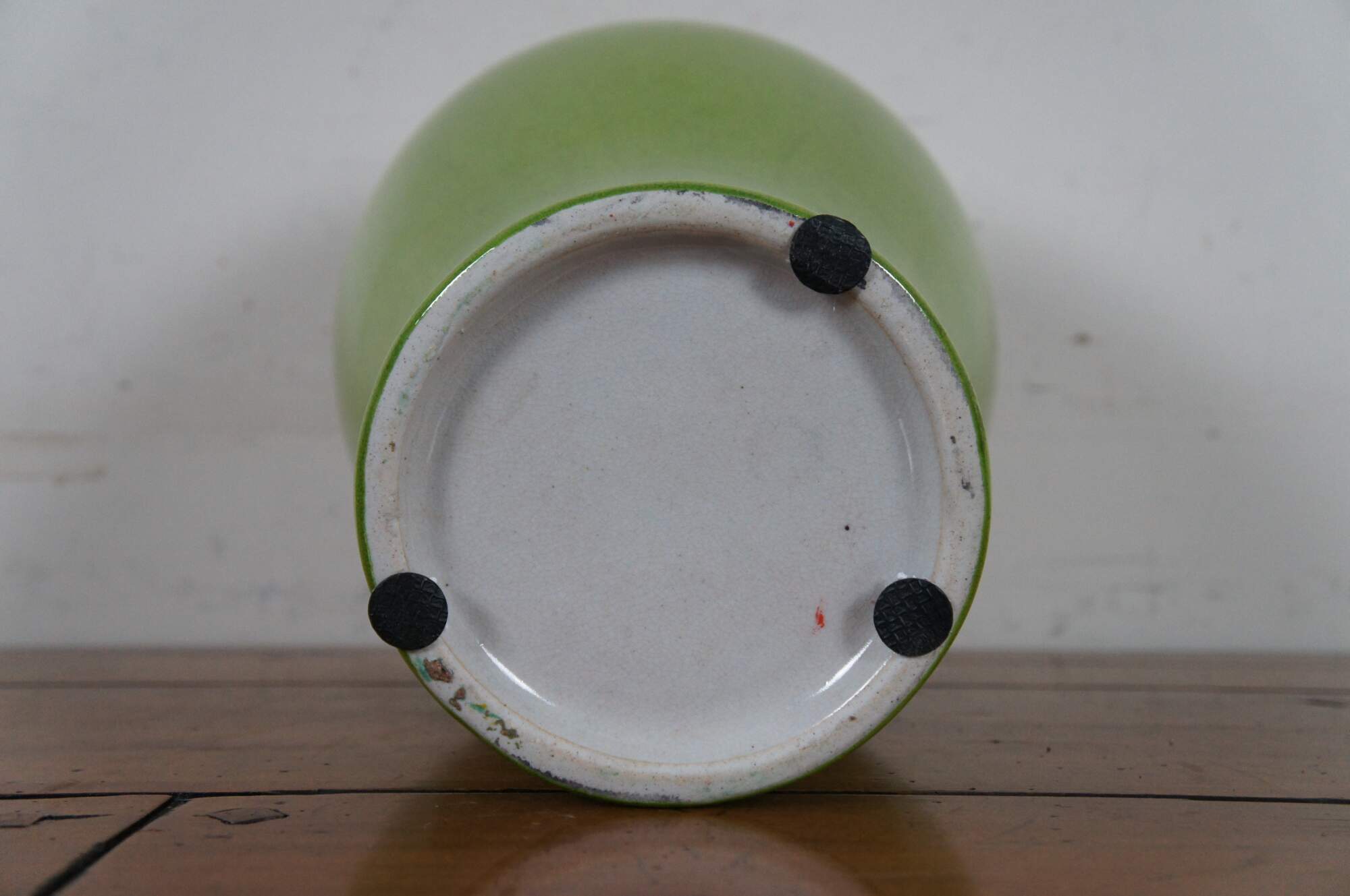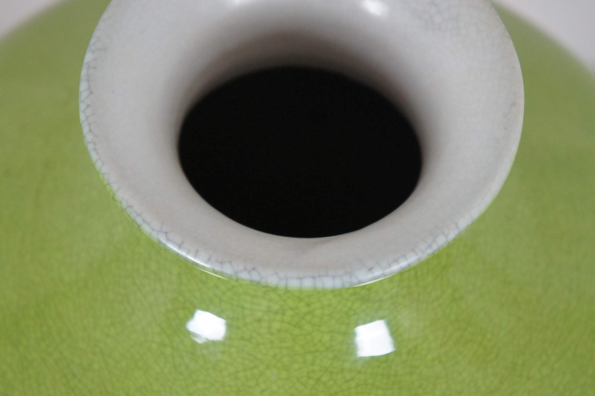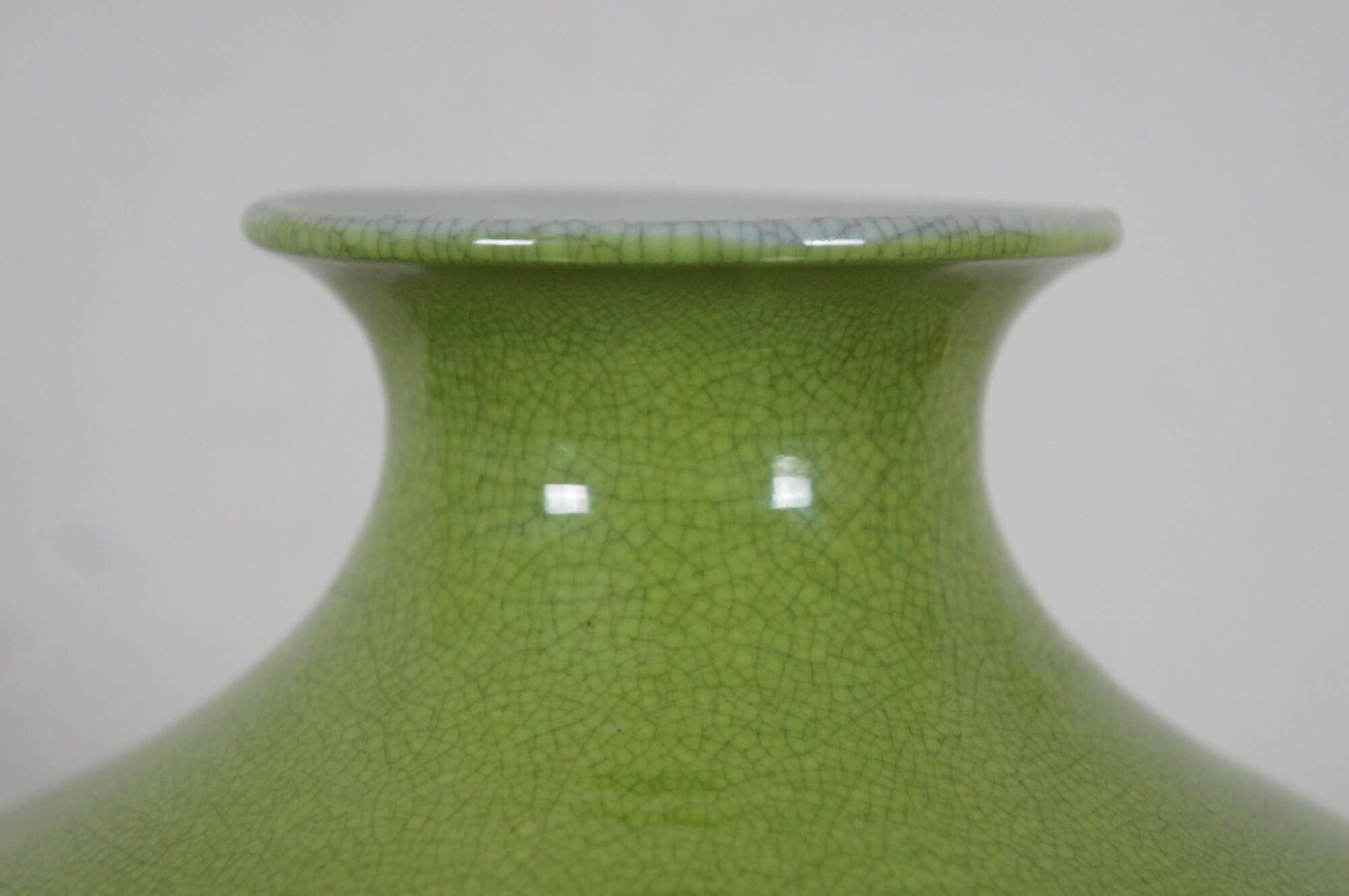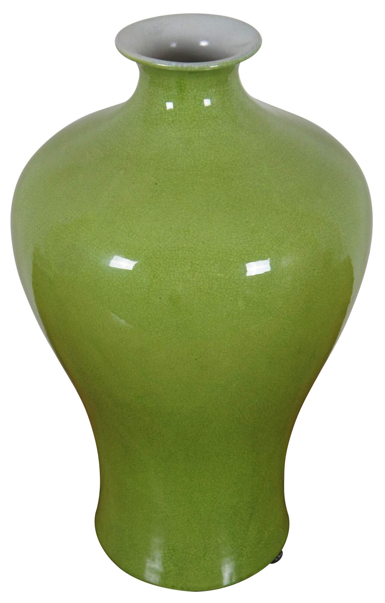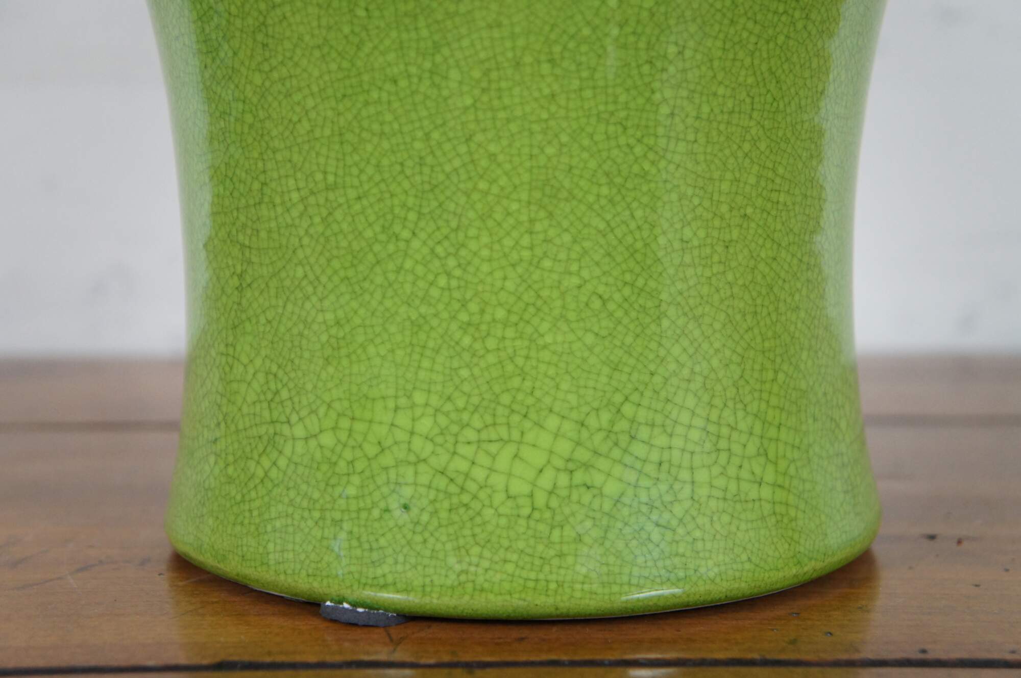Vintage famille verte or apple green porcelain crackle glaze vase or urn.