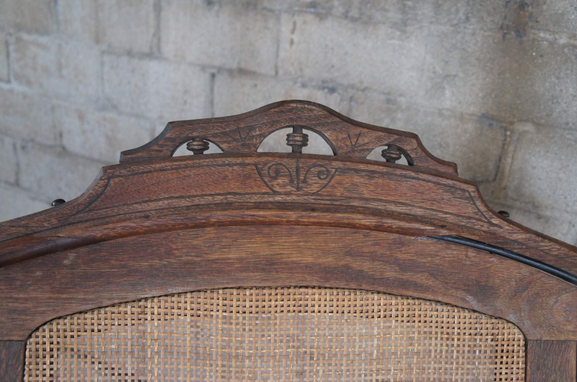 Good Antique Condition, missing wheel along the back, broken cane on the seat, some rust,