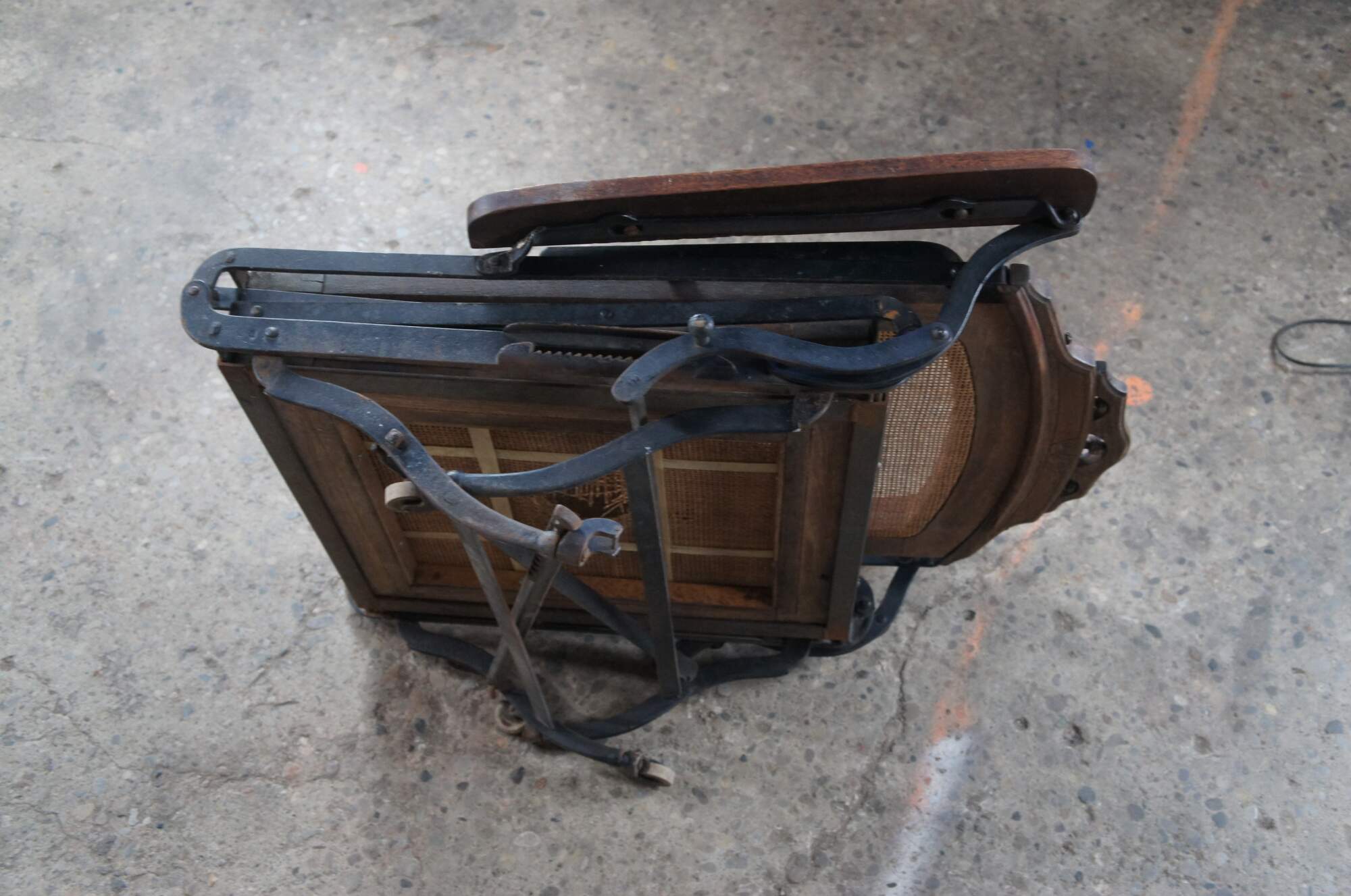 Marks Adjustable Folding Chair Company, campaign folding arm or lounge chair, circa 1877-97. Made in Newyork from walnut and iron.
