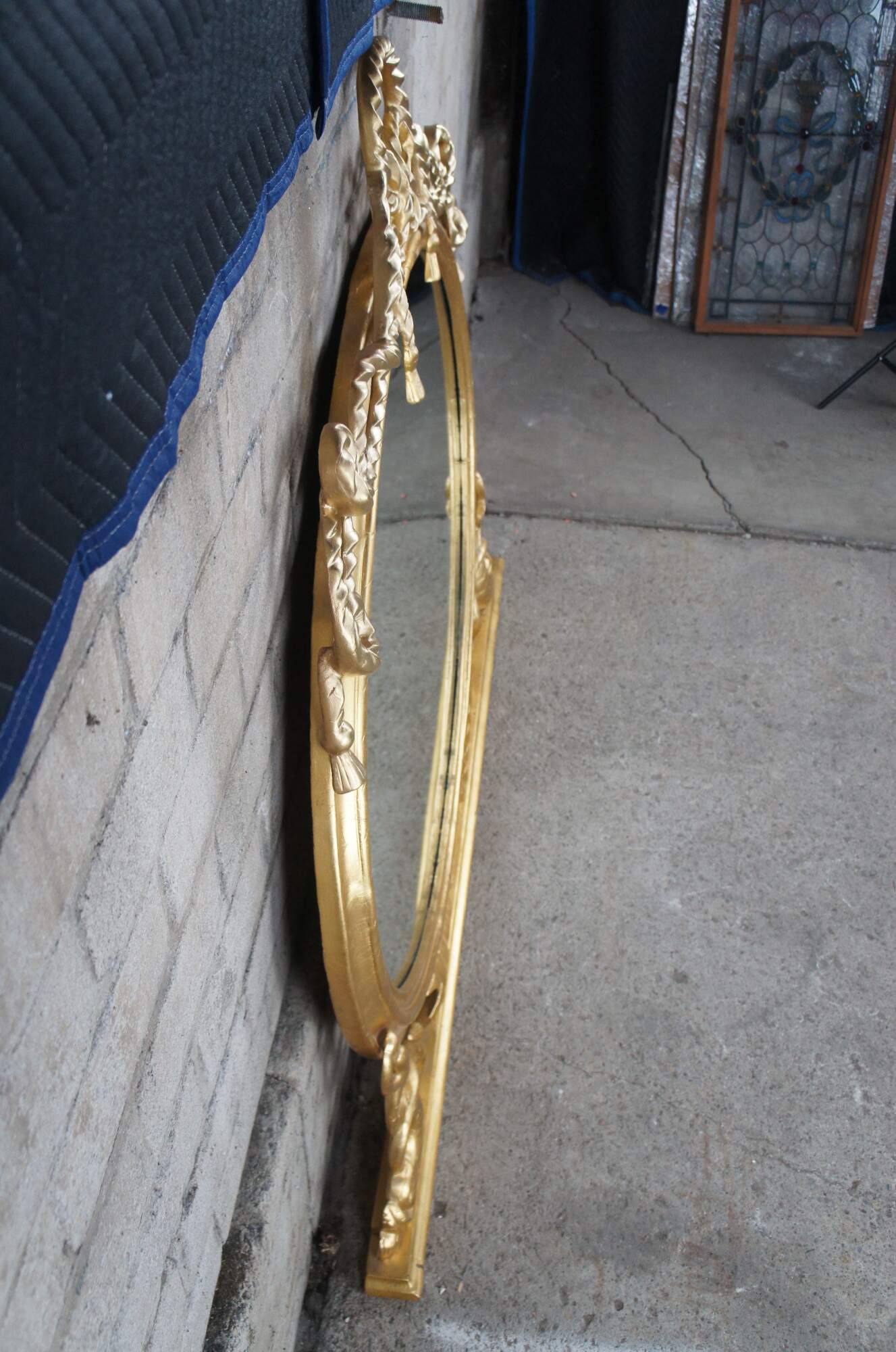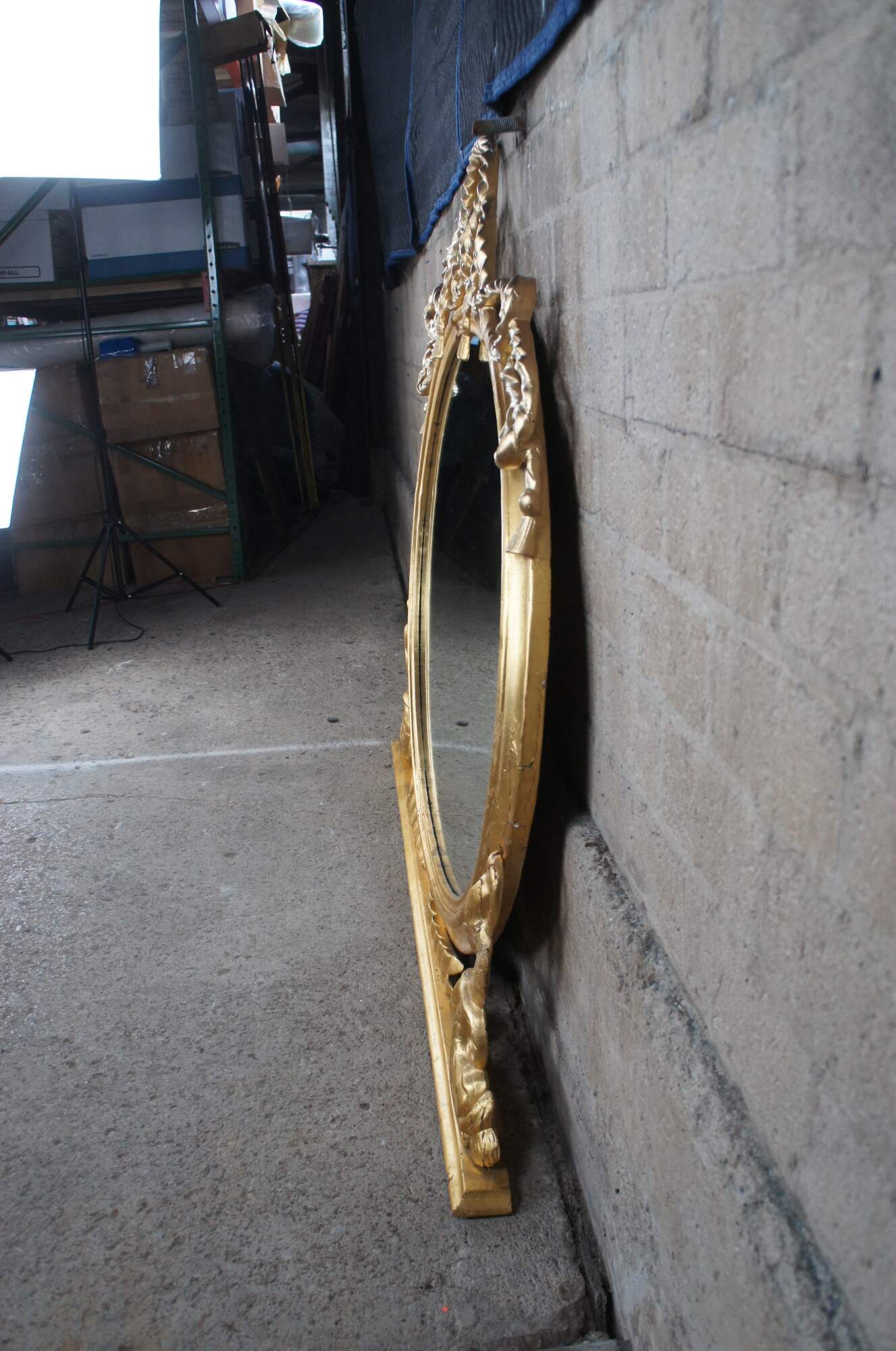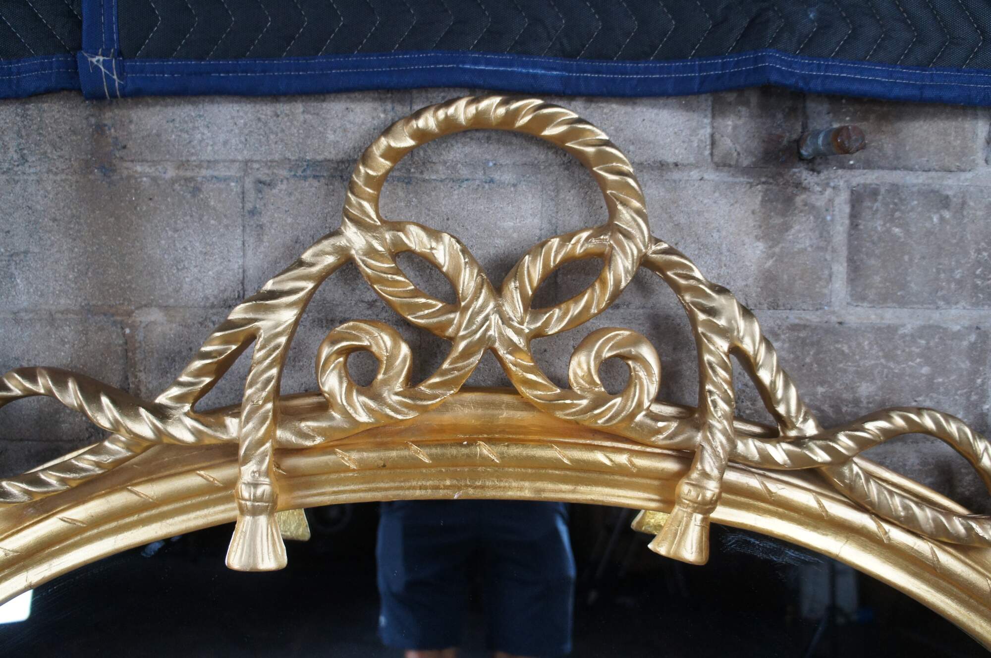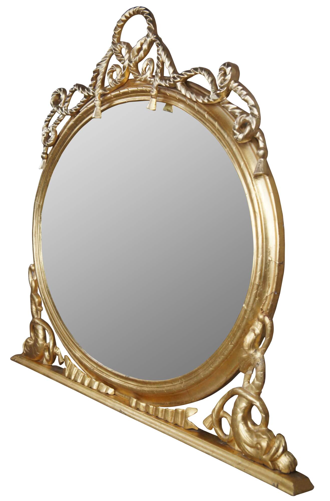 Extremely Rare Example of a Period Late 18th Century George III Admiral Lord Nelson Over Mantel Mirror. An oval giltwood frame with rope and tassel design along the crown and stylized dolphin (Delphin) supports at the base.