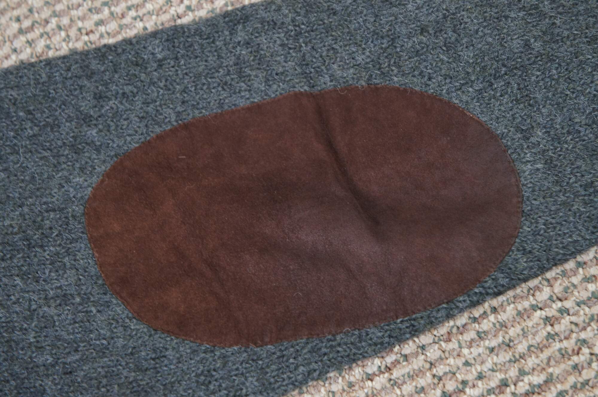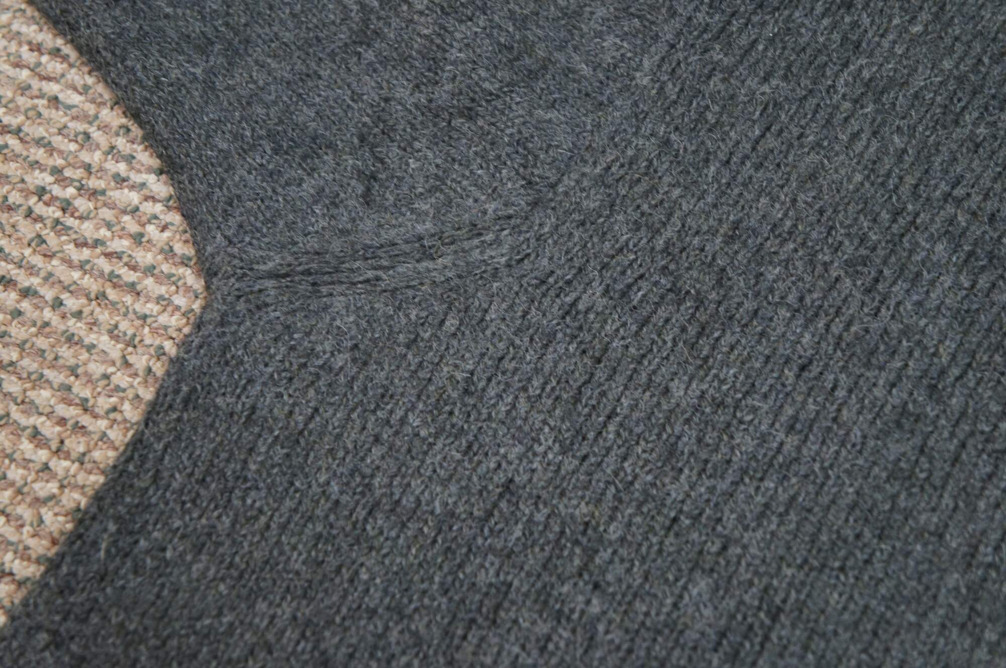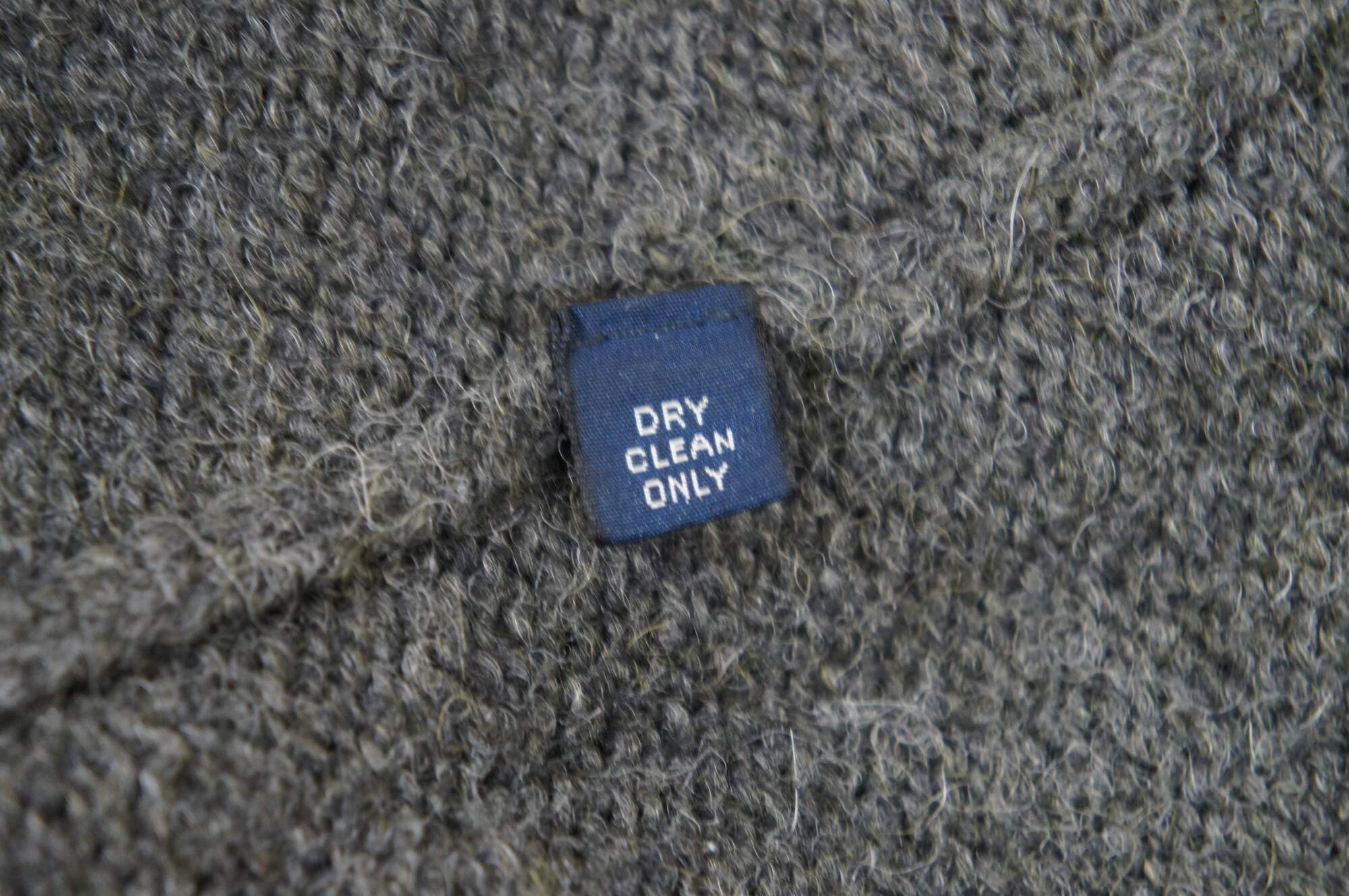 Polo Ralph Lauren pull over long sleeve sweater in gray cotton / wool / alpaca blend with brown leather elbow patches.