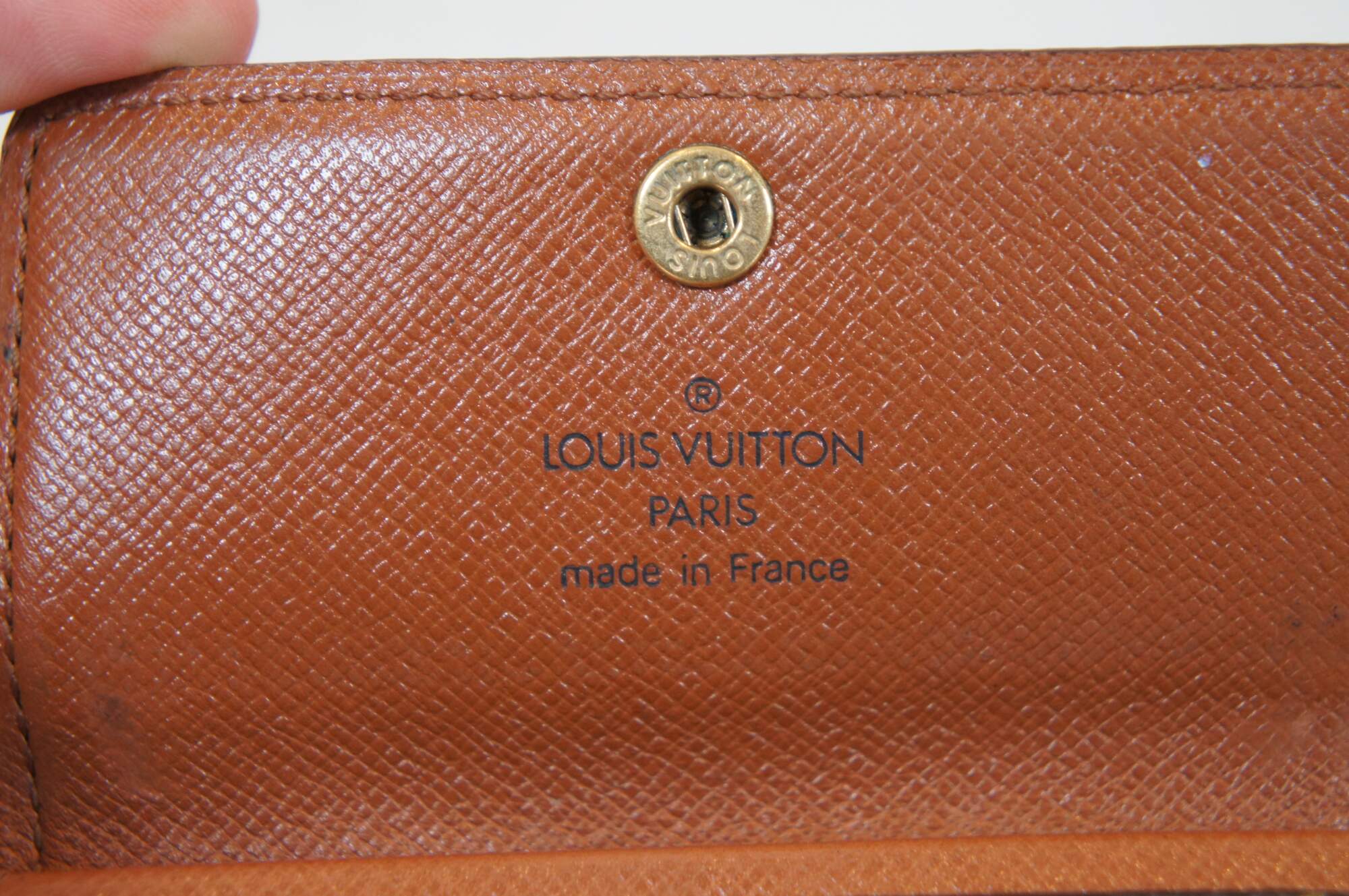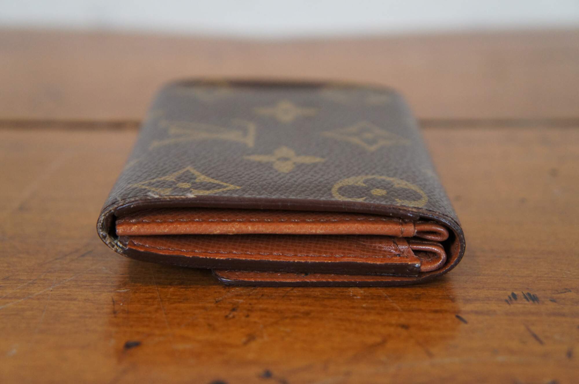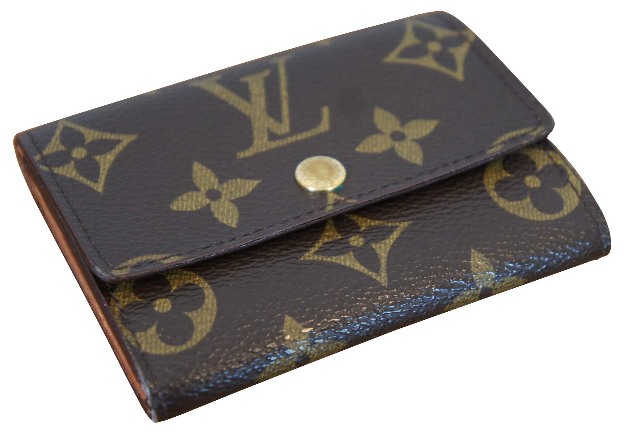 Louis Vuitton Paris brown monogram Porte-Monnaie Plat coin purse with snap closure and two interior pockets.