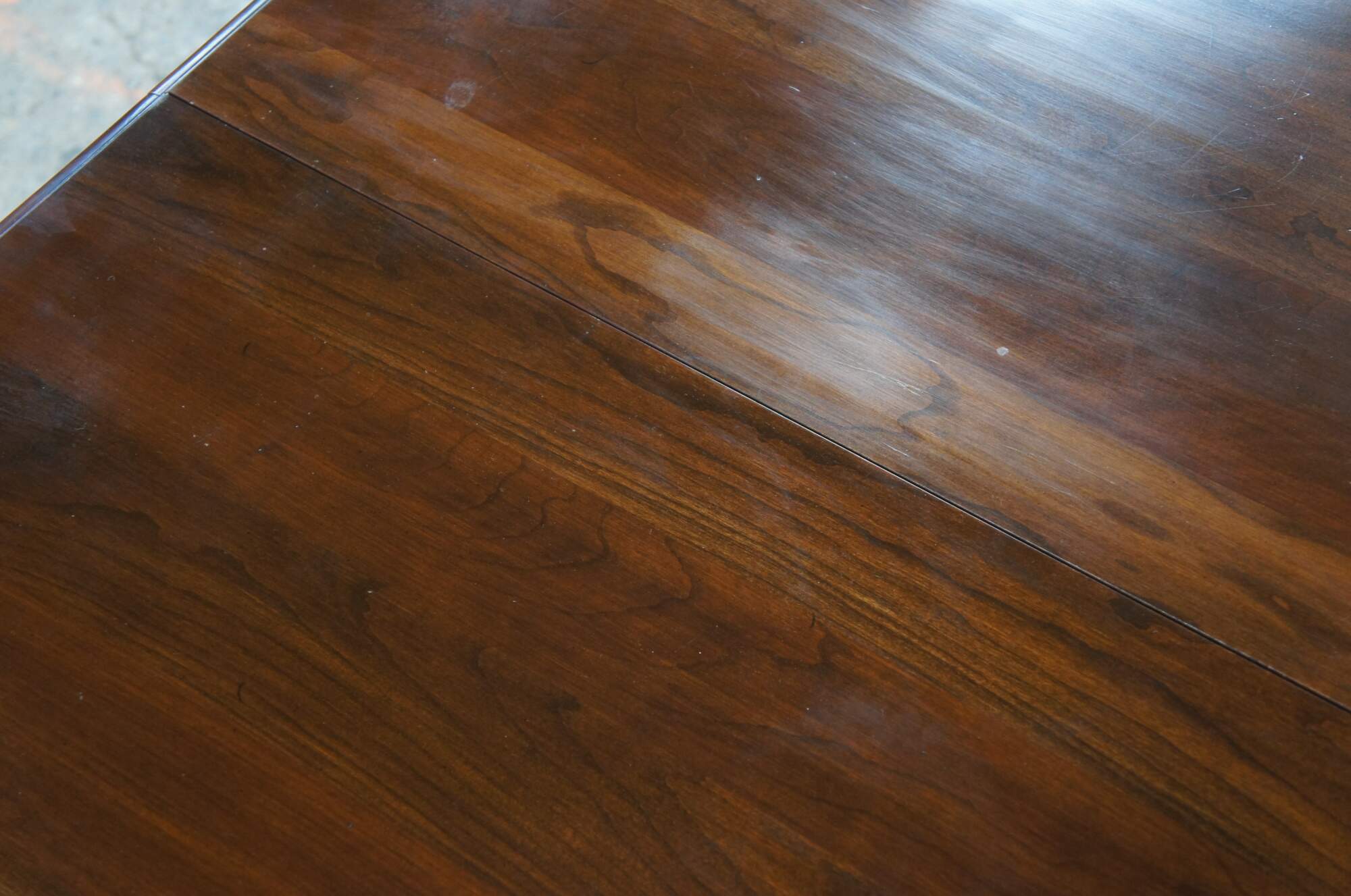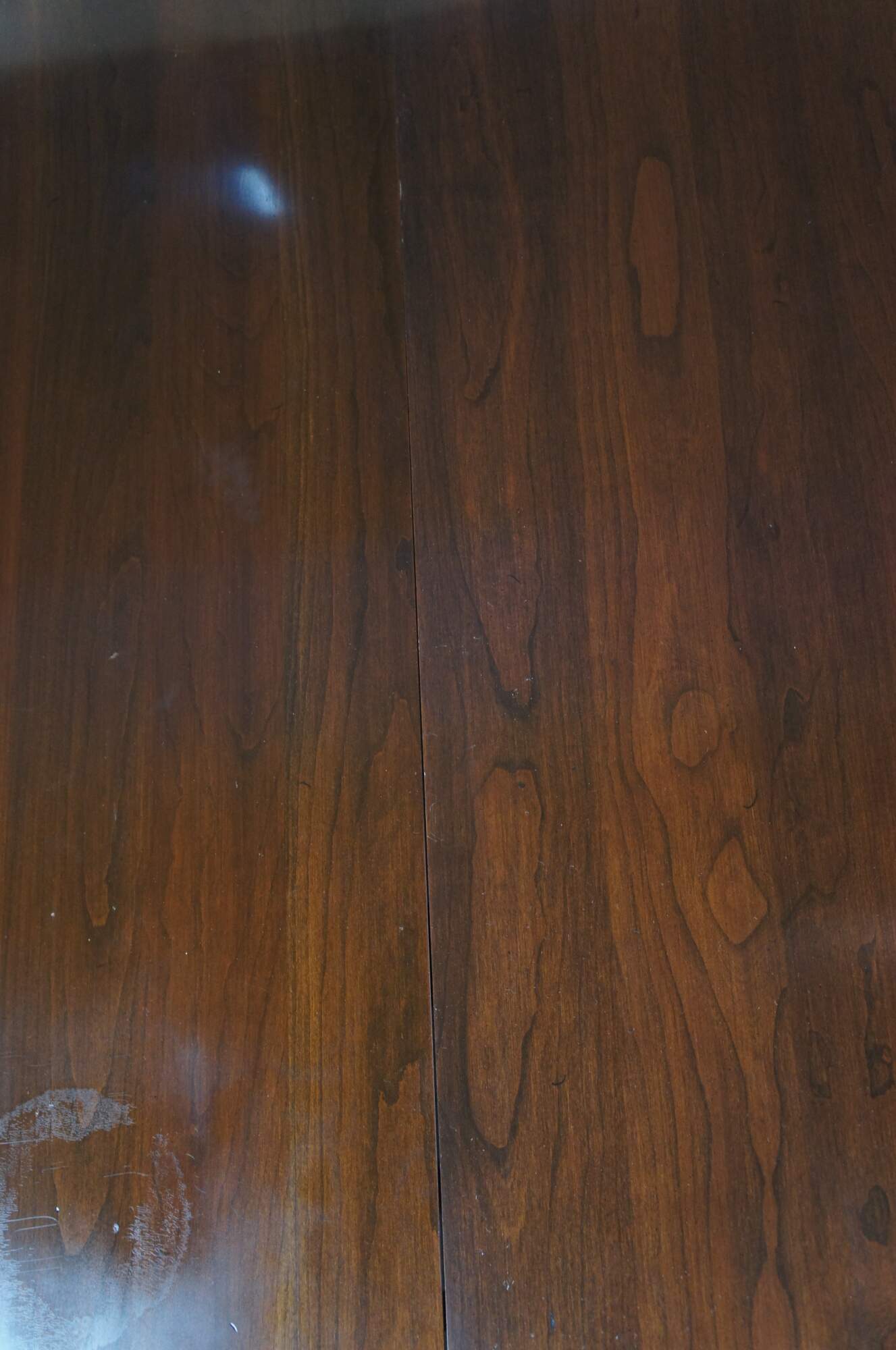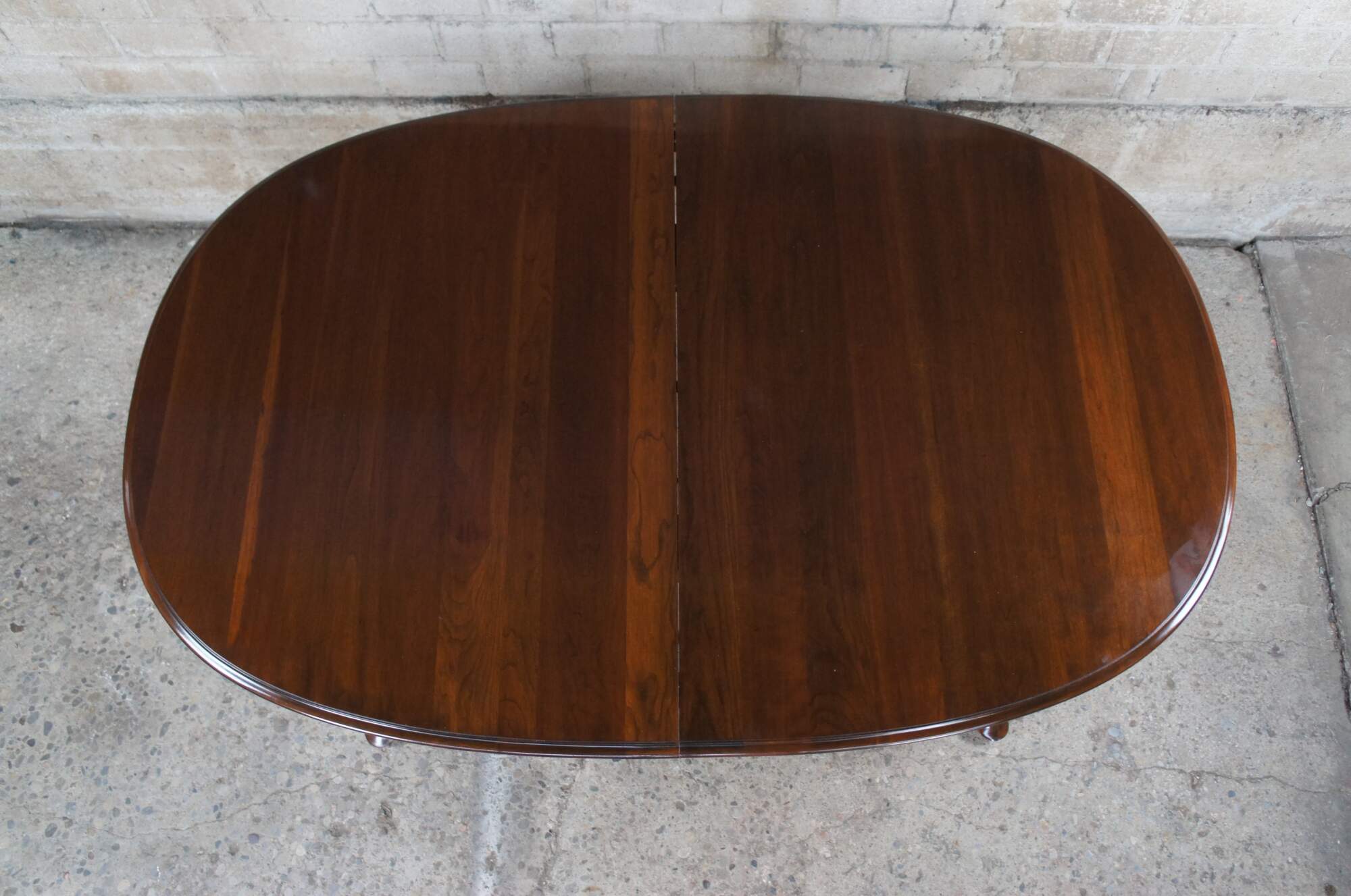 Ethan Allen Georgian Court Oval Extension Table, Circa 1980s. Made from Cherry with 2 leaves for extension, queen anne legs and pad feet. 11-6214