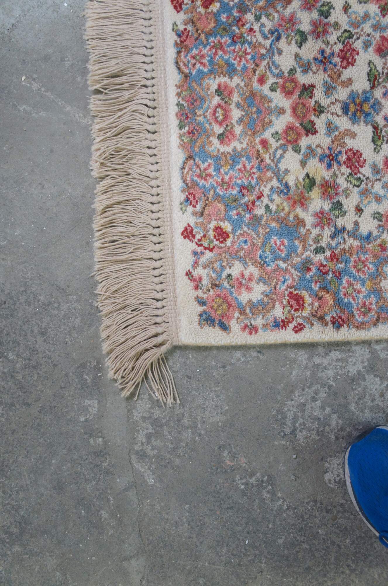 Two vintage Karastan mats in the Ivory Kirman 788 pattern.