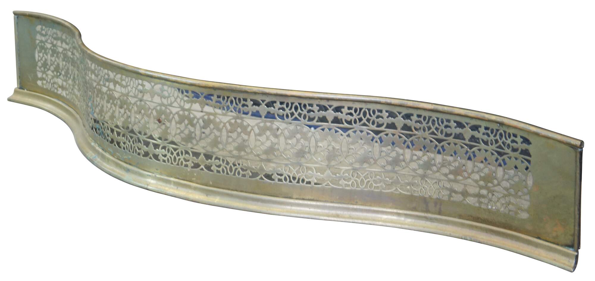 Antique Victorian piereced brass fireplace screen featuring floral motif with serpentine form.