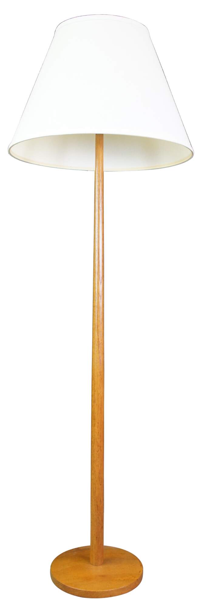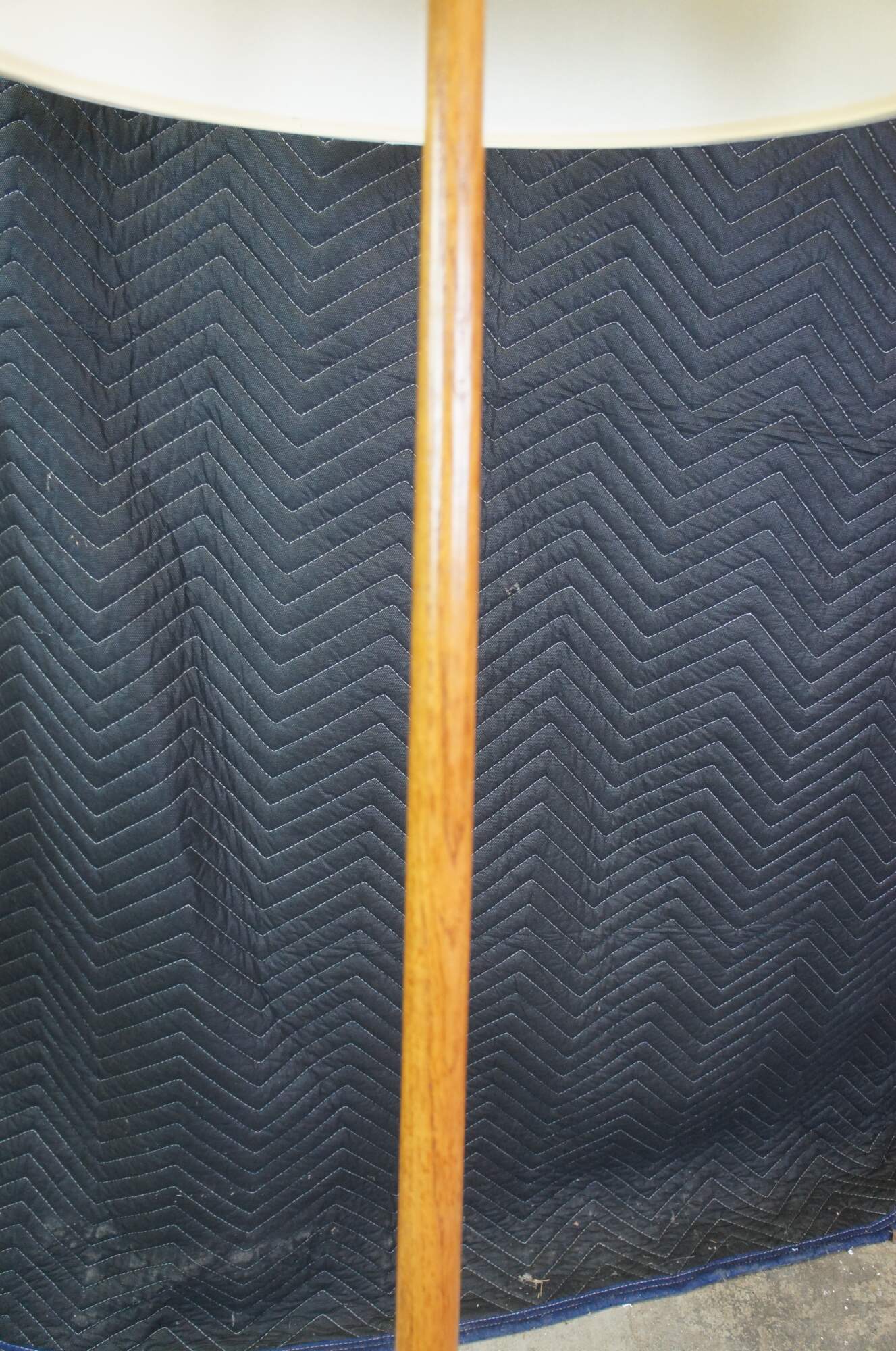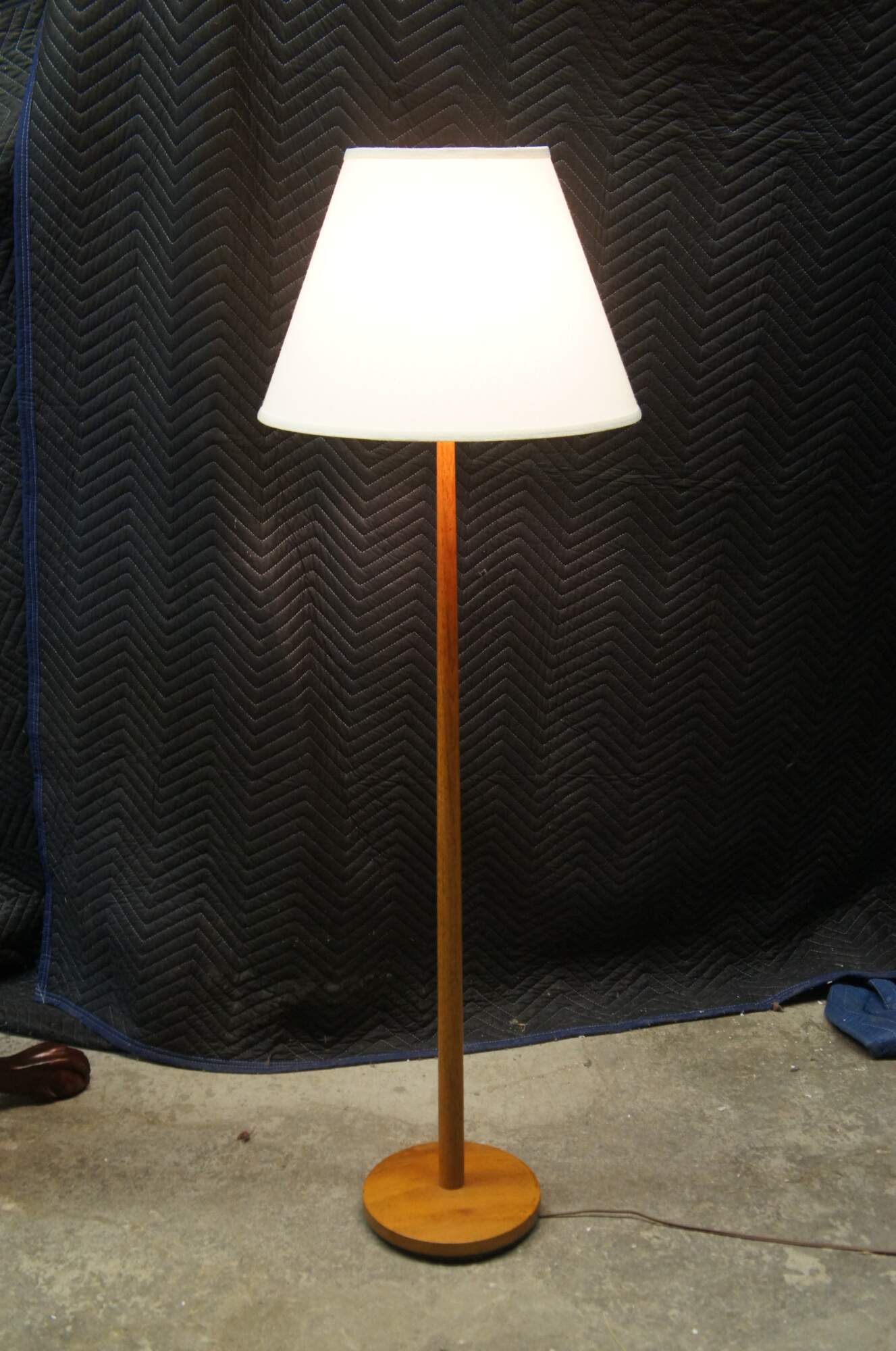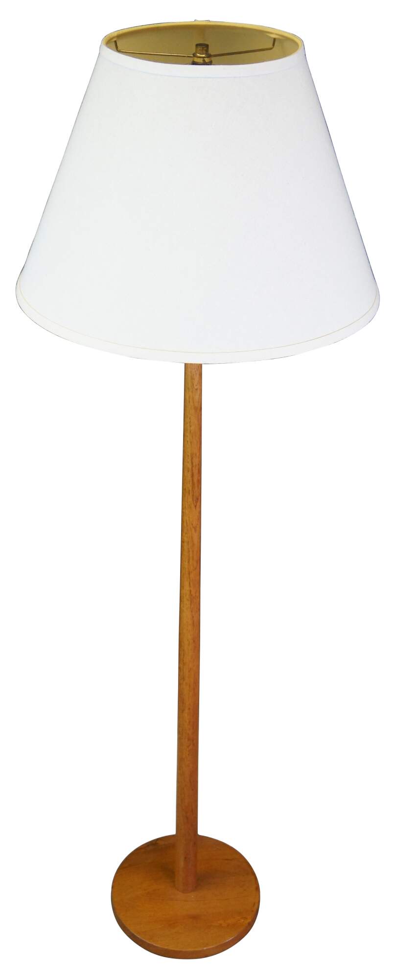 Minimalist Swedish modern floor lamp, circa 1960s. Made in Sweden for George Kovacs. A sleak design with rich wood and white shade.