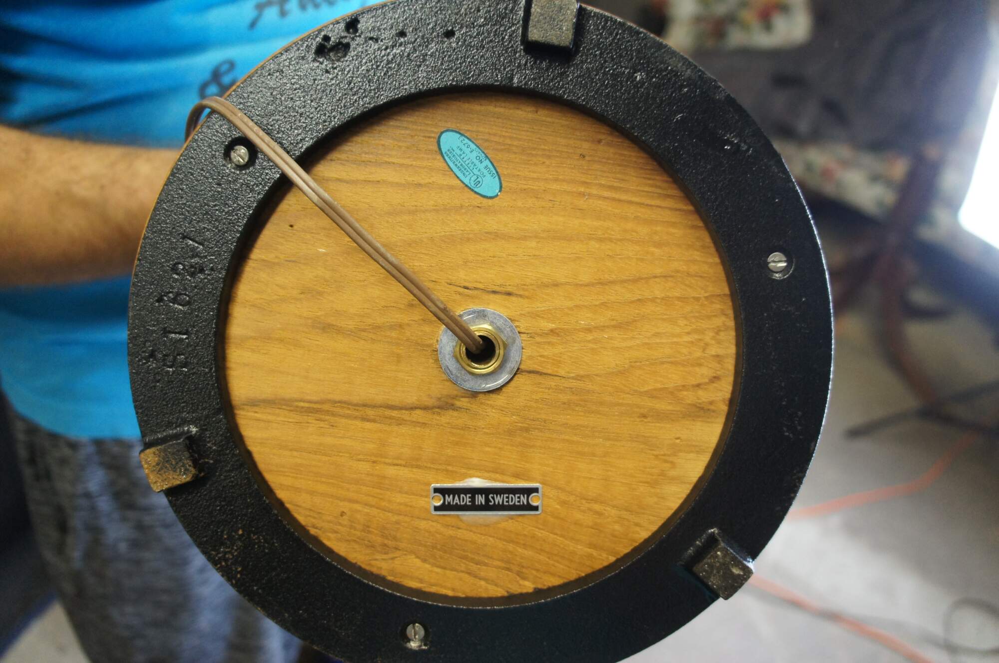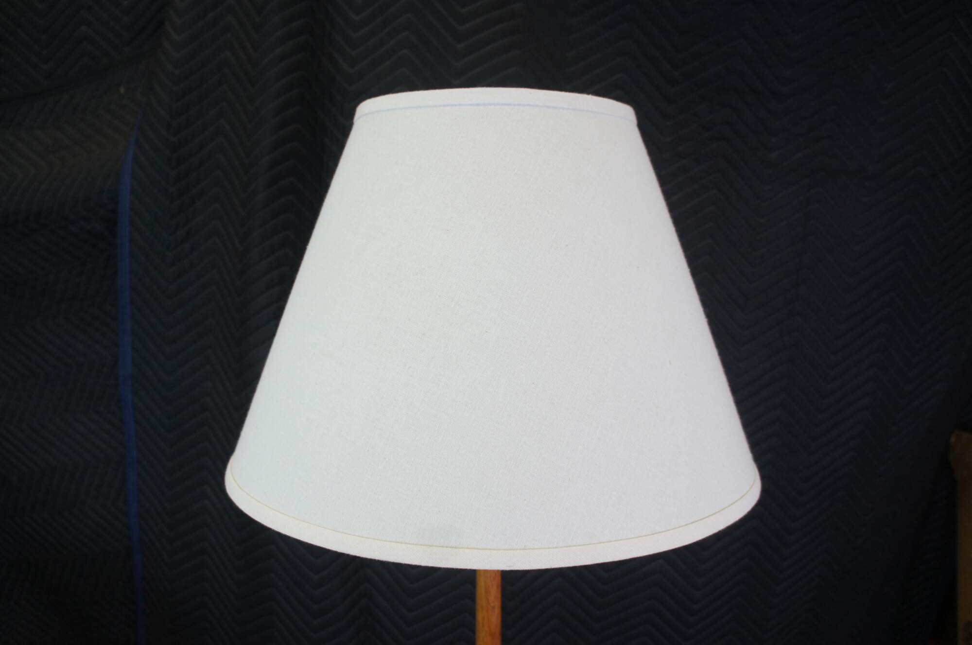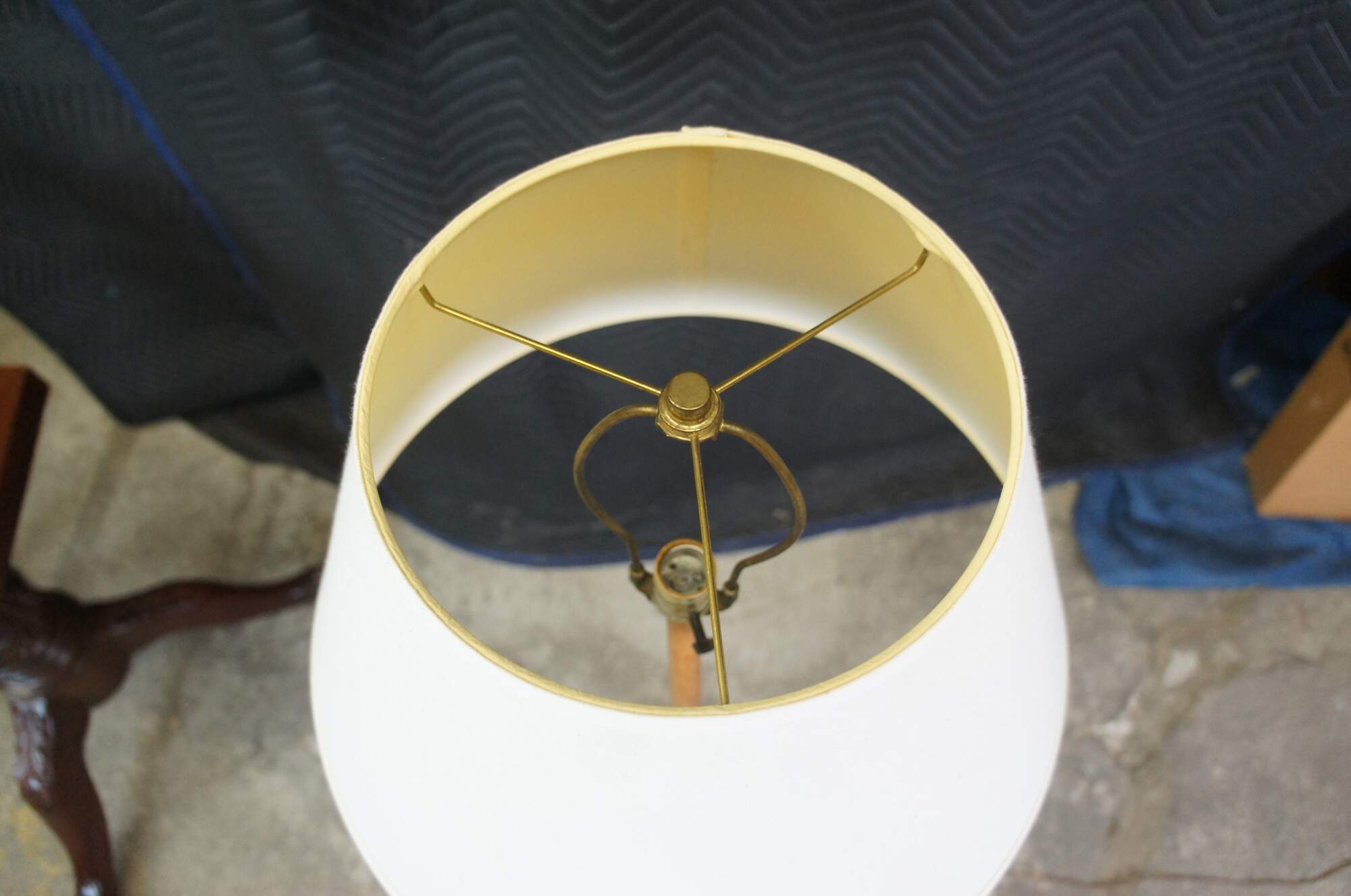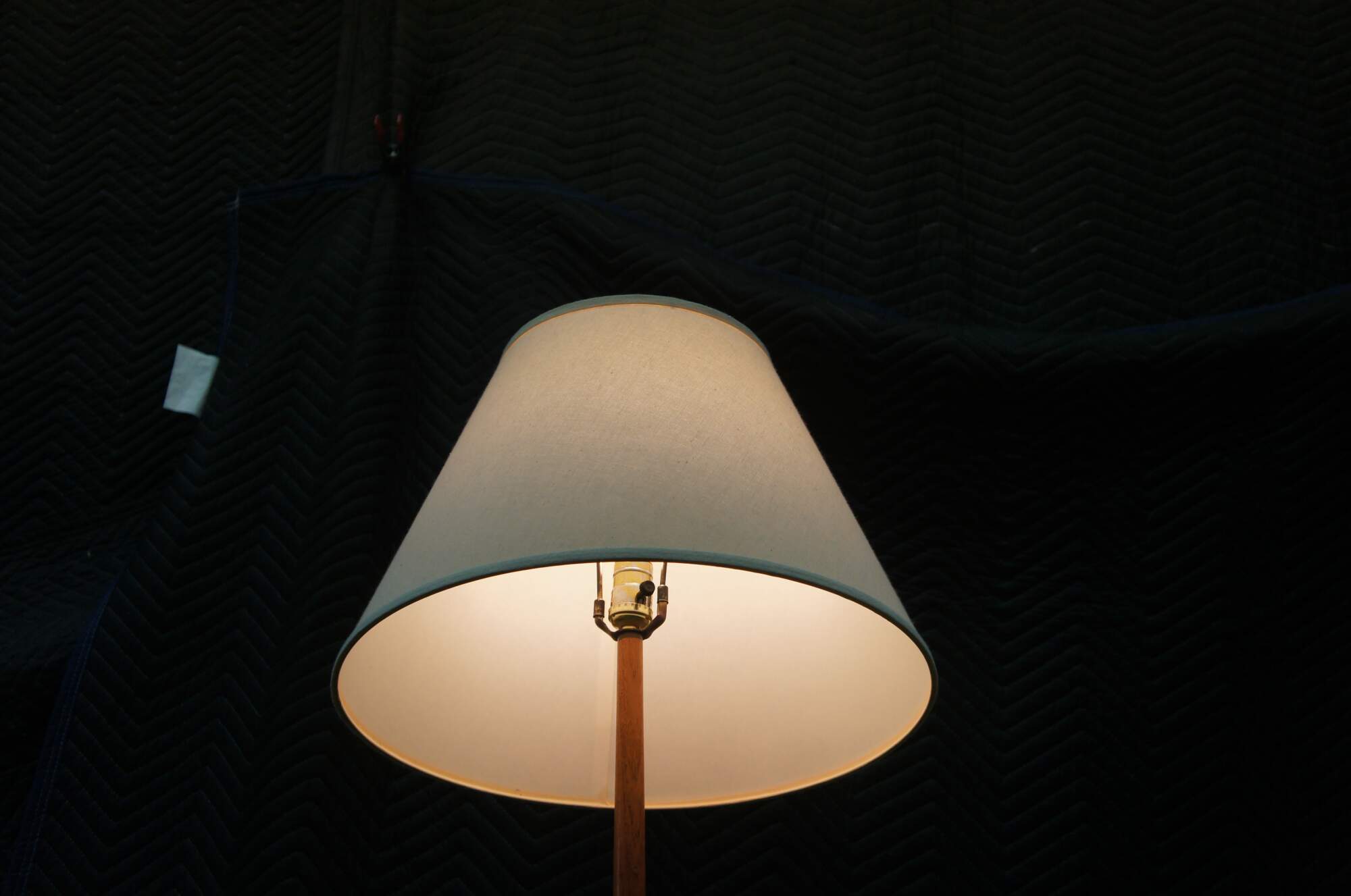 Minimalist Swedish modern floor lamp, circa 1960s. Made in Sweden for George Kovacs. A sleak design with rich wood and white shade.