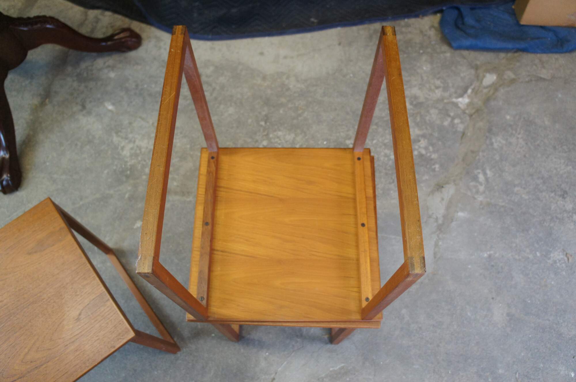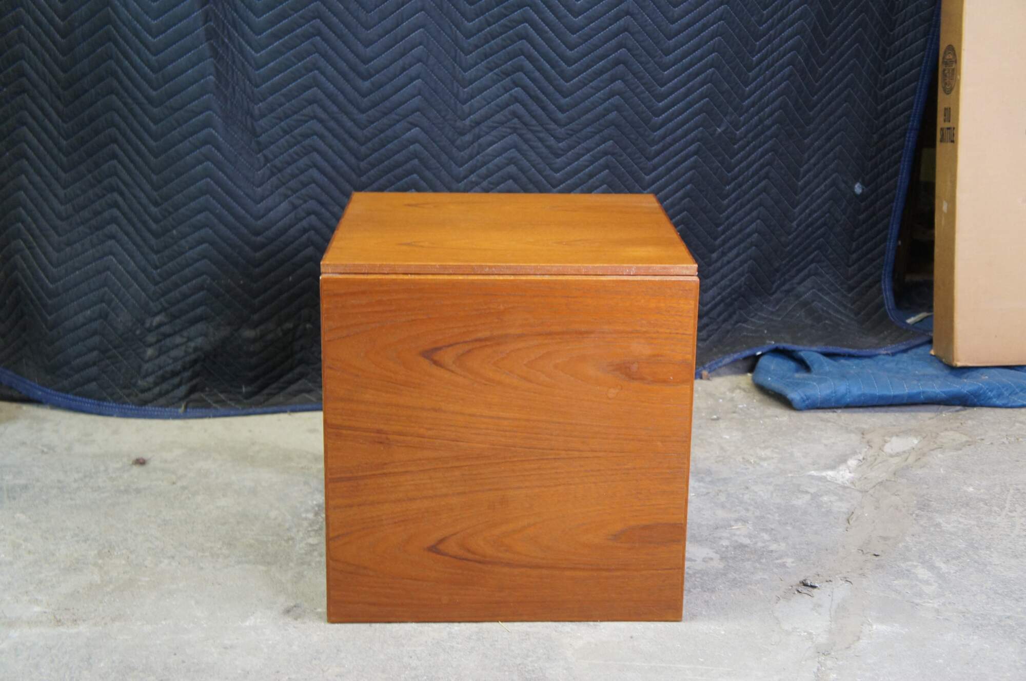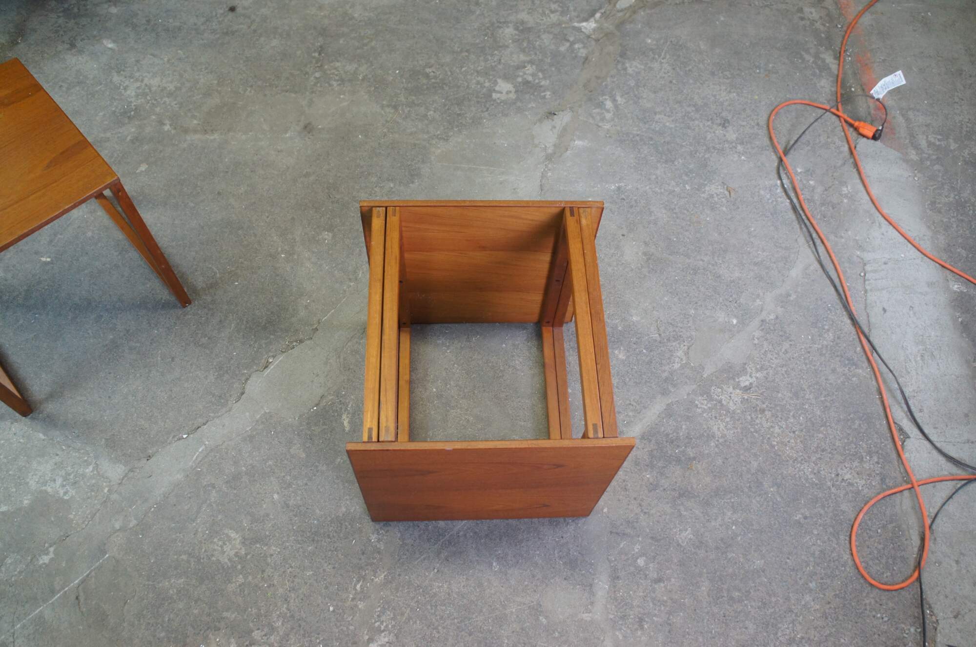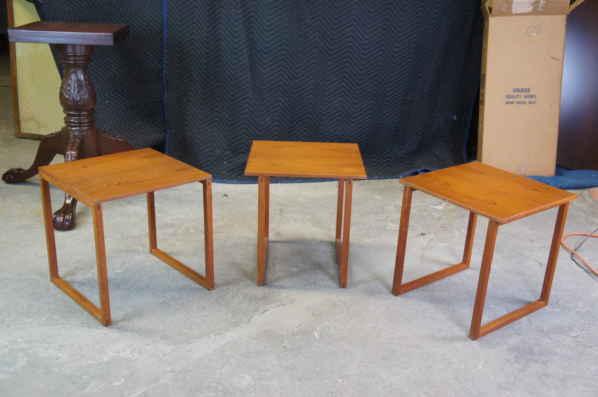 Mid Century Modern Danish cube tables by Kai Kristiansen for Vildberg Mobelfabrik. Made of teak featuring square form with interlocking nesting design. Circa 1960s. Made in Denmark.
