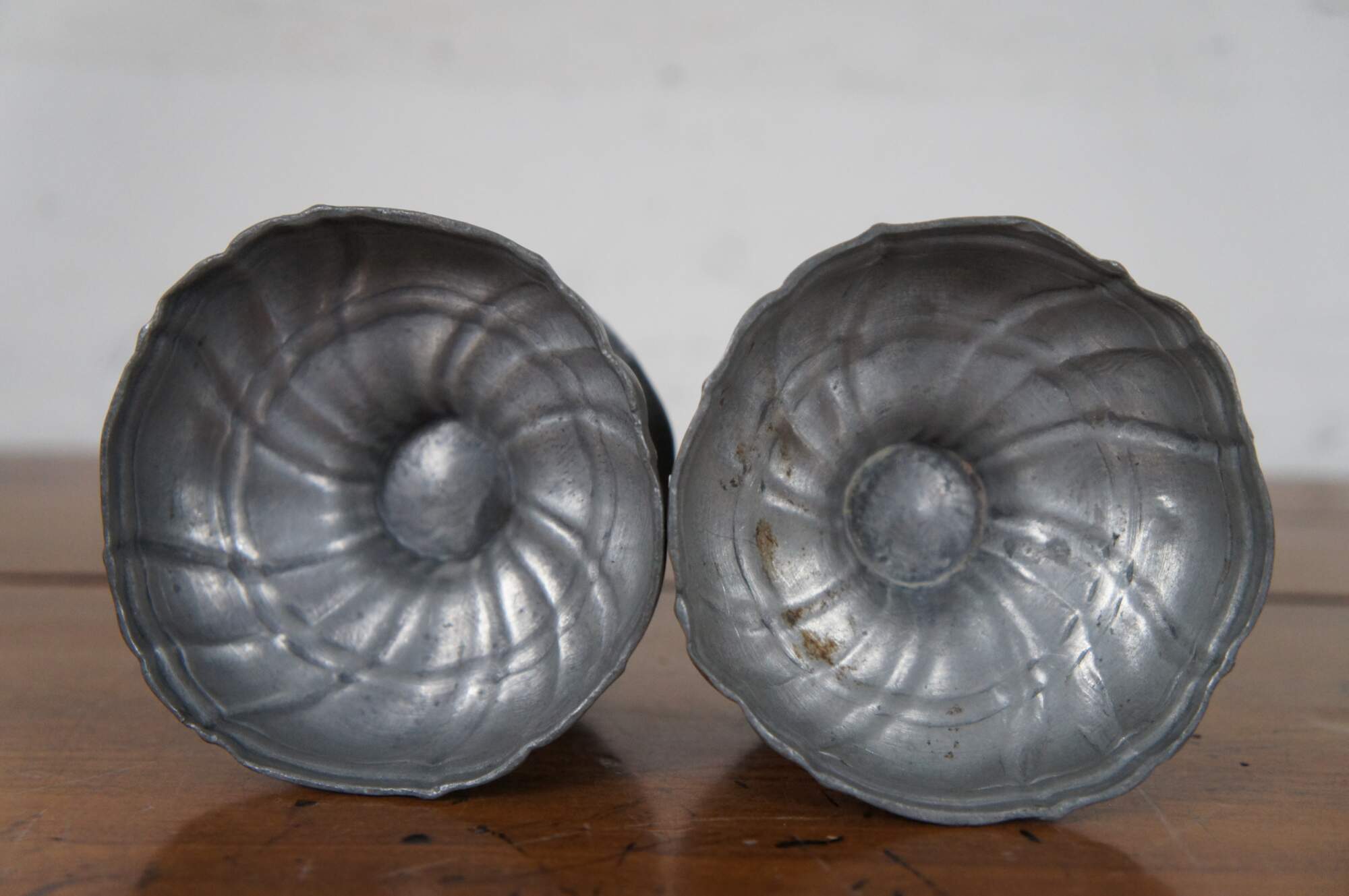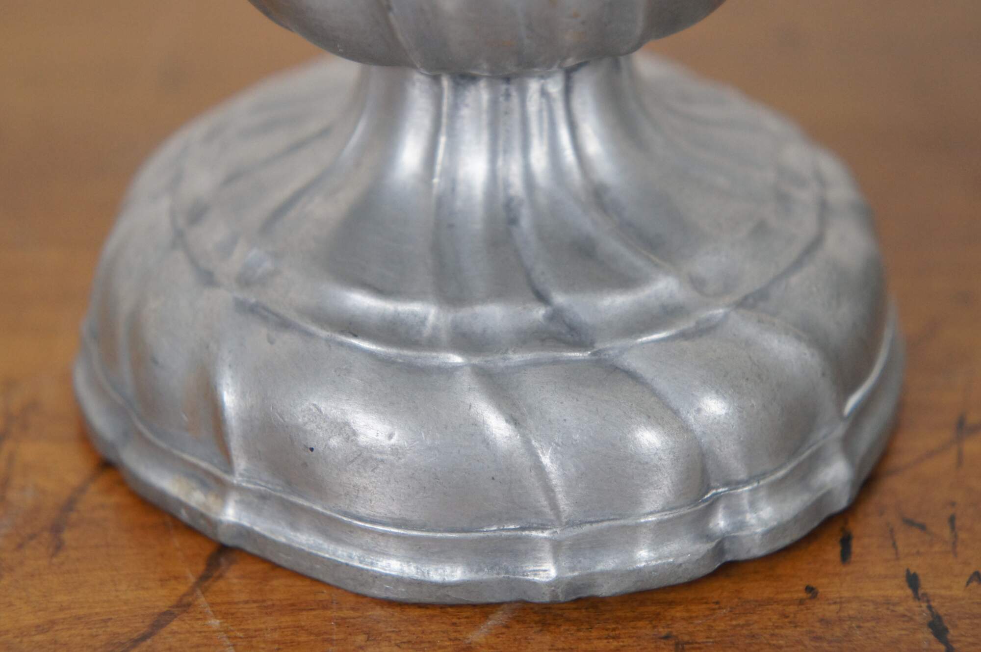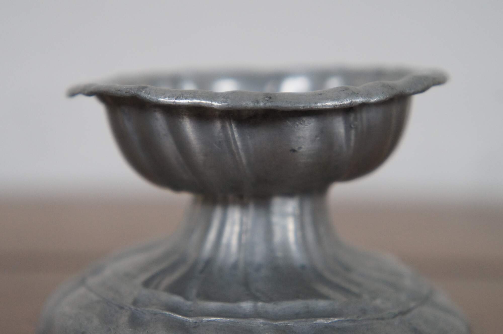 Pair of rare antique 18th century pewter salt cellars / bowls / pedestal dishes or footed cups with unique scalloped and swirled form.