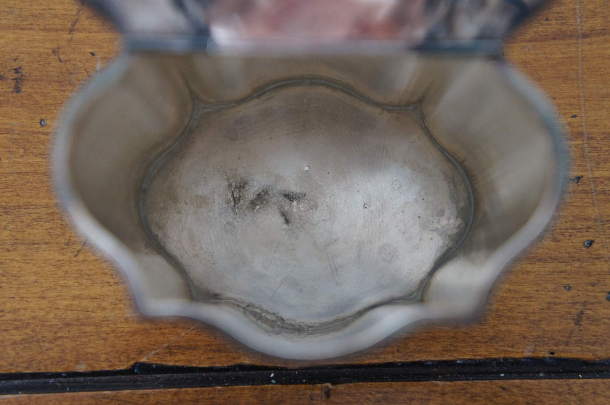 Vintge mid-20th century silver plate lidded tea caddy, trinket, or cigarette holder by Israel Freeman and Sons Ltd, featuring a lobed oval shape, decorative rope twist rim, engraved griffon holding a crown, and topped with a bakelite pineapple finial. Includes silver storage cloth.