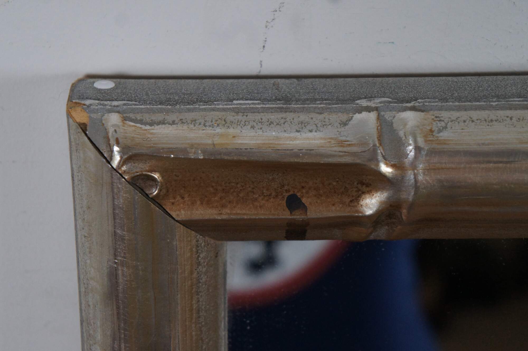 Hollywood Regency style faux bamboo rectangular wall mirror with a metallic silver finish; back has wires for hanging both vertically or horizontally.