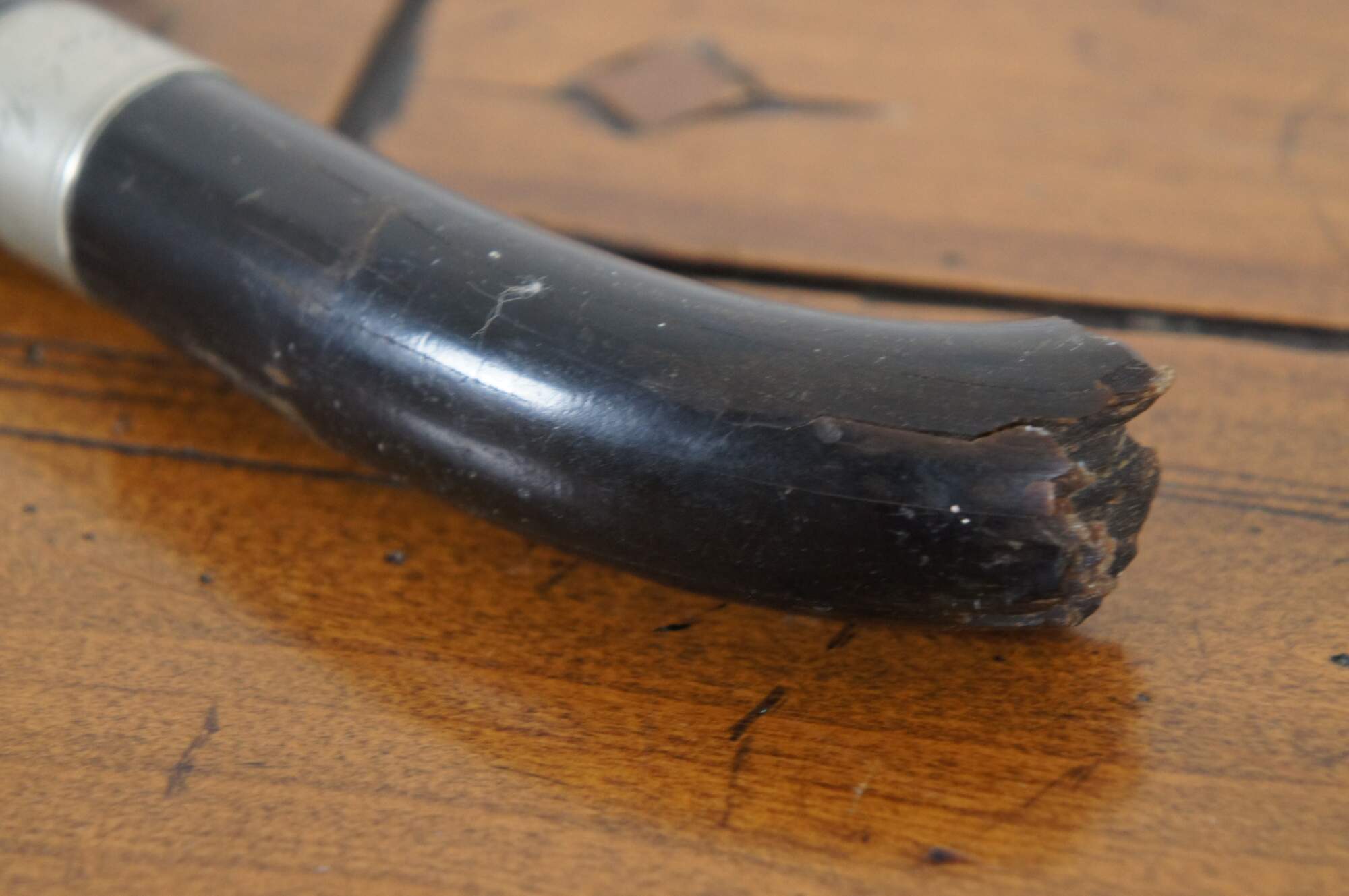 A history of the cane is included which reads: “This cane was given to Chaplain Earnshaw by the family of General Joseph Hooker, who commanded the English Forces at the Battle of Chancellorsville (which he lost.) The shaft of the cane was made from the “poop” of the vessel of John Paul Jones. The handle was made from the horn of a buffalo that General Grant shot. General Hooker died with the cane in his hands as he walked down stairs. Two battles later which ended in Gettysburg, the Norths cause was settled. General grant was put in command.”