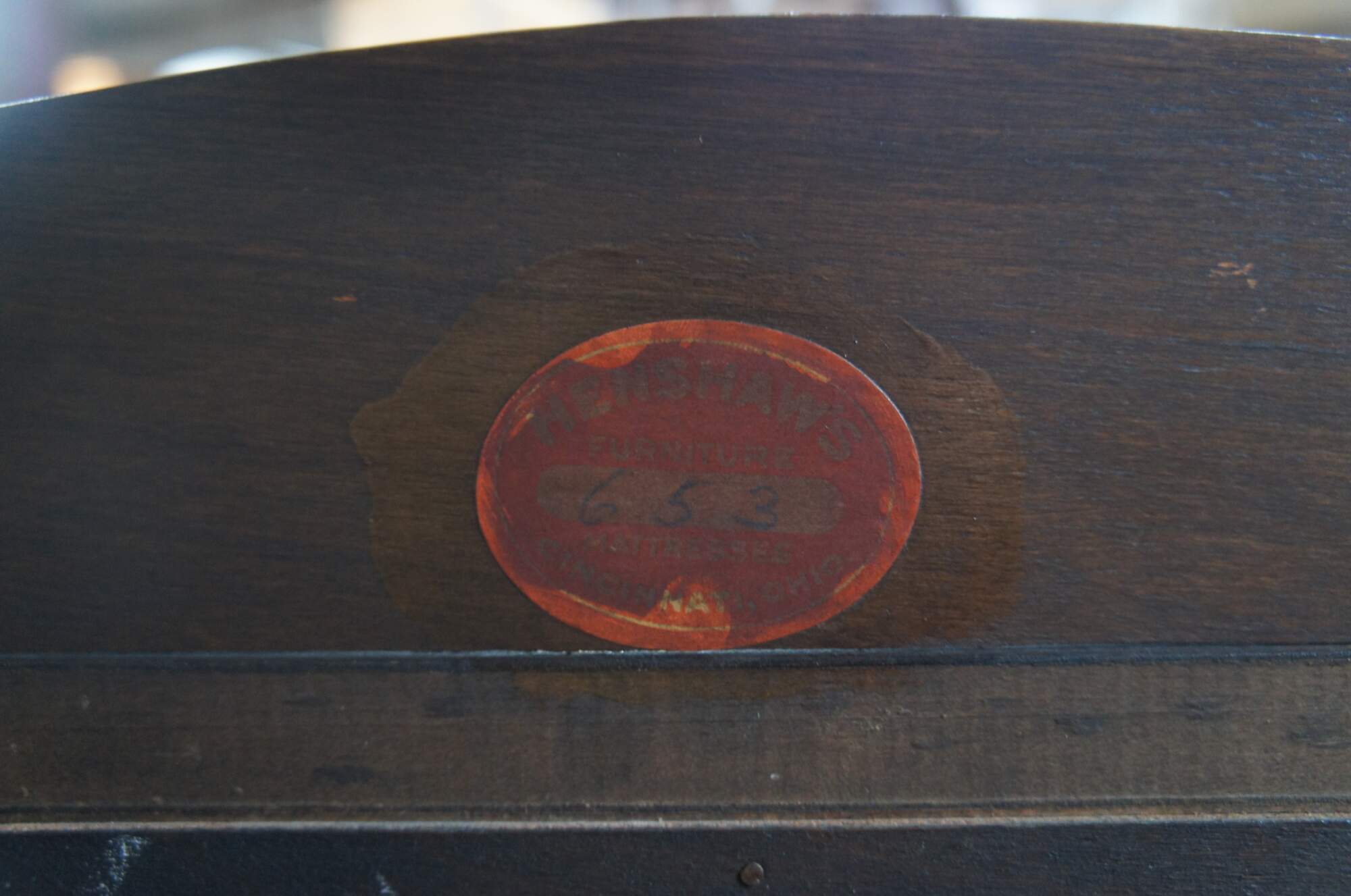 Early 20th-century ads show both Golden Oak case pieces with serpentine fronts and cabriole legs referencing French historical styles, as well as Mission oak pieces. A 1900 article also lists mahogany, birch, maple, and bird’s-eye maple in their lines. Ads from the 1910s and ‘20s show dining room furniture, living room, and hall furniture, and spinet desks in a wide range of period styles, including Spanish Renaissance, Spanish Gothic, Elizabethan, Jacobean, Georgian, Adam, and Early American. Favored woods were walnut and mahogany. A Tudor line called “Castle Oak” seems to have been a flagship product in the early twenties.