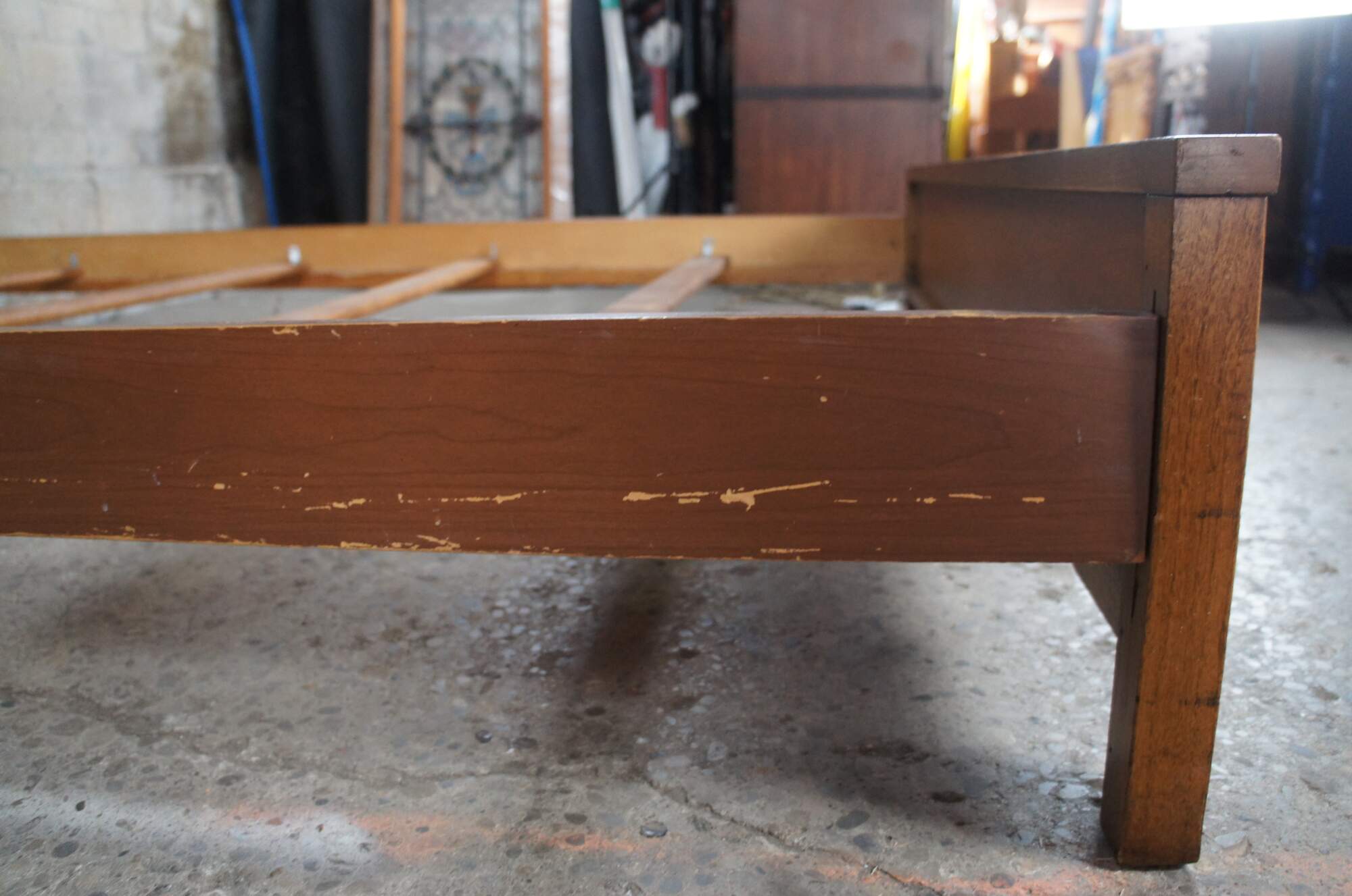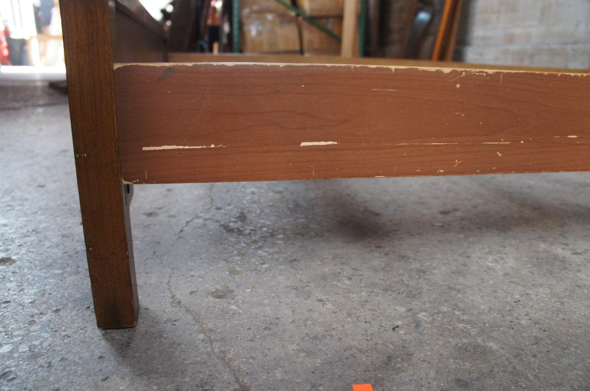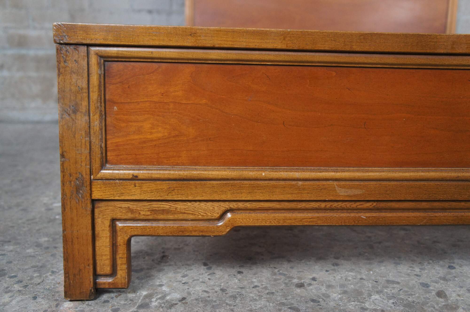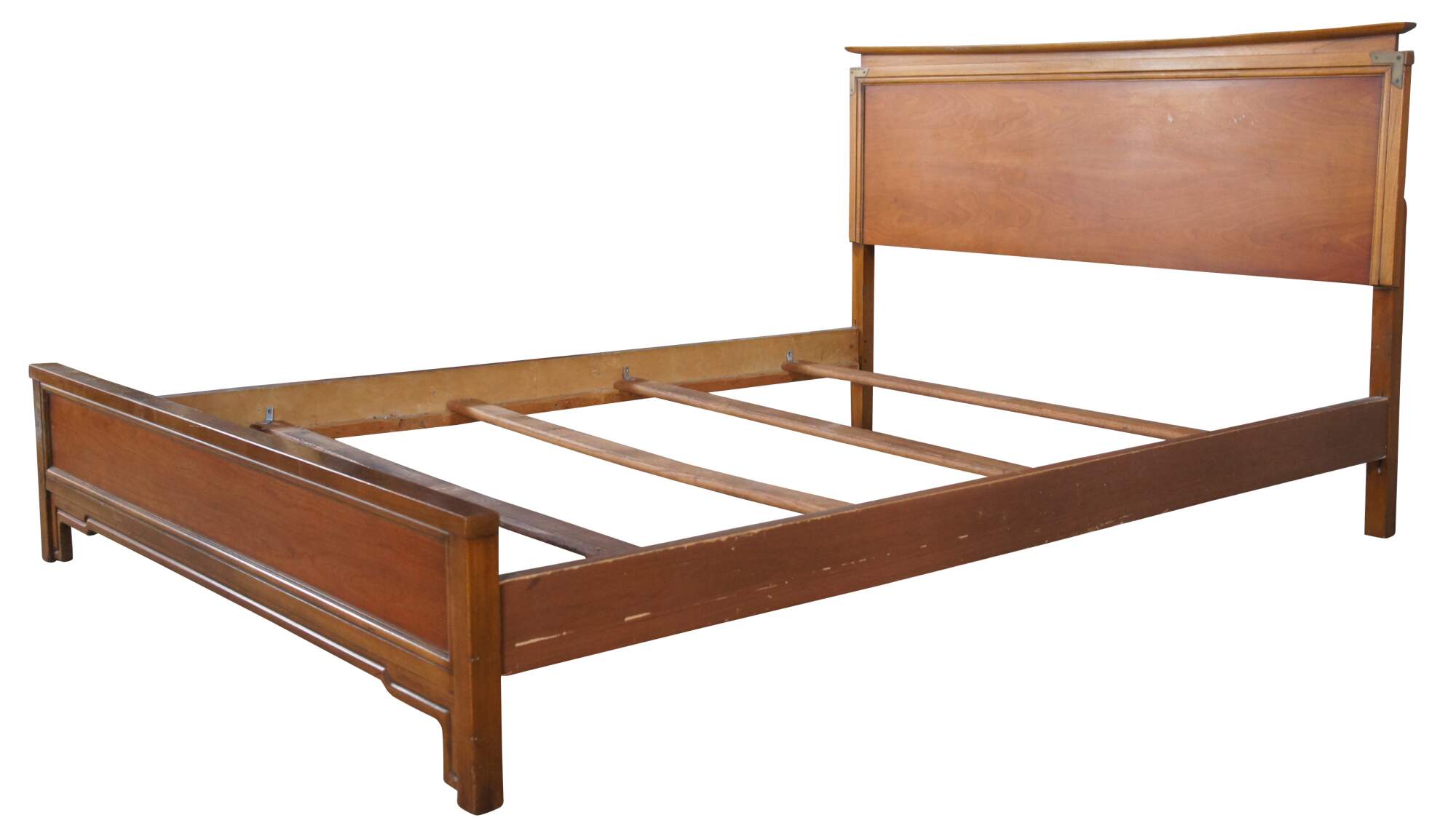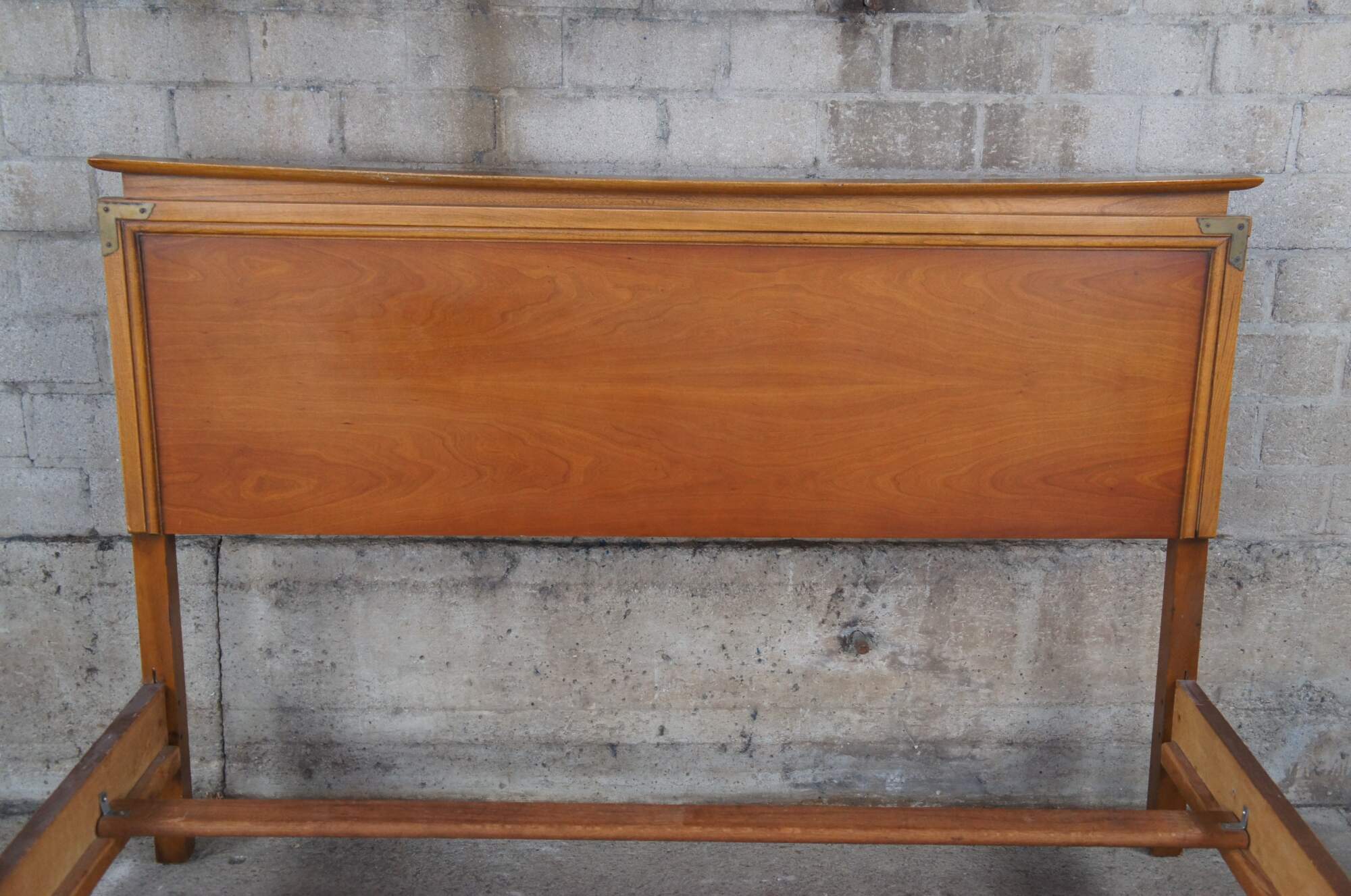 A beautiful mid century full size bed from ""The Lotus"" collection by Kent Coffey. Made from cherry with brass accents and modern low profile. Finished in Oriental Cherry. Circa 1960s. 6400.