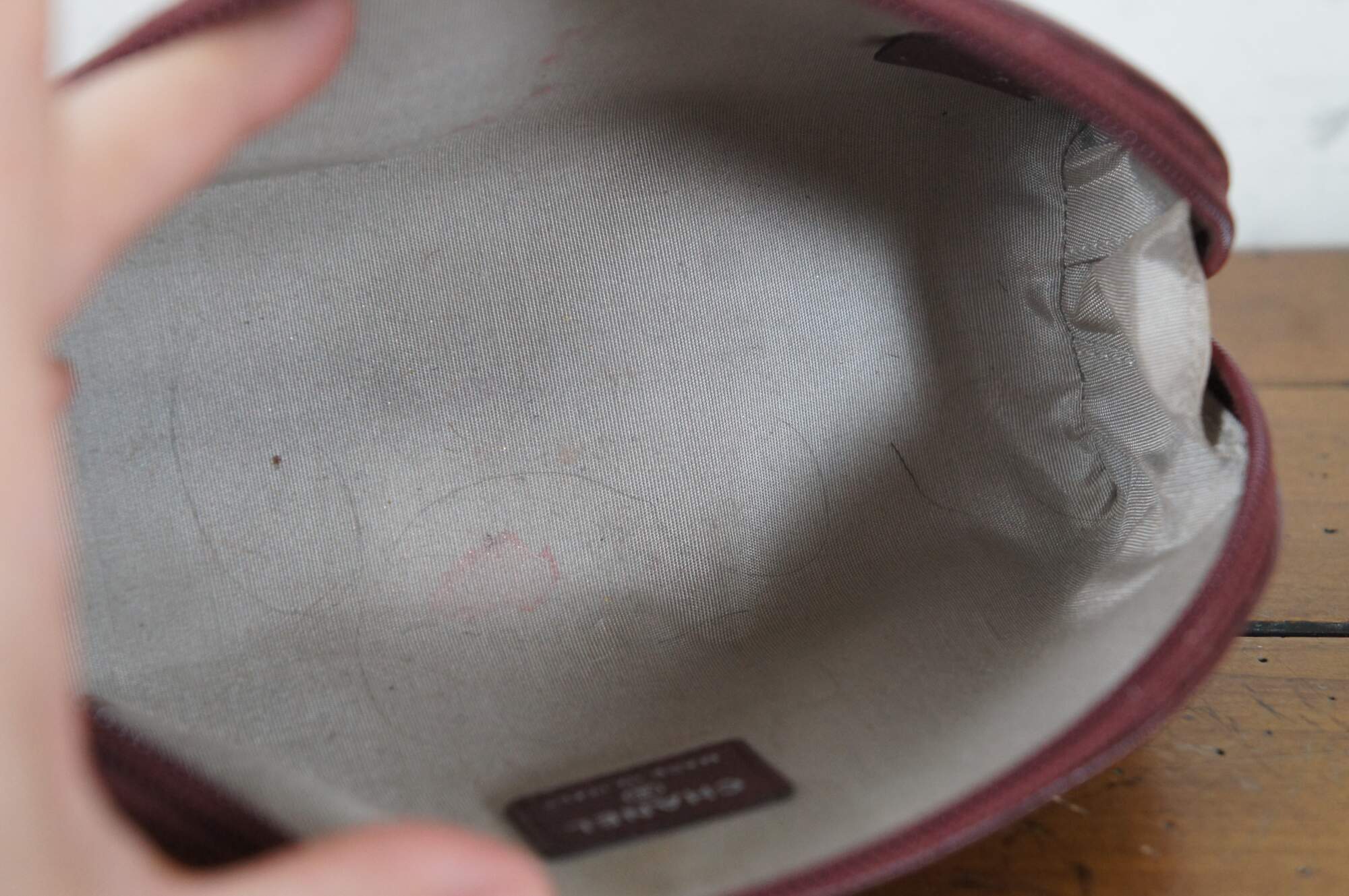Vintage Chanel Butterfly Camellia burgundy leather zippered cosmetic / beauty / makeup / toiletry bag, stamped with a flower and iconic silver interlocked C logo. Made in Italy.
