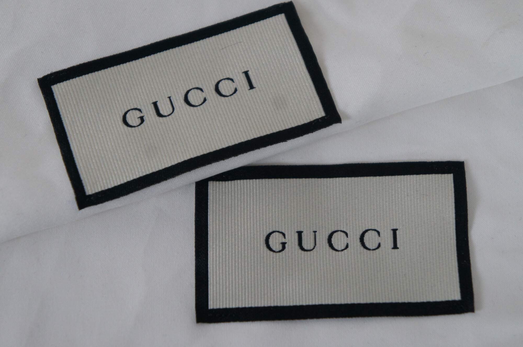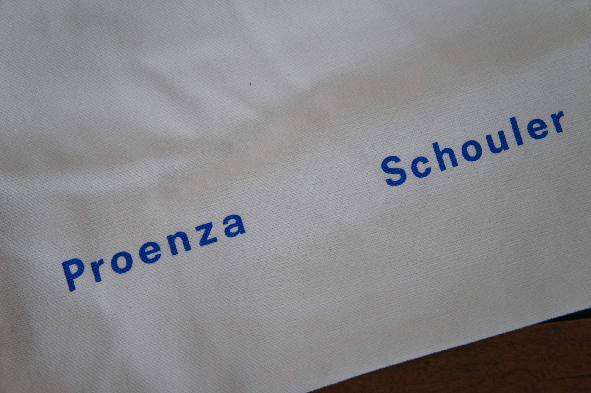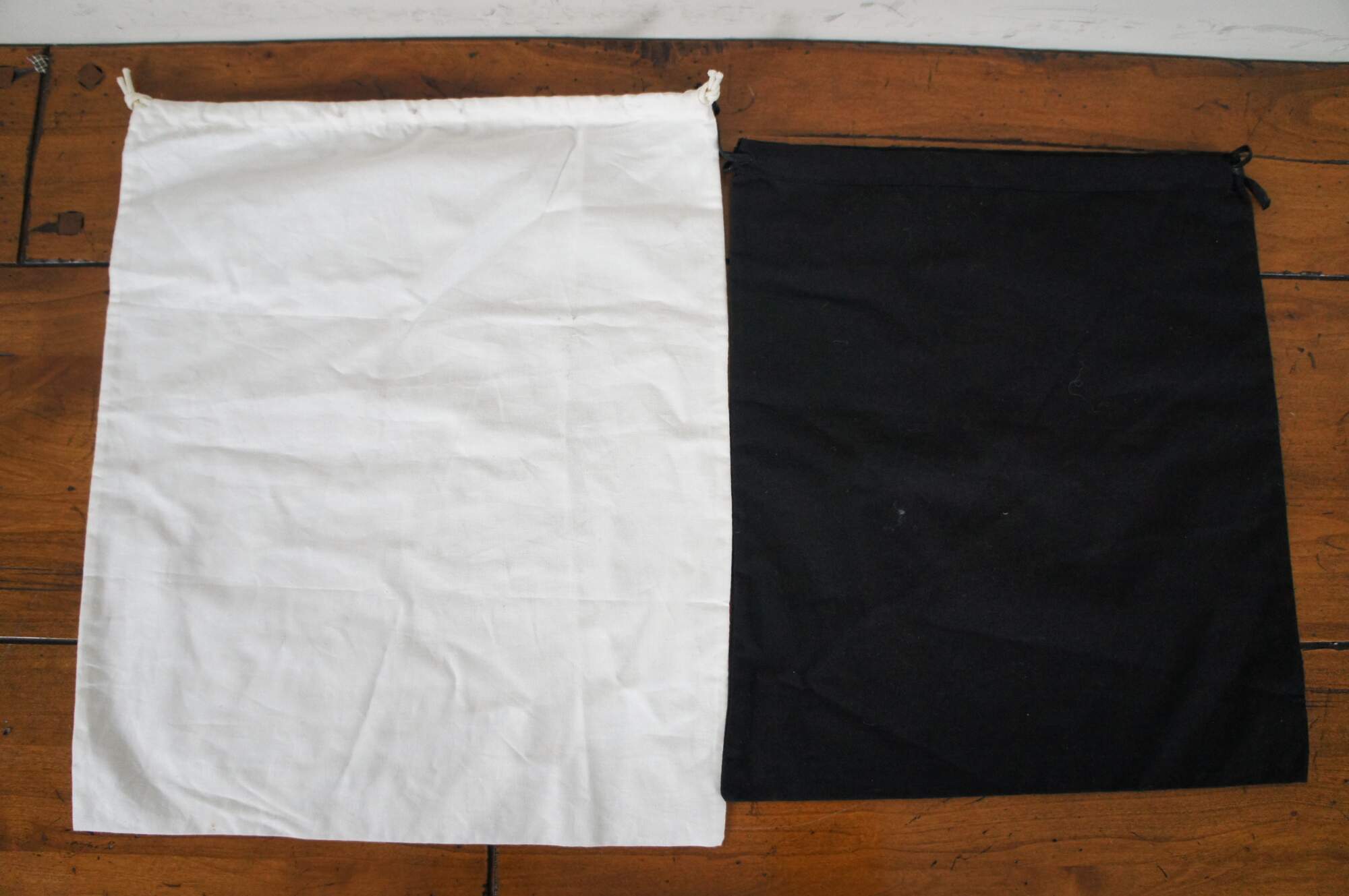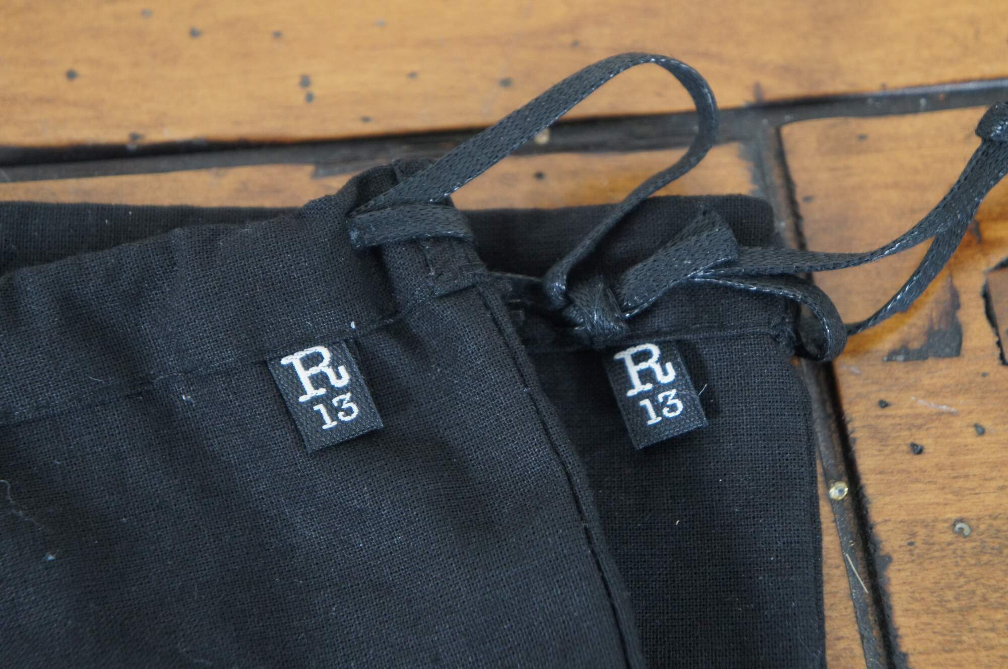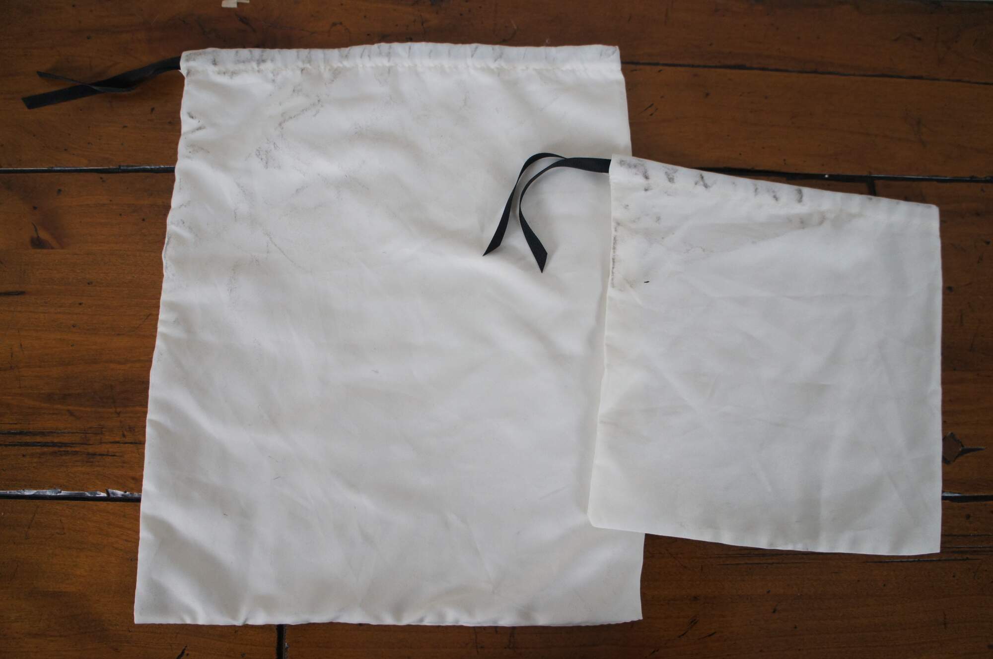 Six designer drawstring storage shoe / handbag / bag / accessory dust bags including one Balenciaga, two marked R13, two Gucci, and one Proenza Schouler.