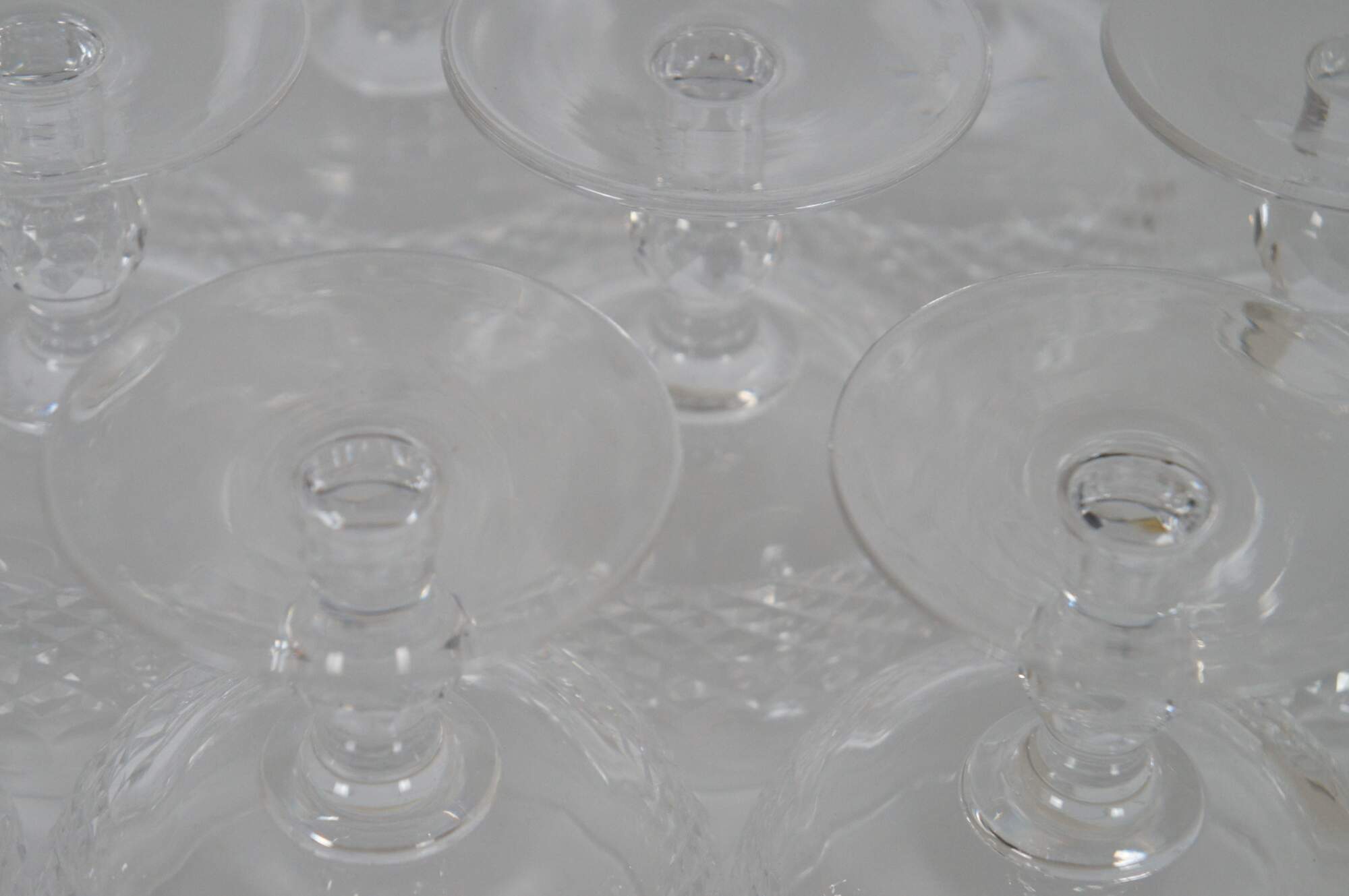 Set of ten vintage Waterford cut crystal short stem champagne / tall sherbet glasses in the Colleen pattern. 764111