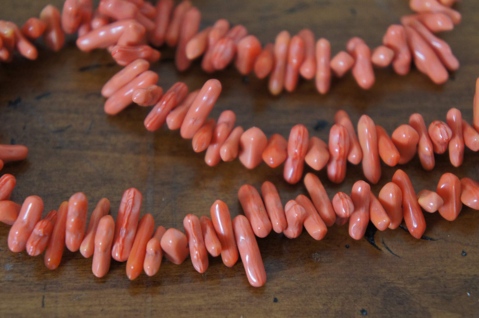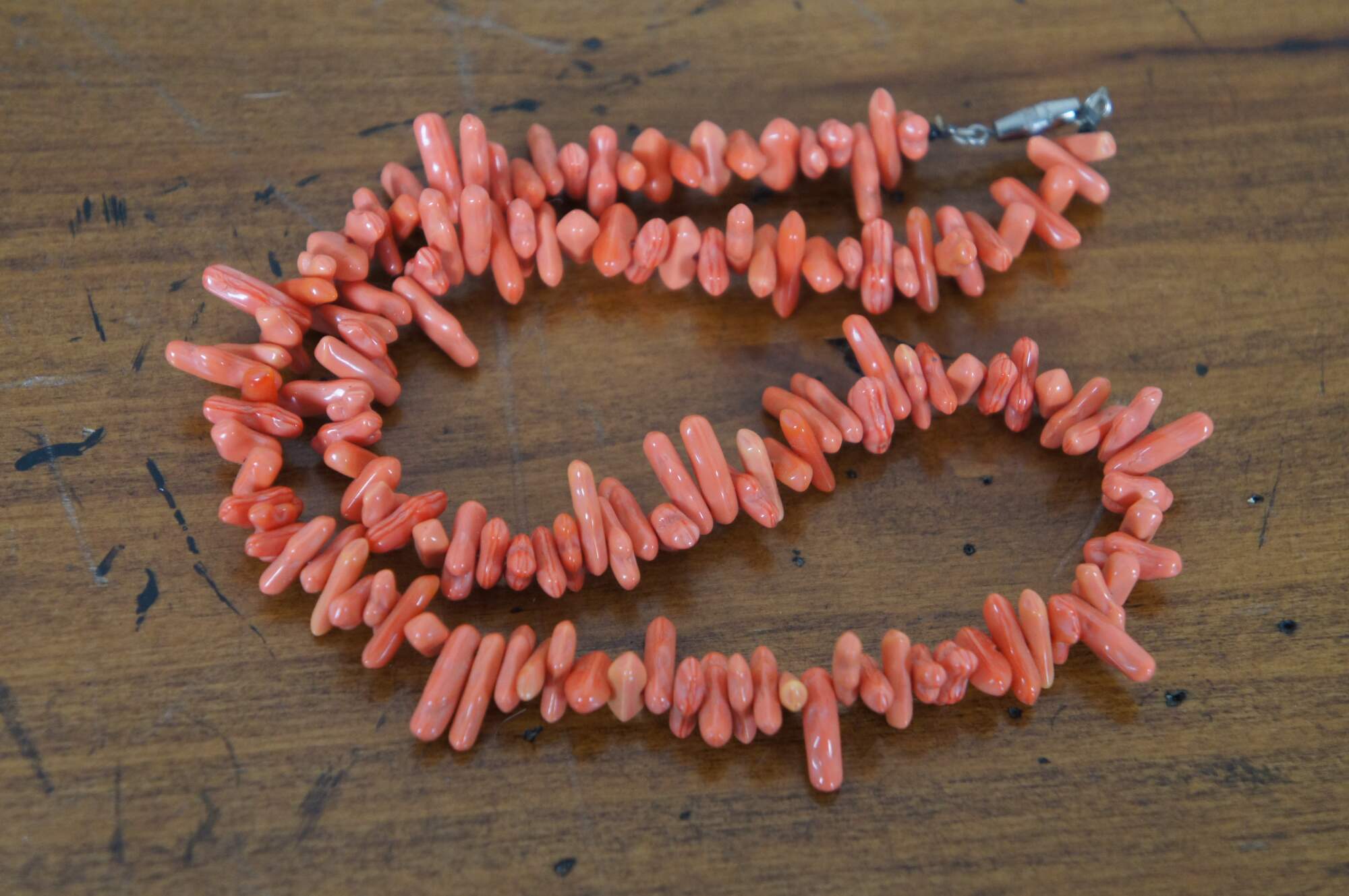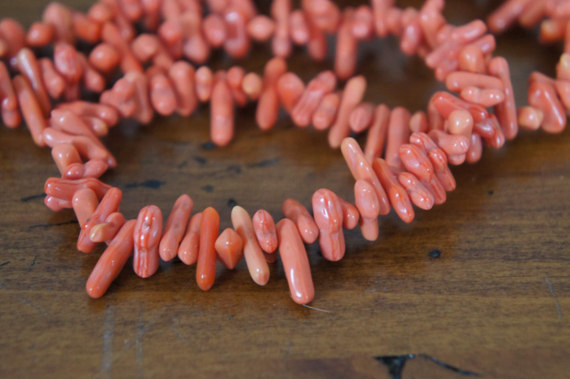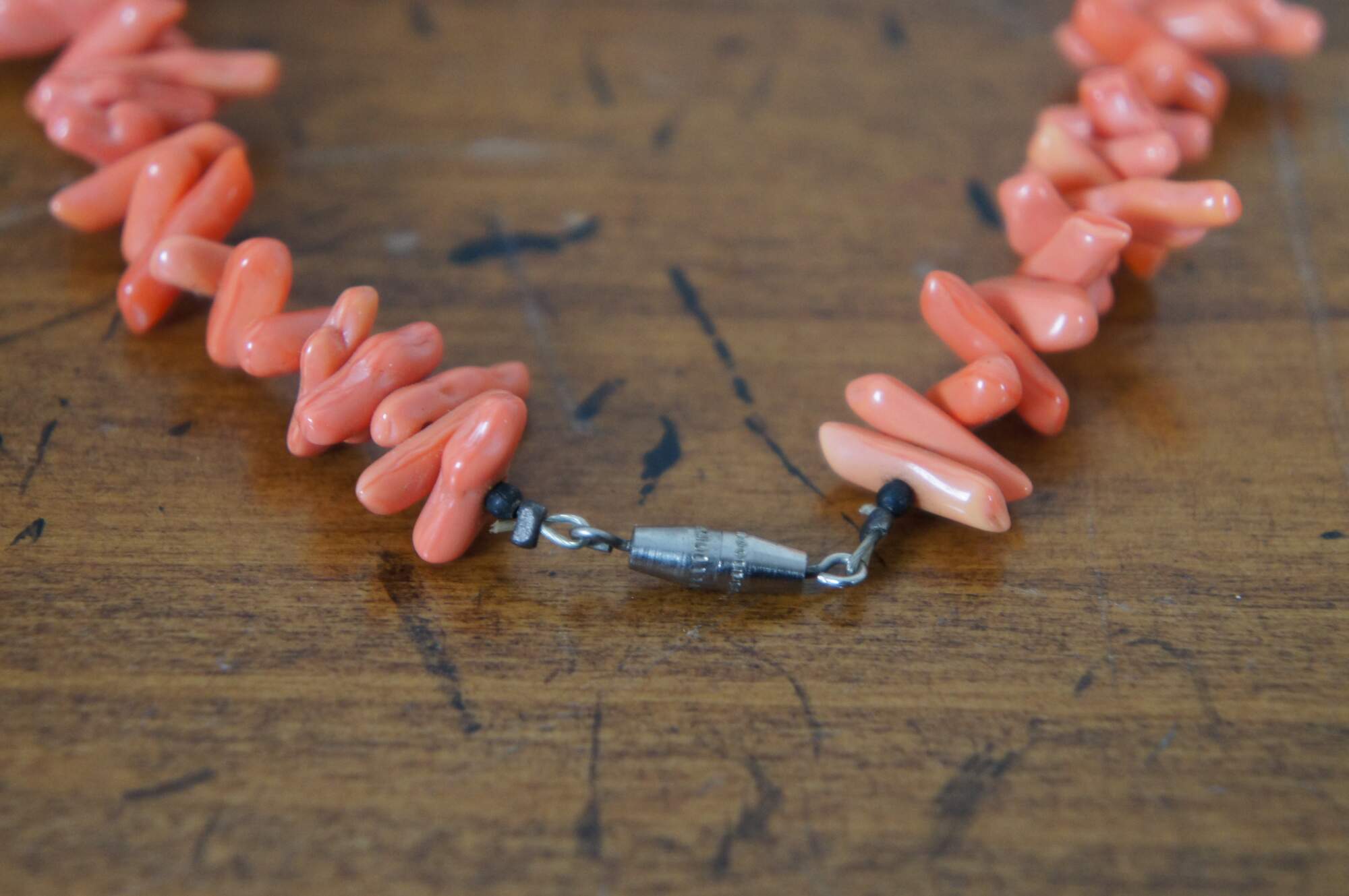 Vintage salmon pink or red coral beaded necklace.
