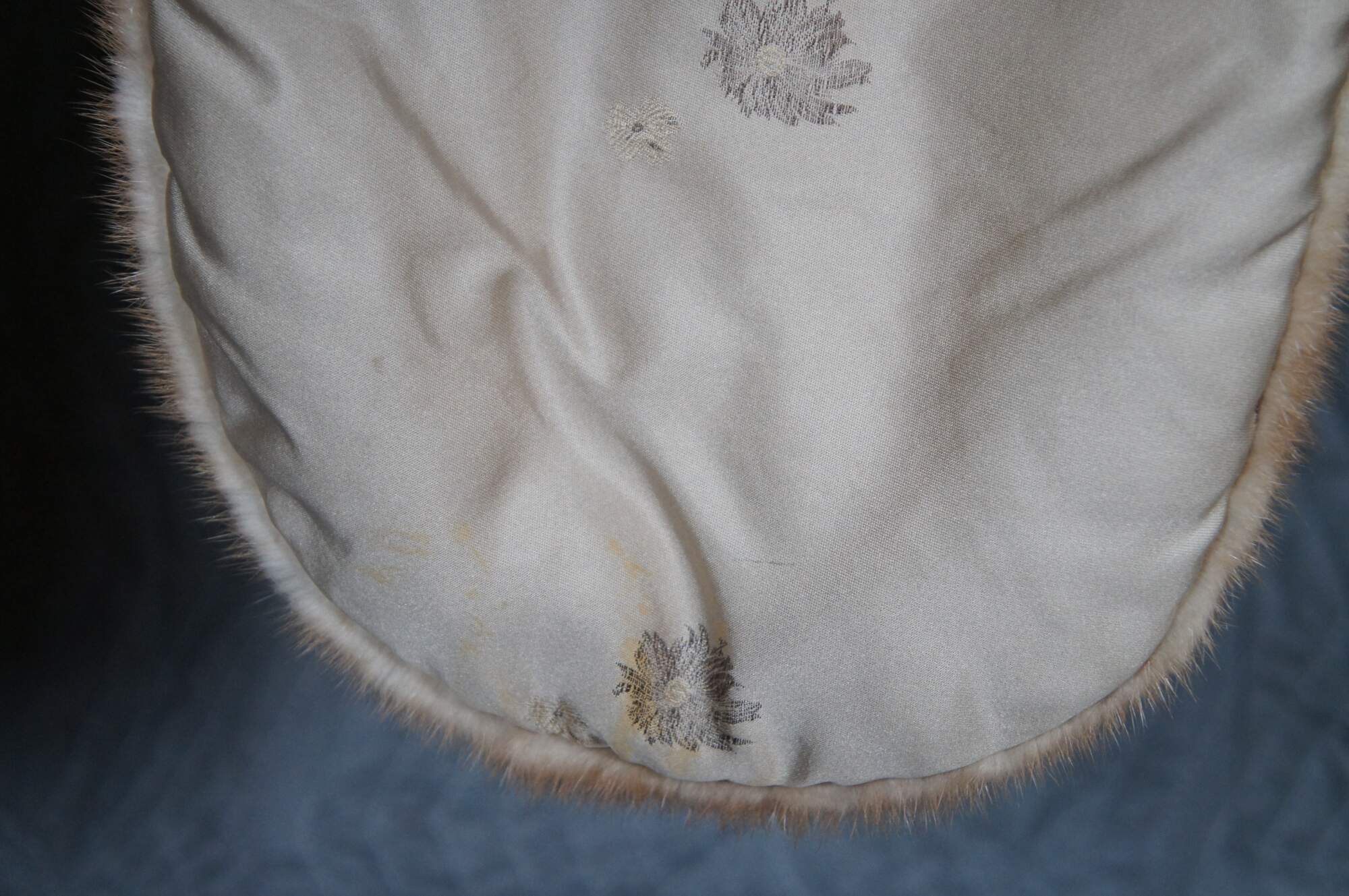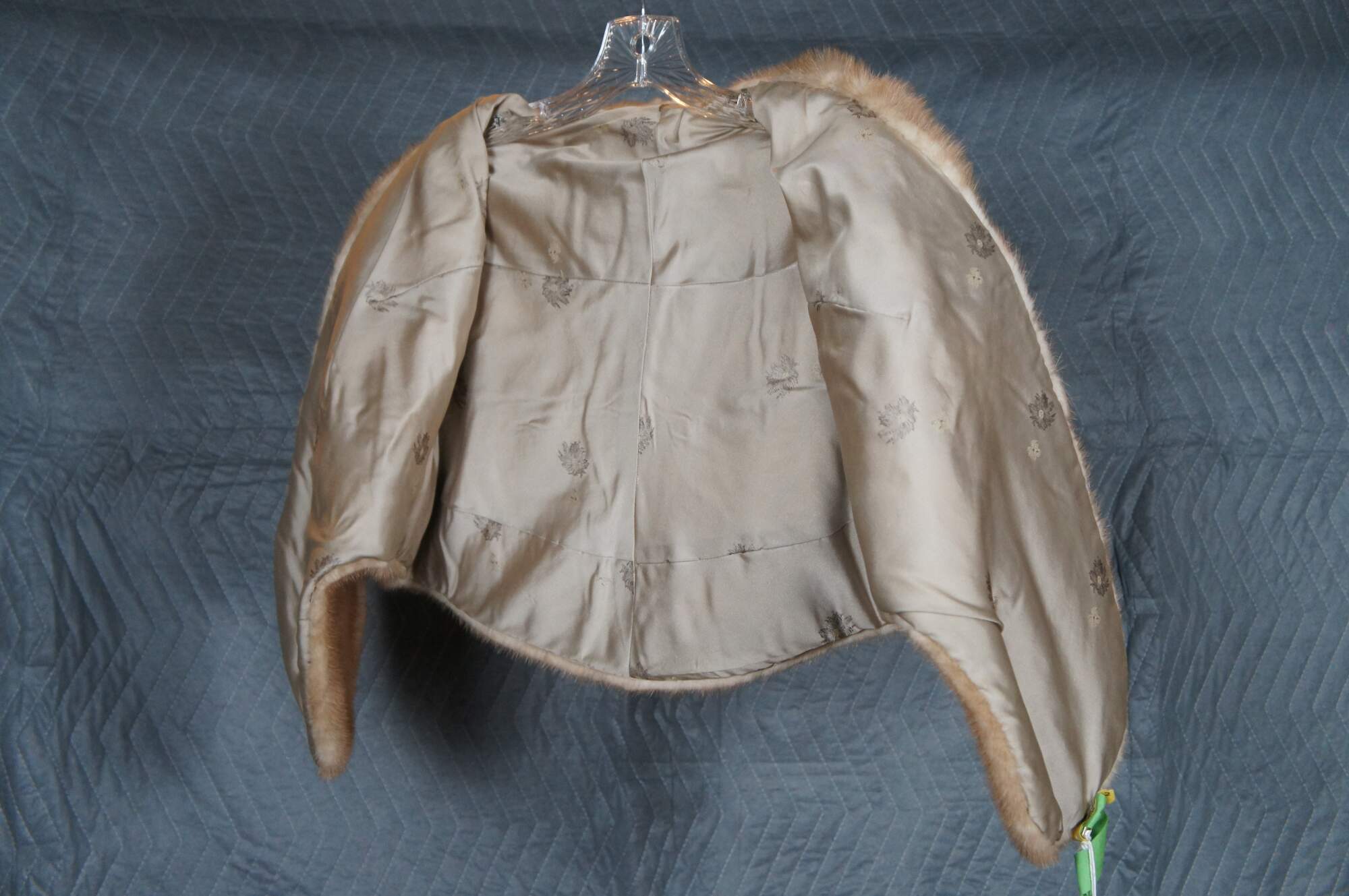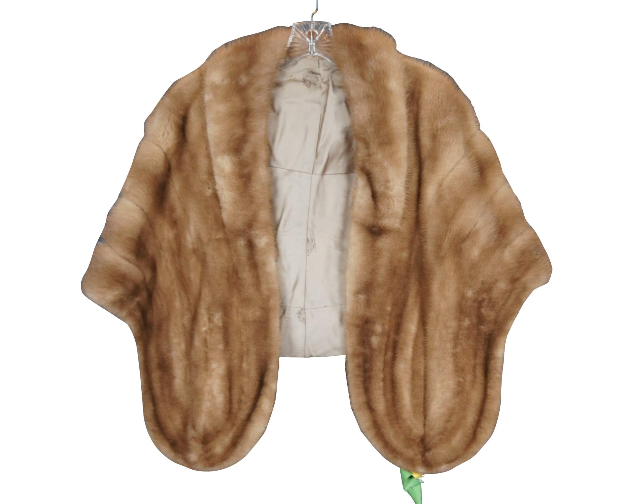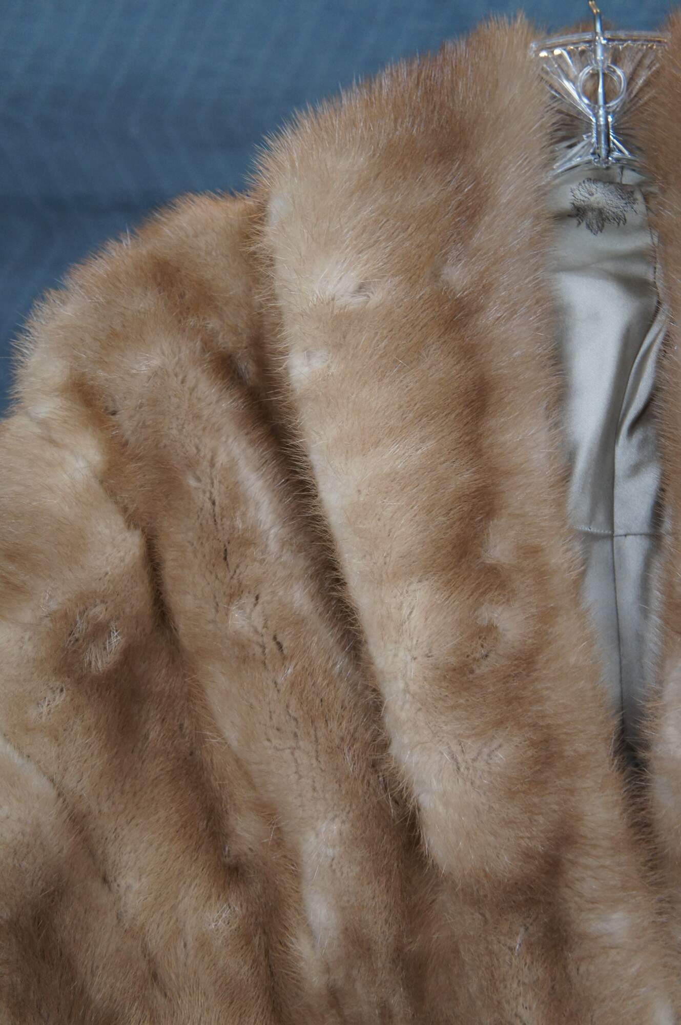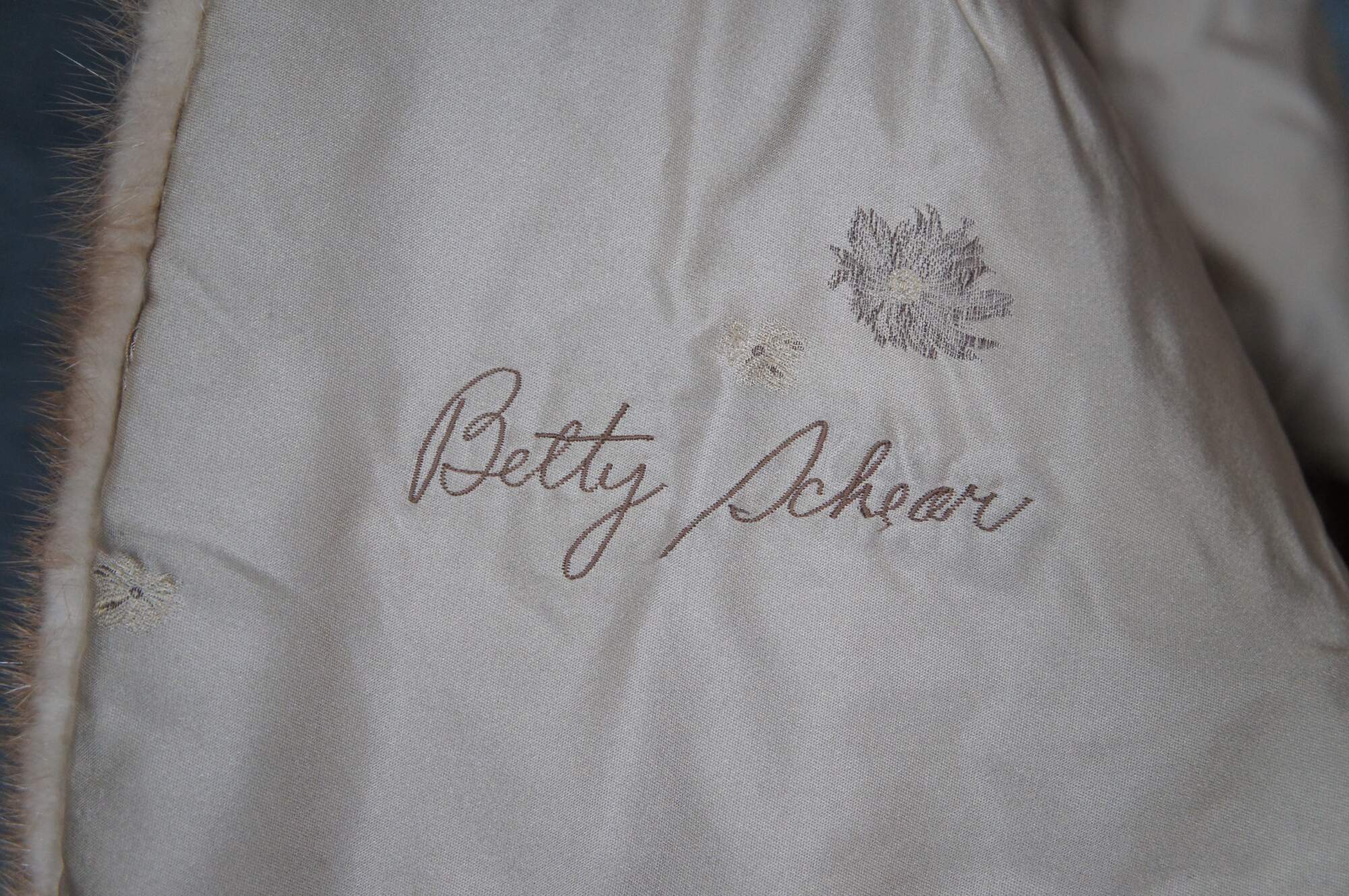 Vintage mid to late 20th century, light to medium brown, genuine mink fur stole or shawl. Lined with floral silk; personalized with the name Betty Schear.
