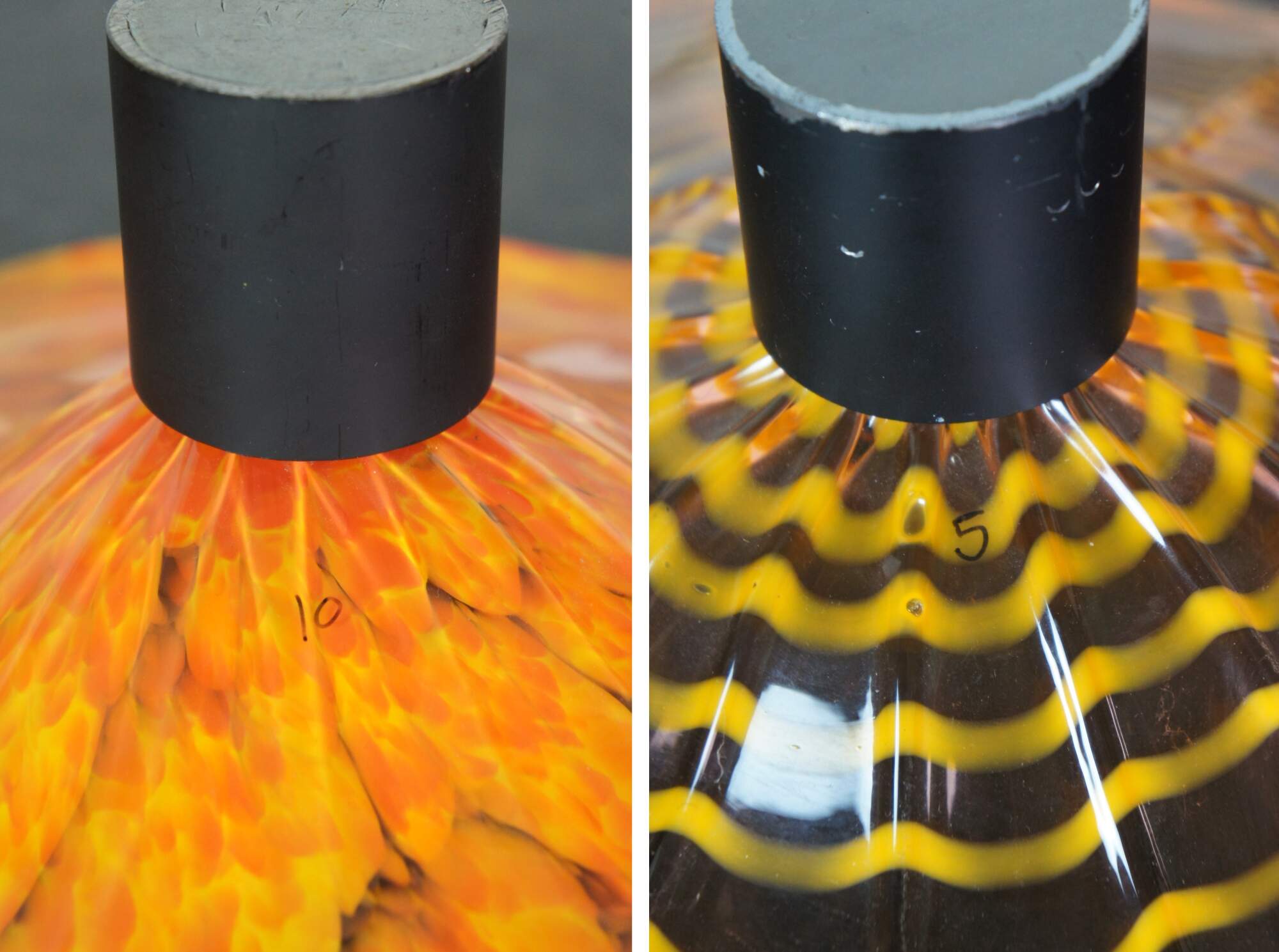 I live in Cedarville Ohio and work out of a glass studio in Columbus. All of my pieces are hand blown from liquid glass taken from a 2000-degree furnace. Each piece is created by adding color and shaped by blowing through the steel pipe to gently move the piece toward the desired shape. For me the process is the most intriguing part of working with hot glass. The challenge is to combine brilliant colors and shapes to draw the viewer’s attention to the finished piece that will add a splash of excitement to the space it occupies.