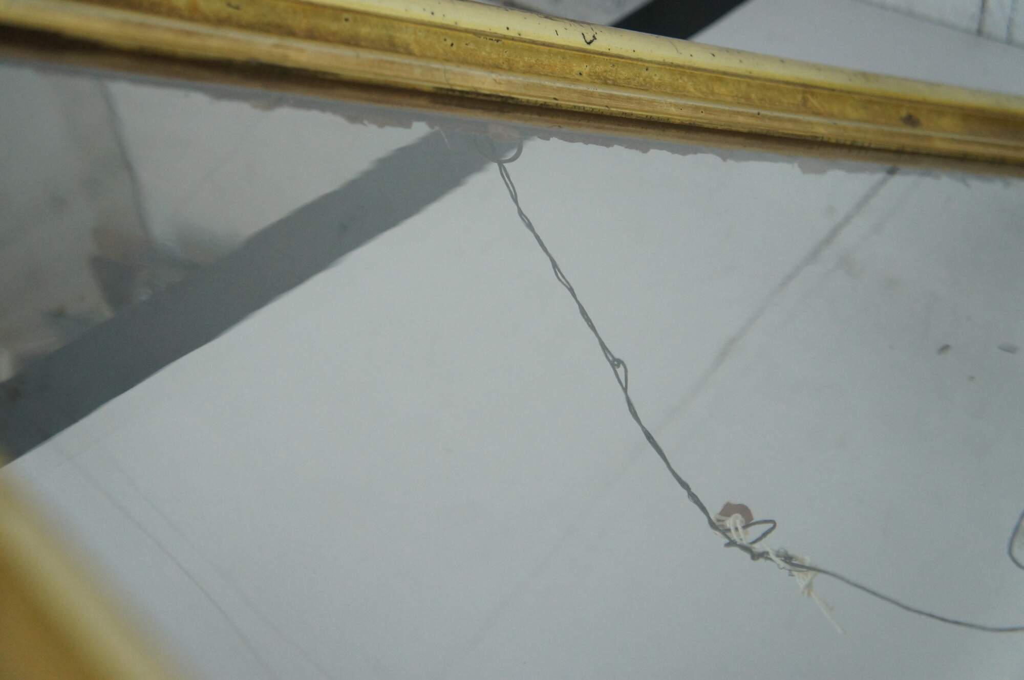 Antique beveled edge, rectangular gilt wood picture frame with original rolled / wavy antique glass.