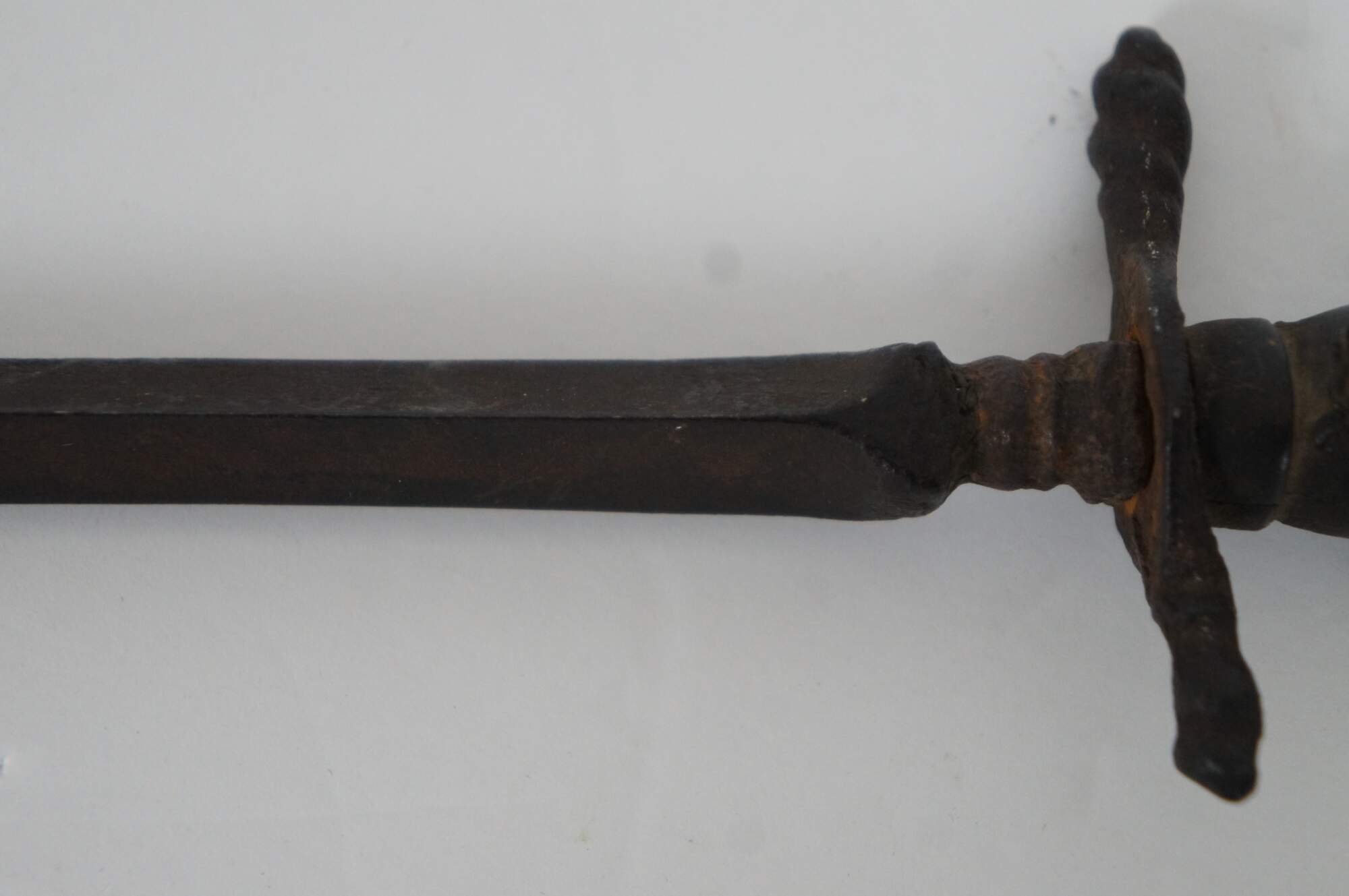 Particularly suited for thrusting, was often a gunner's last line of defense after the cannon and other arms available to the gun crew had been used. The triangular blades were often engraved with graduated markings and numbers. These divisions gave the gunner a means of measuring a gun bore and calibre of the ball, the ability to calculate distances, among other tasks.