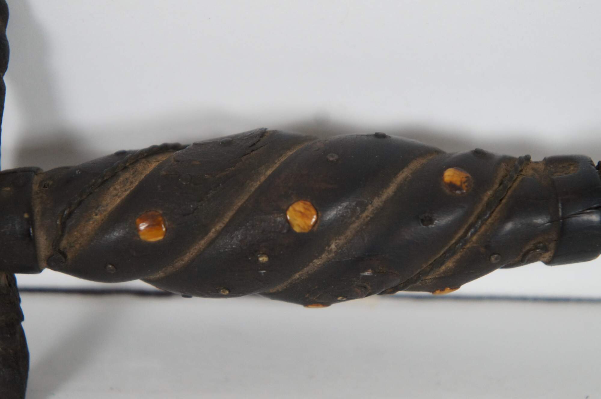 Good Antique Condition - Some light surface rust; stains in grooves/some missing wire inlay; cross guard slightly loose; some missing decorative beads
