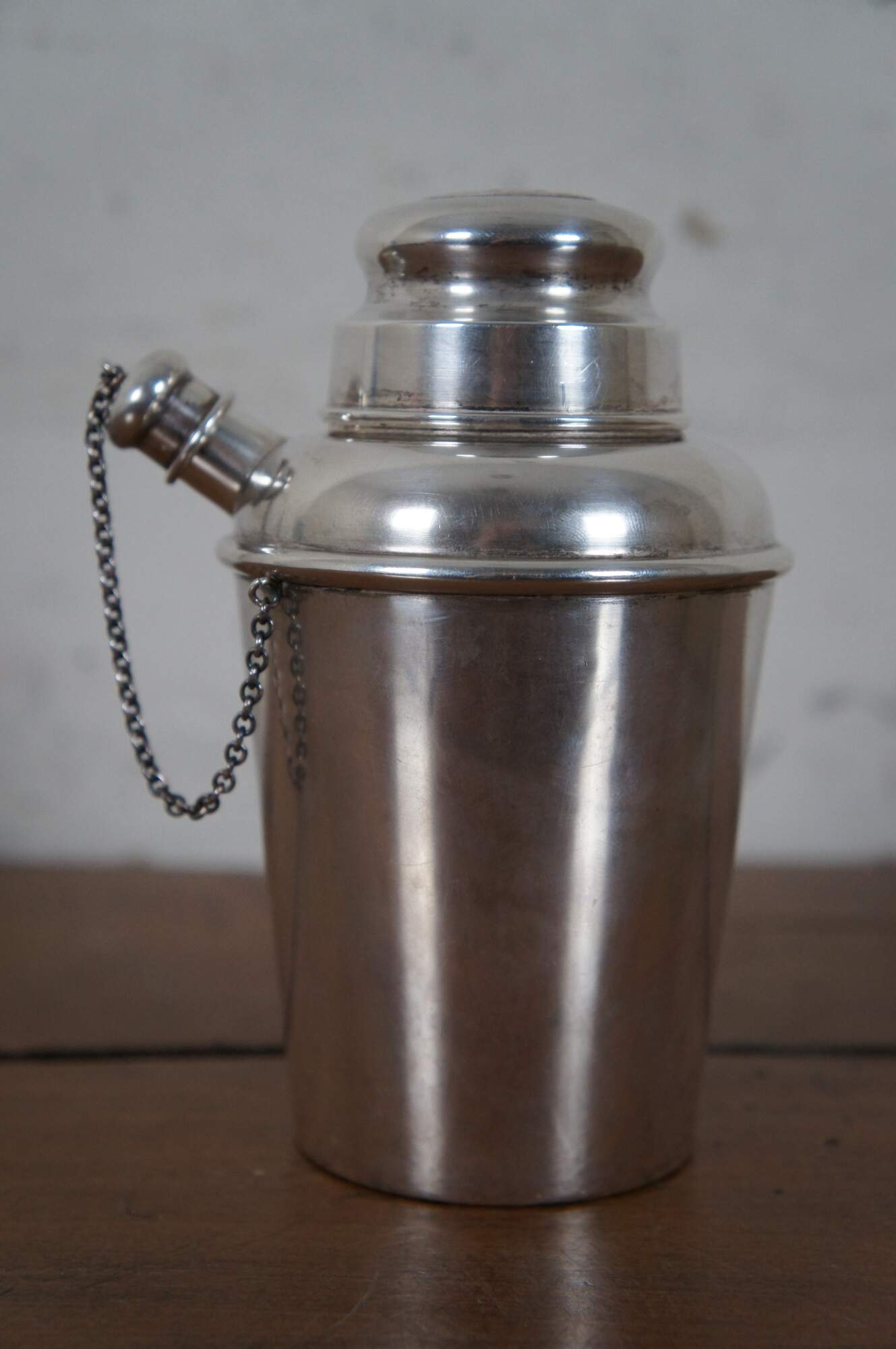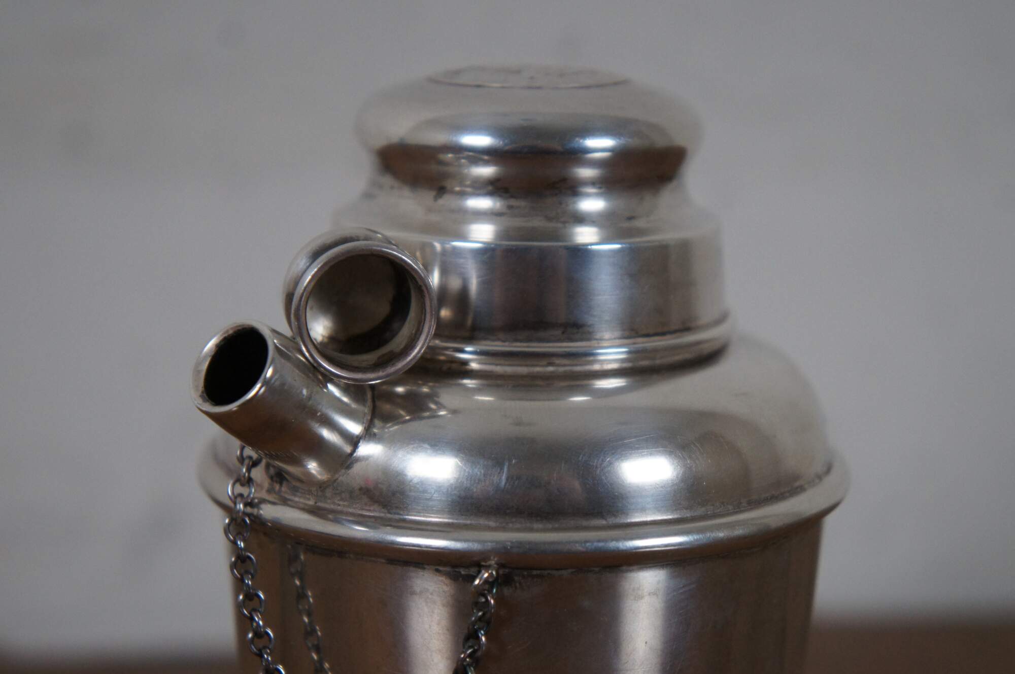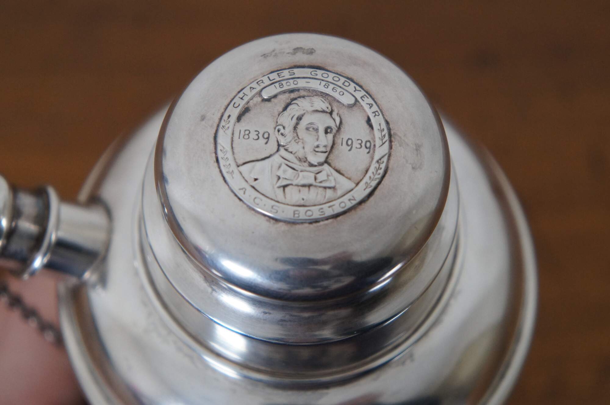 Antique 1939 Reed & Barton sterling silver solo cocktail shaker, sold by Shreve, Crump, & Low Company, commemorating the 100th anniversary of Charles Goodyear’s successful vulcanization of rubber in 1839 and the ACS (American Chemical Society) of Boston.