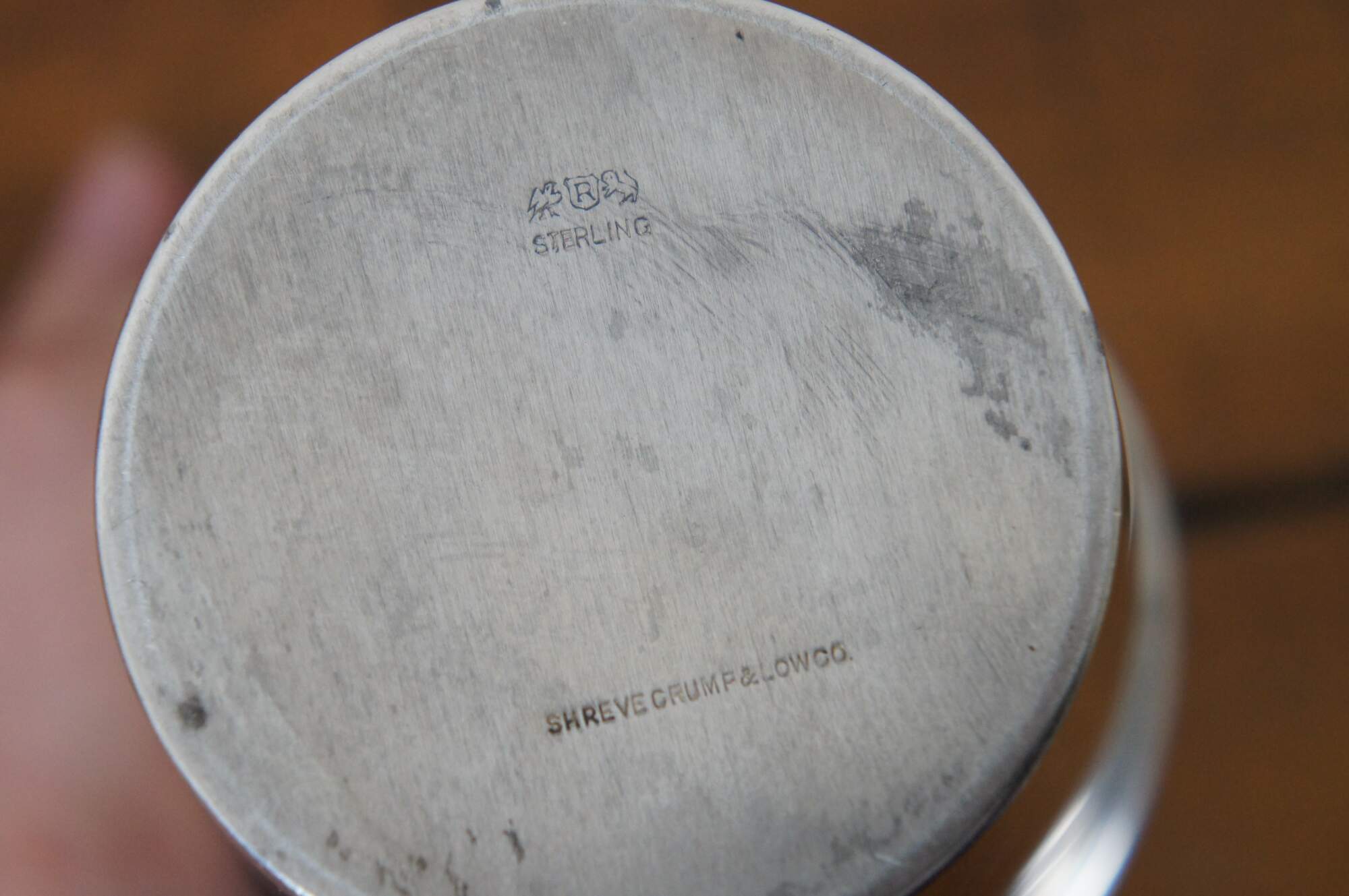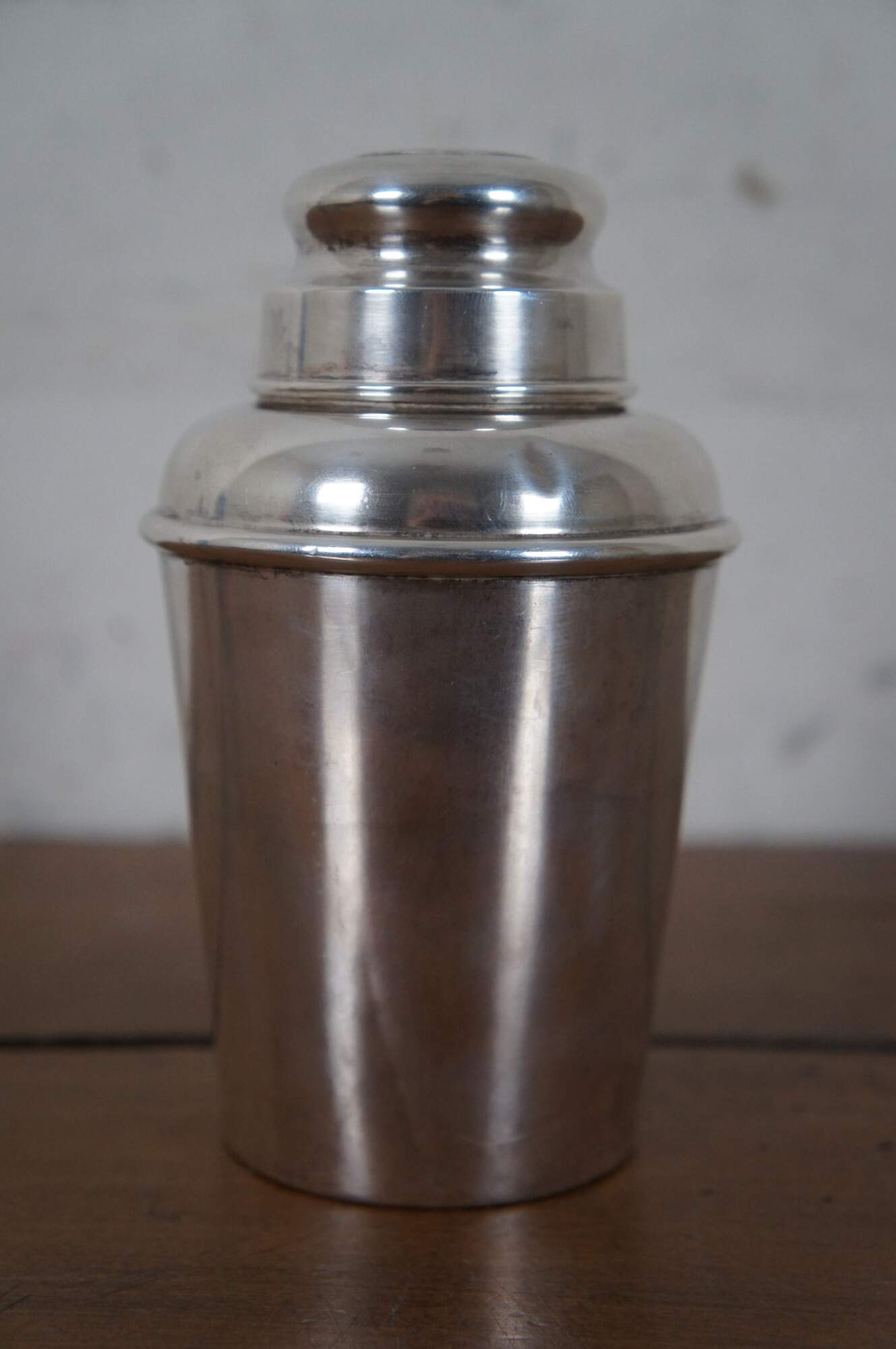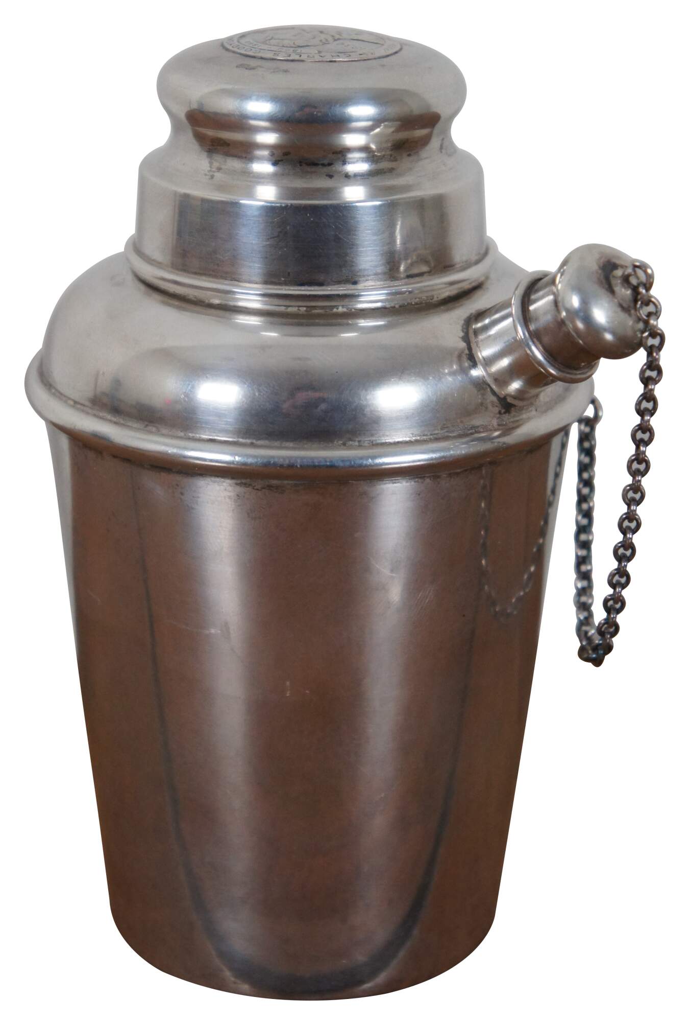 Antique 1939 Reed & Barton sterling silver solo cocktail shaker, sold by Shreve, Crump, & Low Company, commemorating the 100th anniversary of Charles Goodyear’s successful vulcanization of rubber in 1839 and the ACS (American Chemical Society) of Boston.