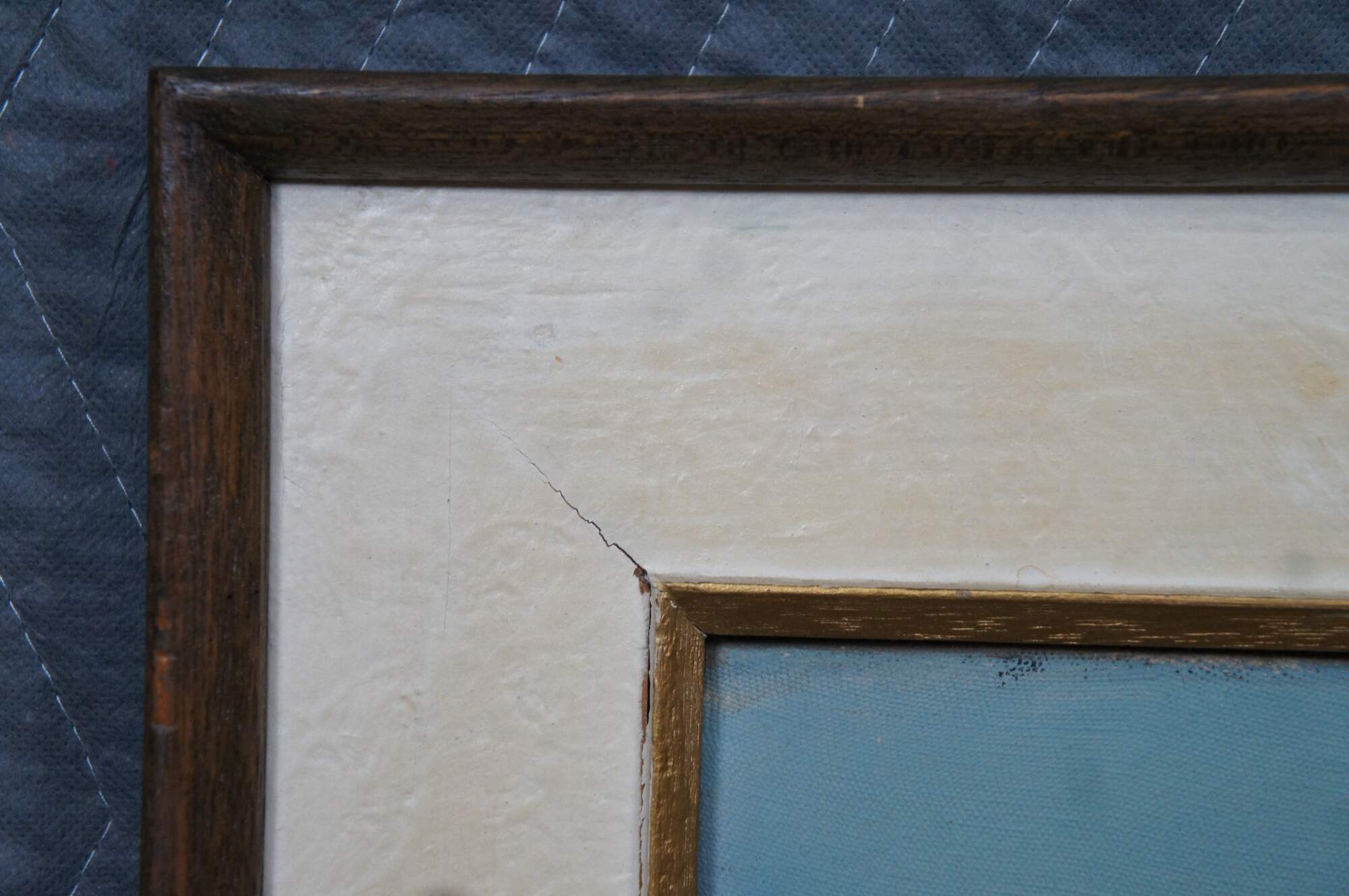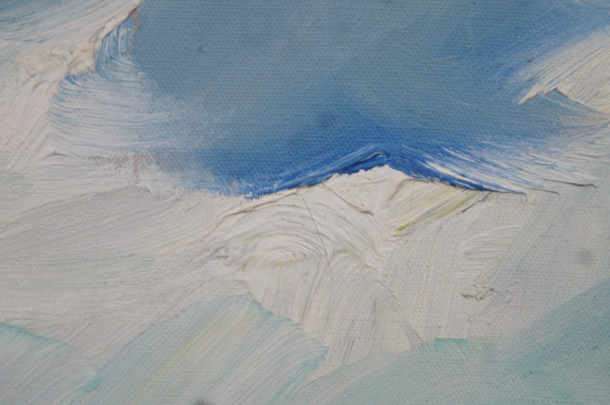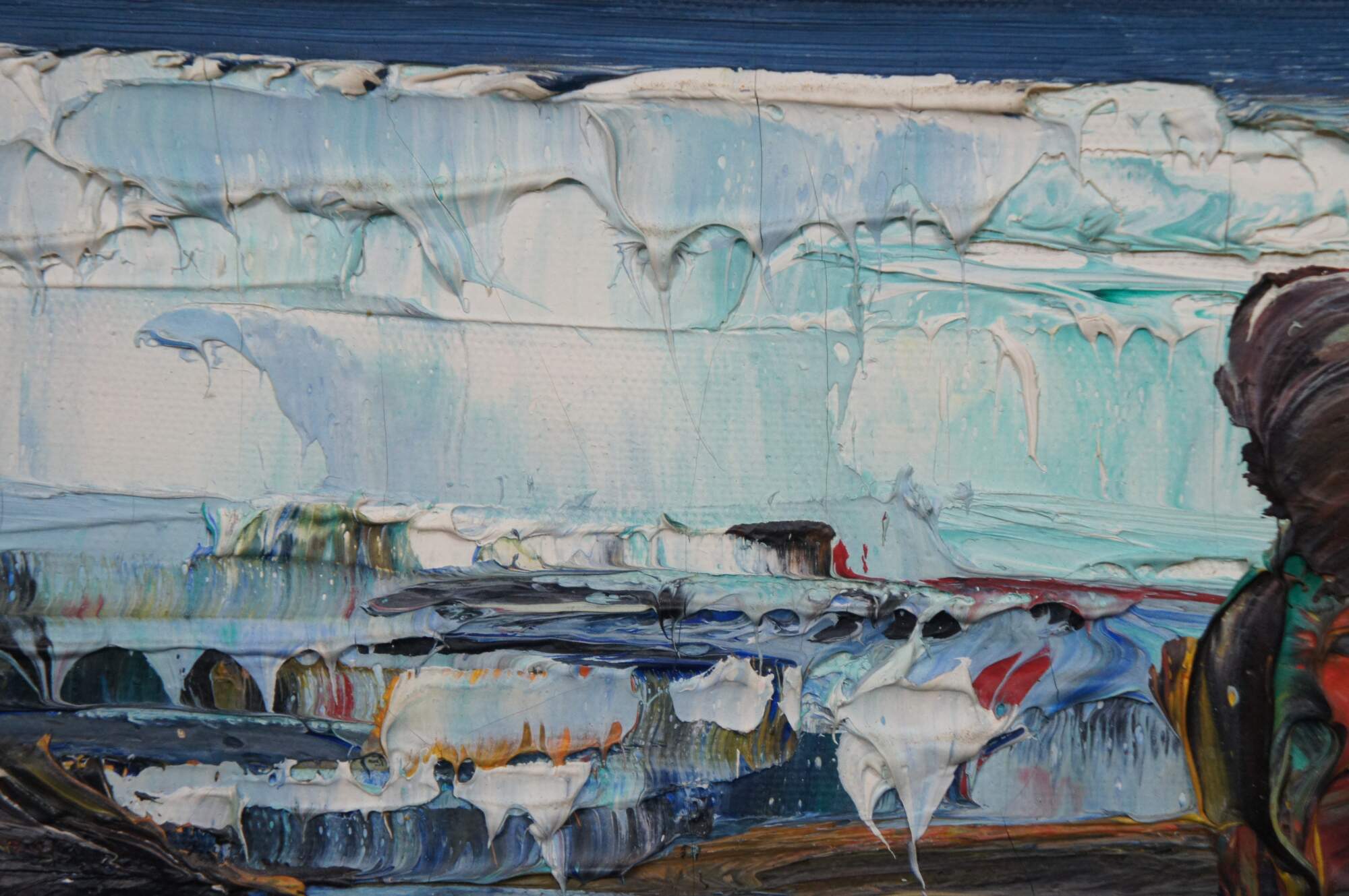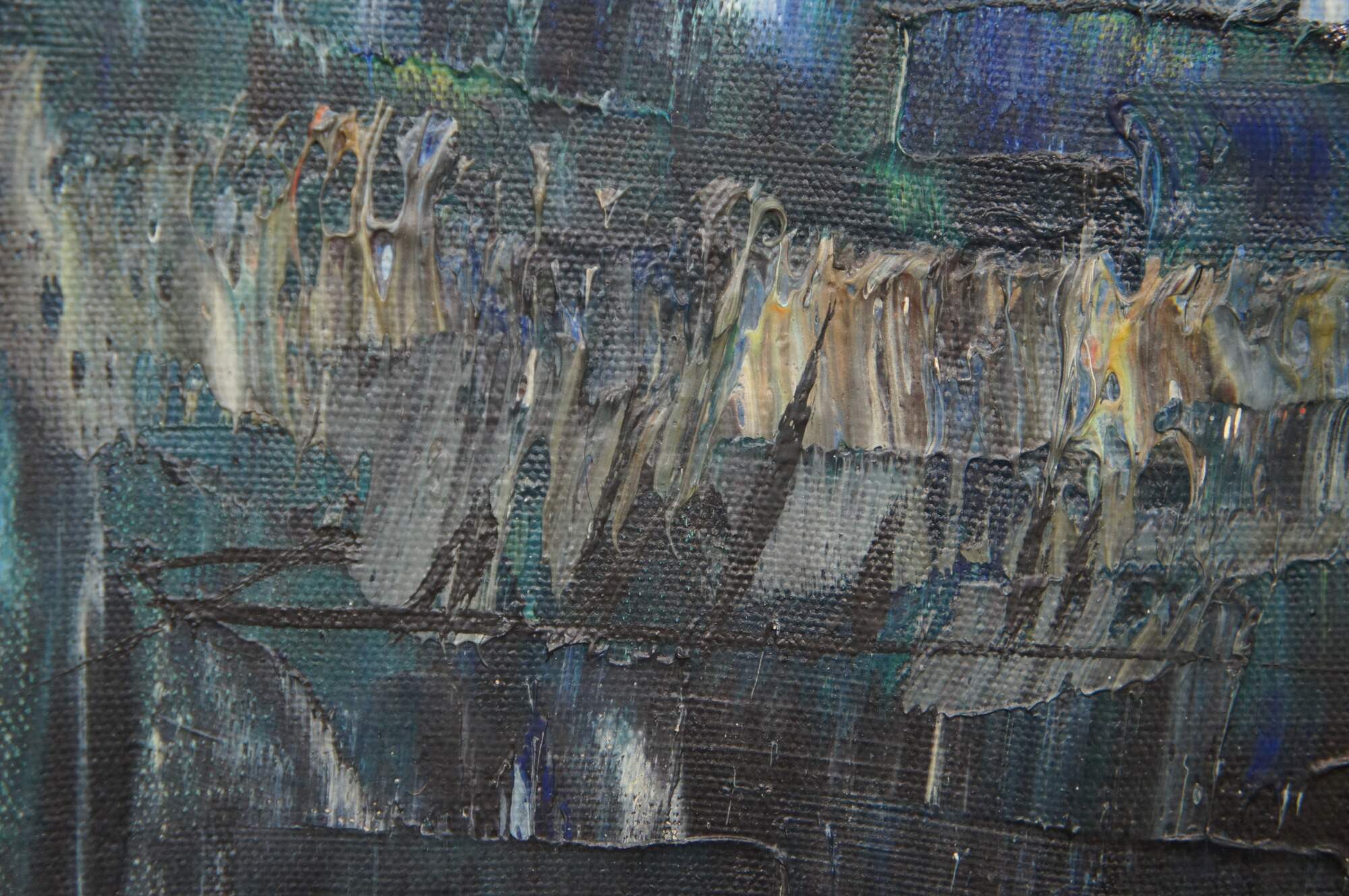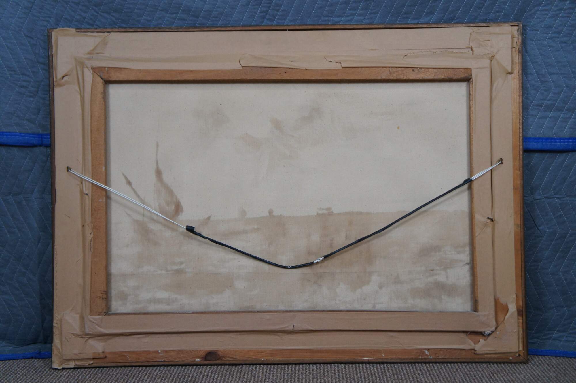 Vintage impressionist nautical / maritime / seascape oil painting on canvas showing African figures in bright clothing, with bundles on their heads, walking through the waves from a small sailboat / boat. Signed lower right.