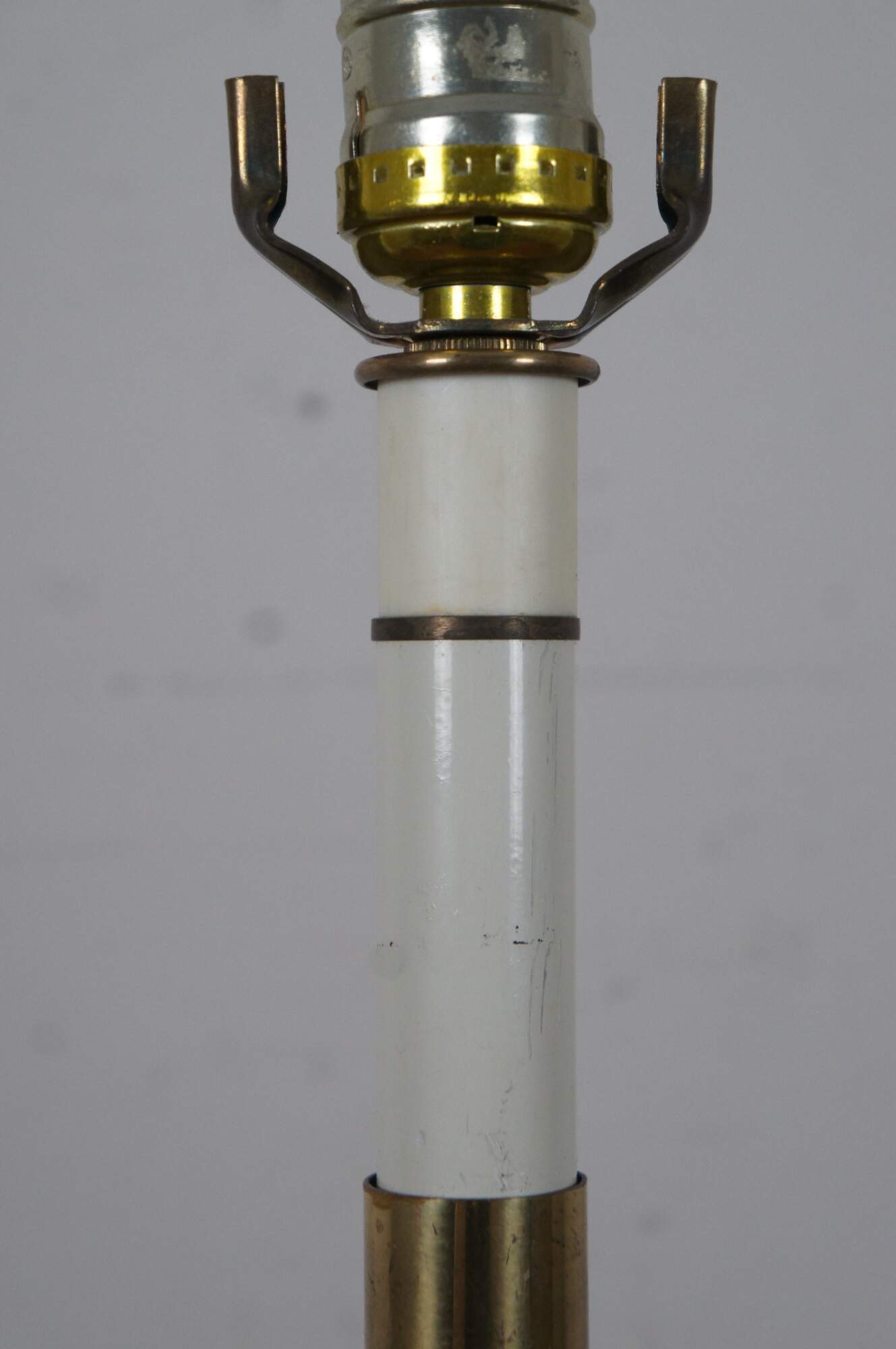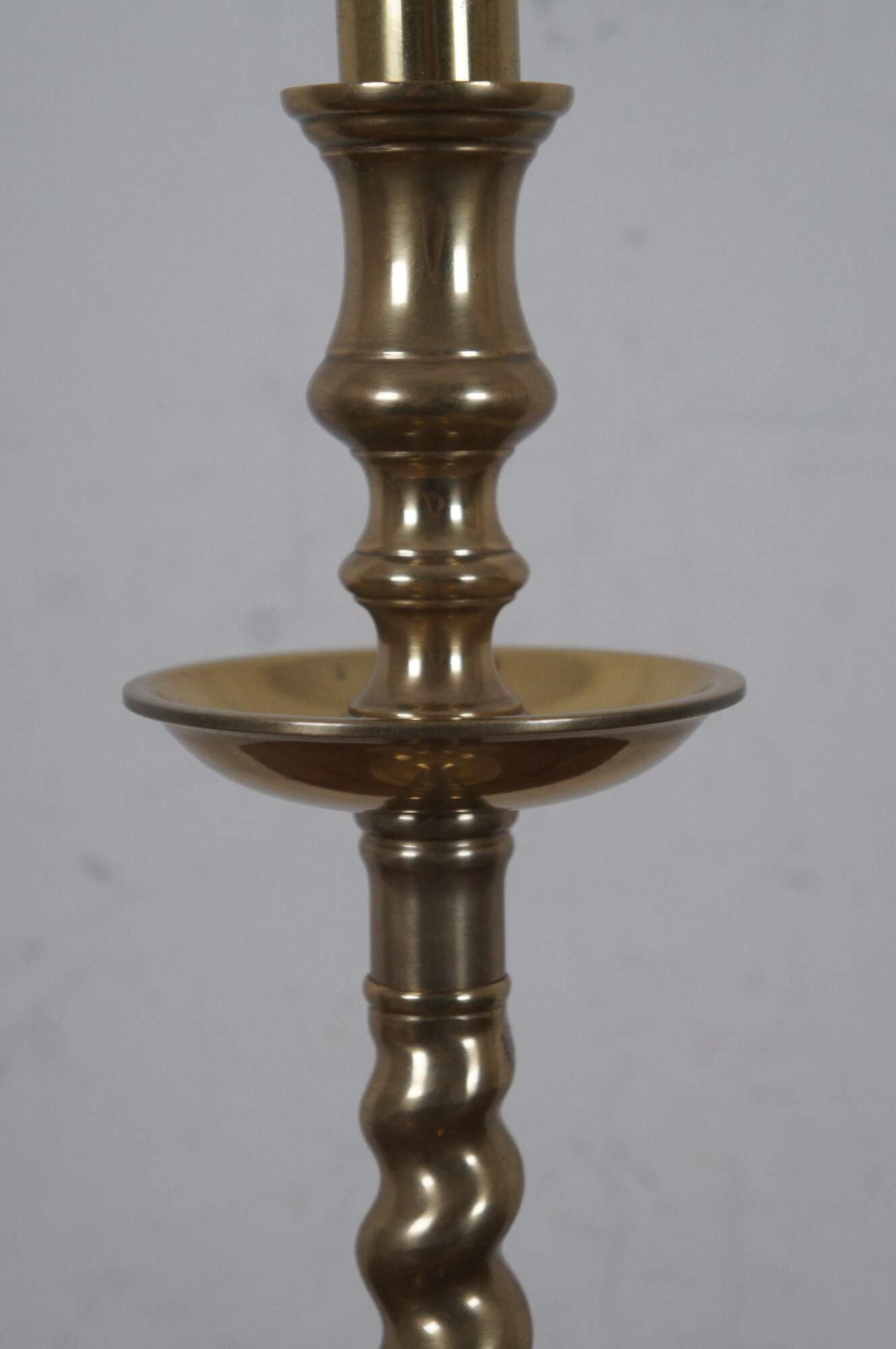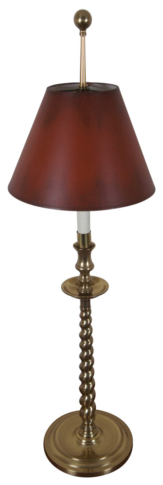 Vintage Frederick Cooper brass barley twist altar candlestick shaped table / buffet lamp with red shade.