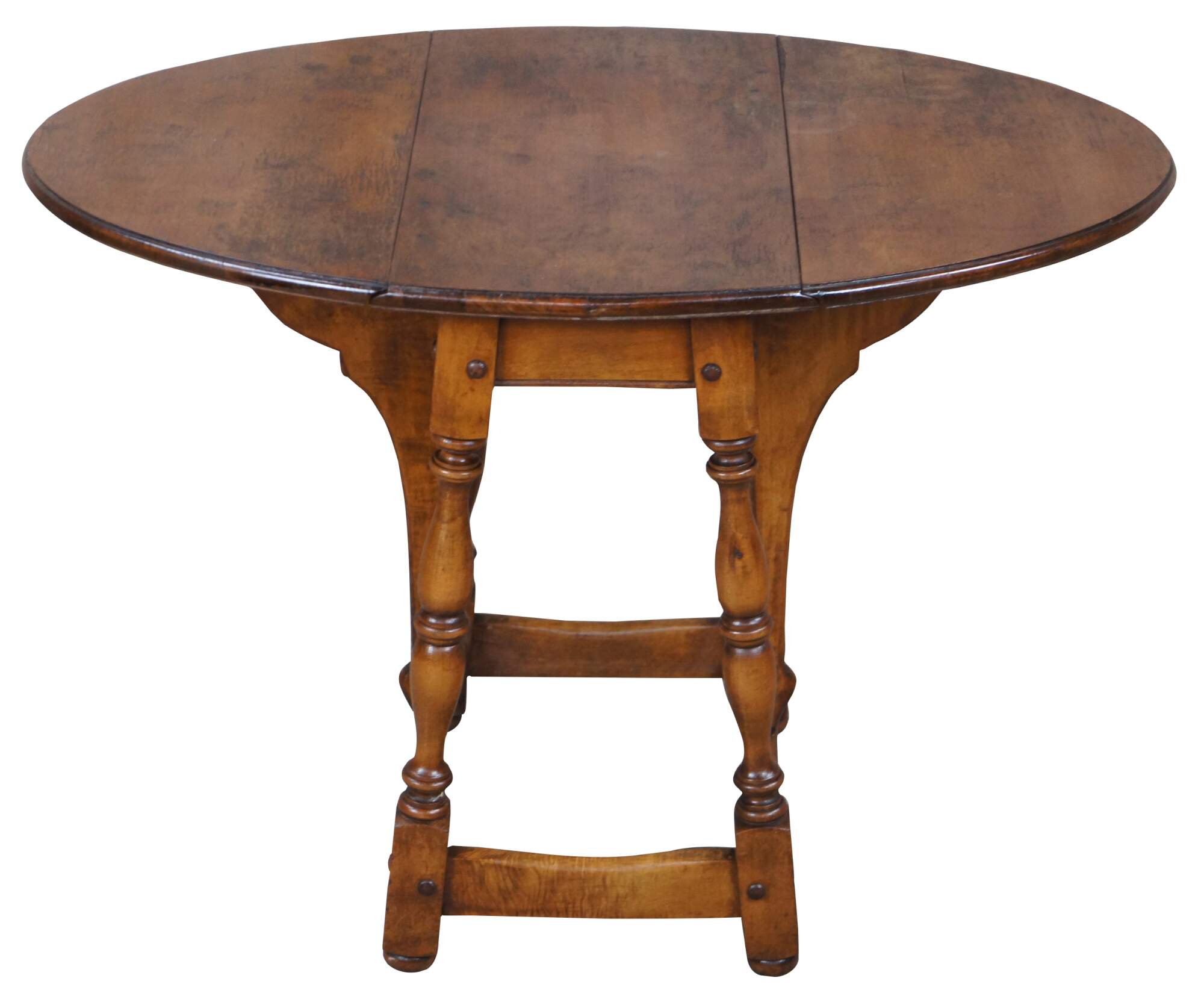 Turn of the 20th century maple drop leaf joint table by Cochran Chair Co. An oval form made from maple with turned legs and a jointed base with bun feet. Features wing shaped leaf supports