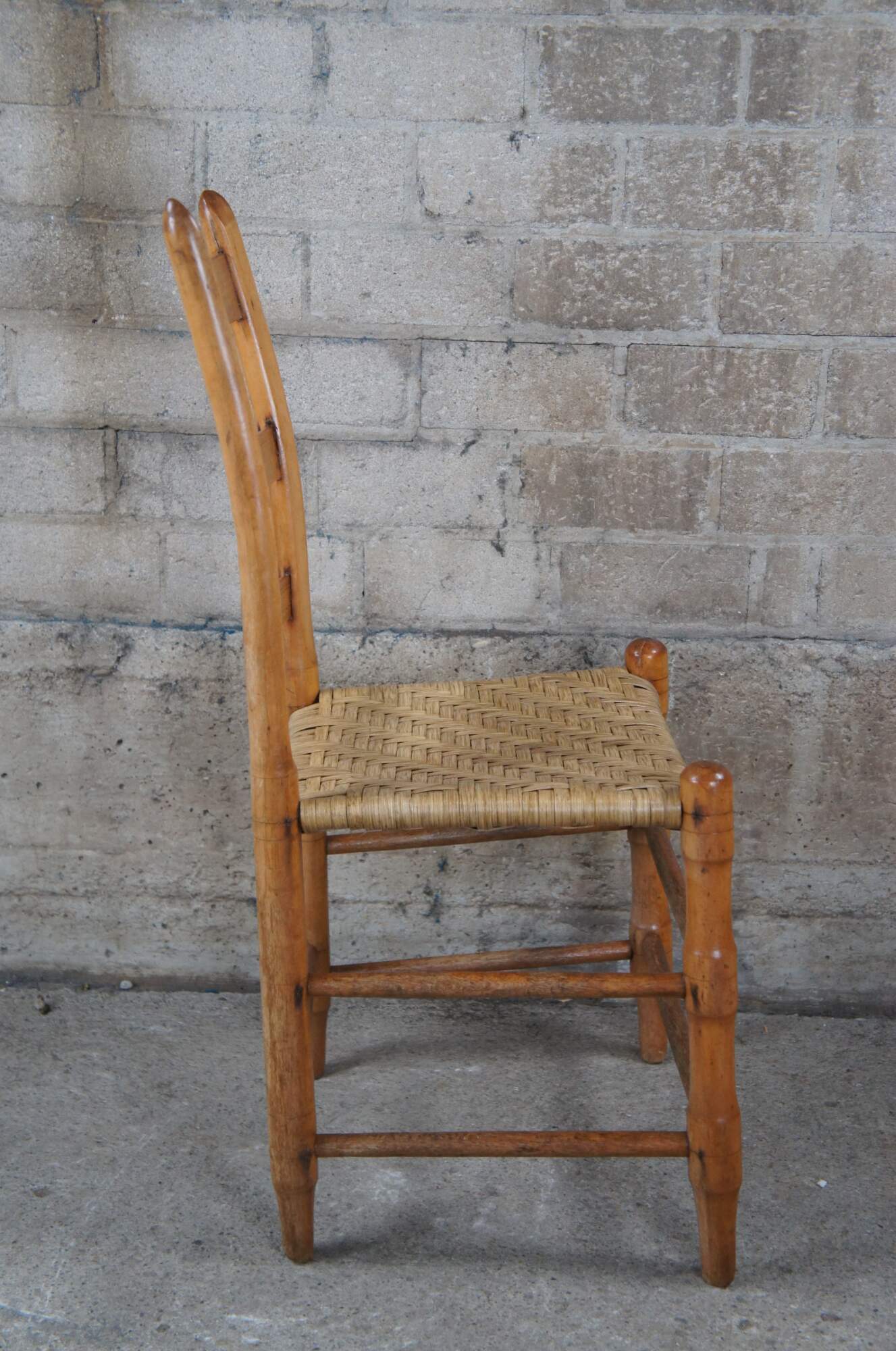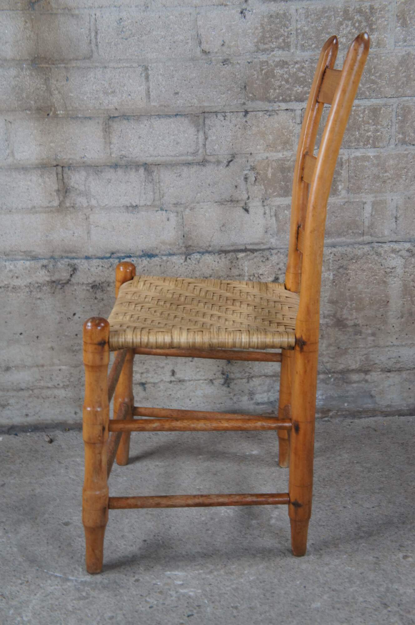 Vintage American Shaker maple and pine rush seat ladderback farmhouse dining chairs.