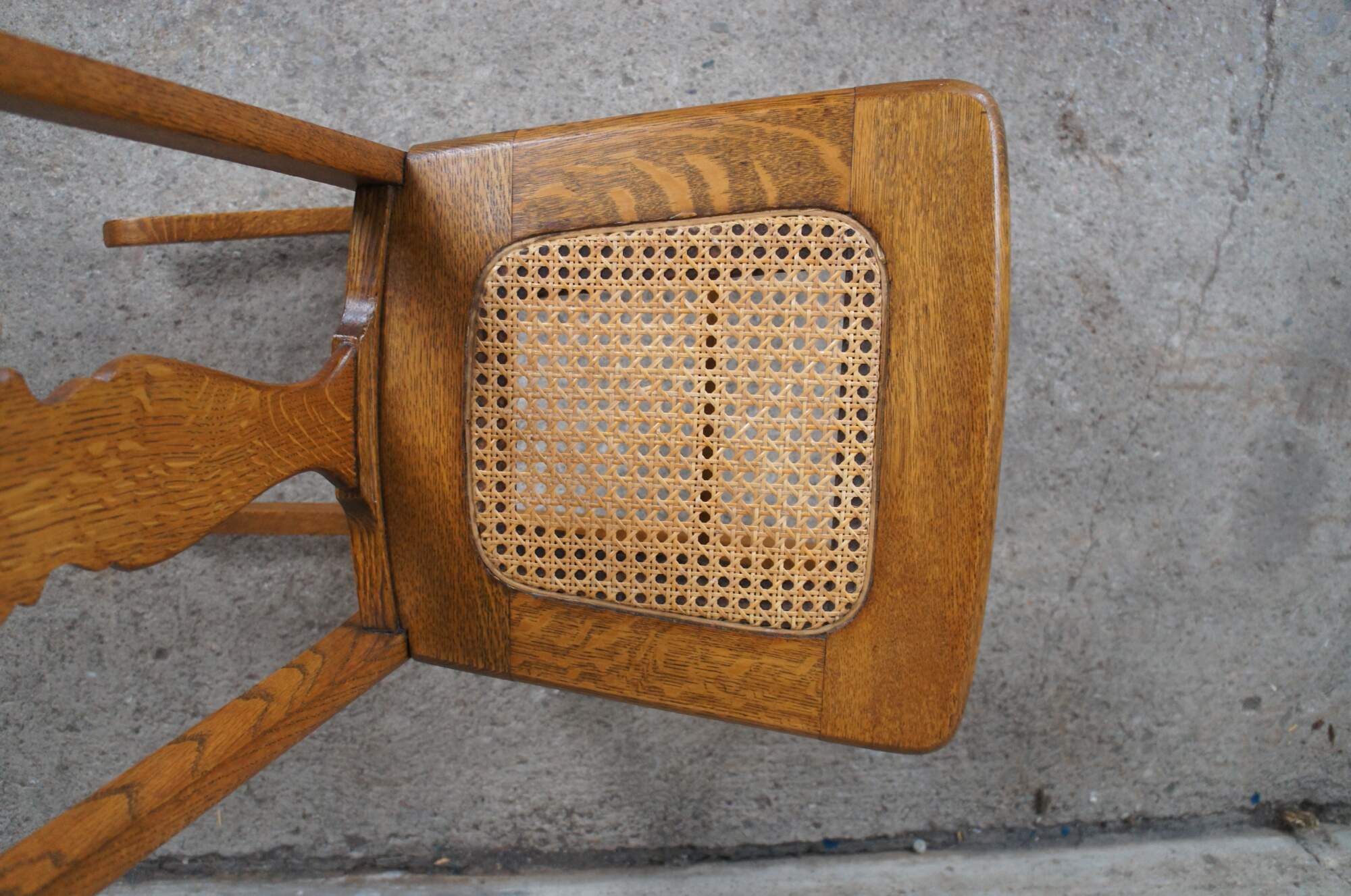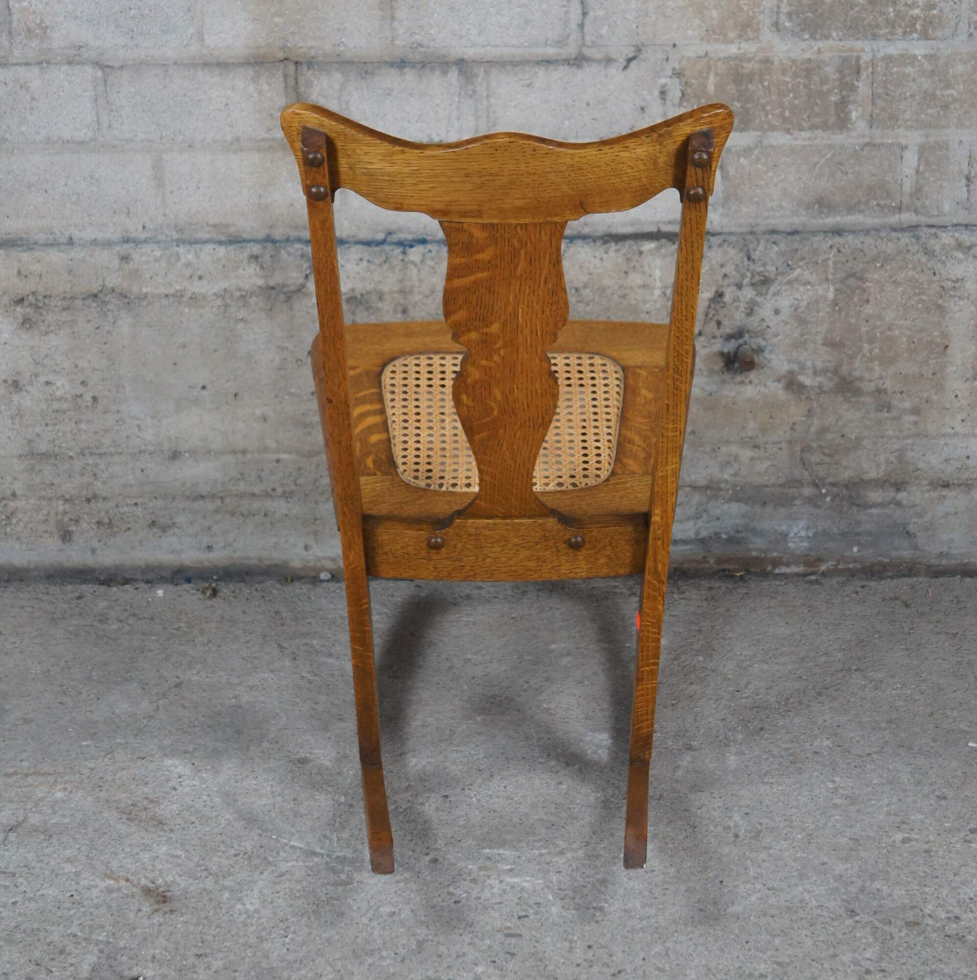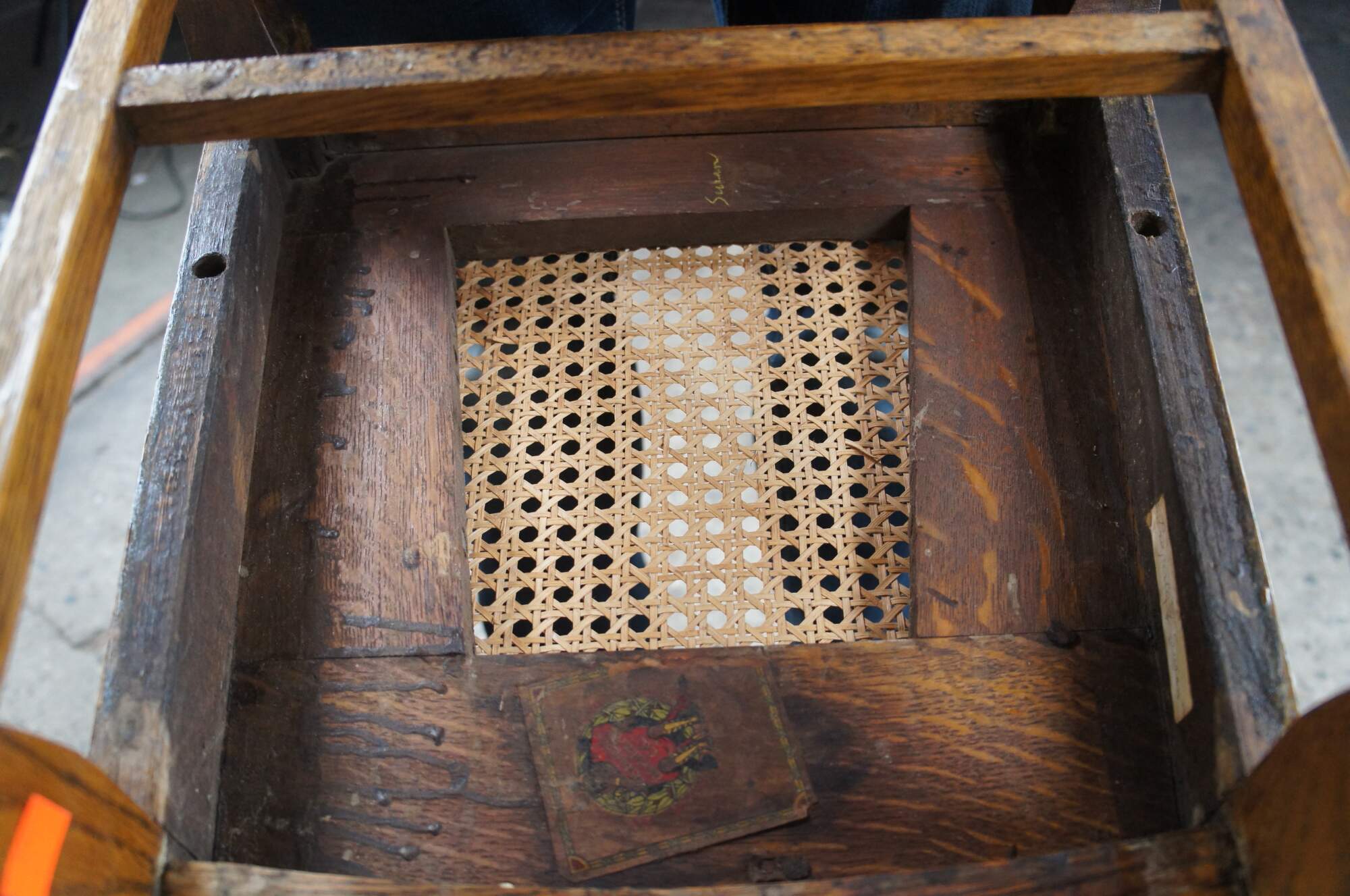 Antique Victorian Stomps Burkhardt rocking chair. Made of quartersawn oak featuring serpentine form with caned seat.