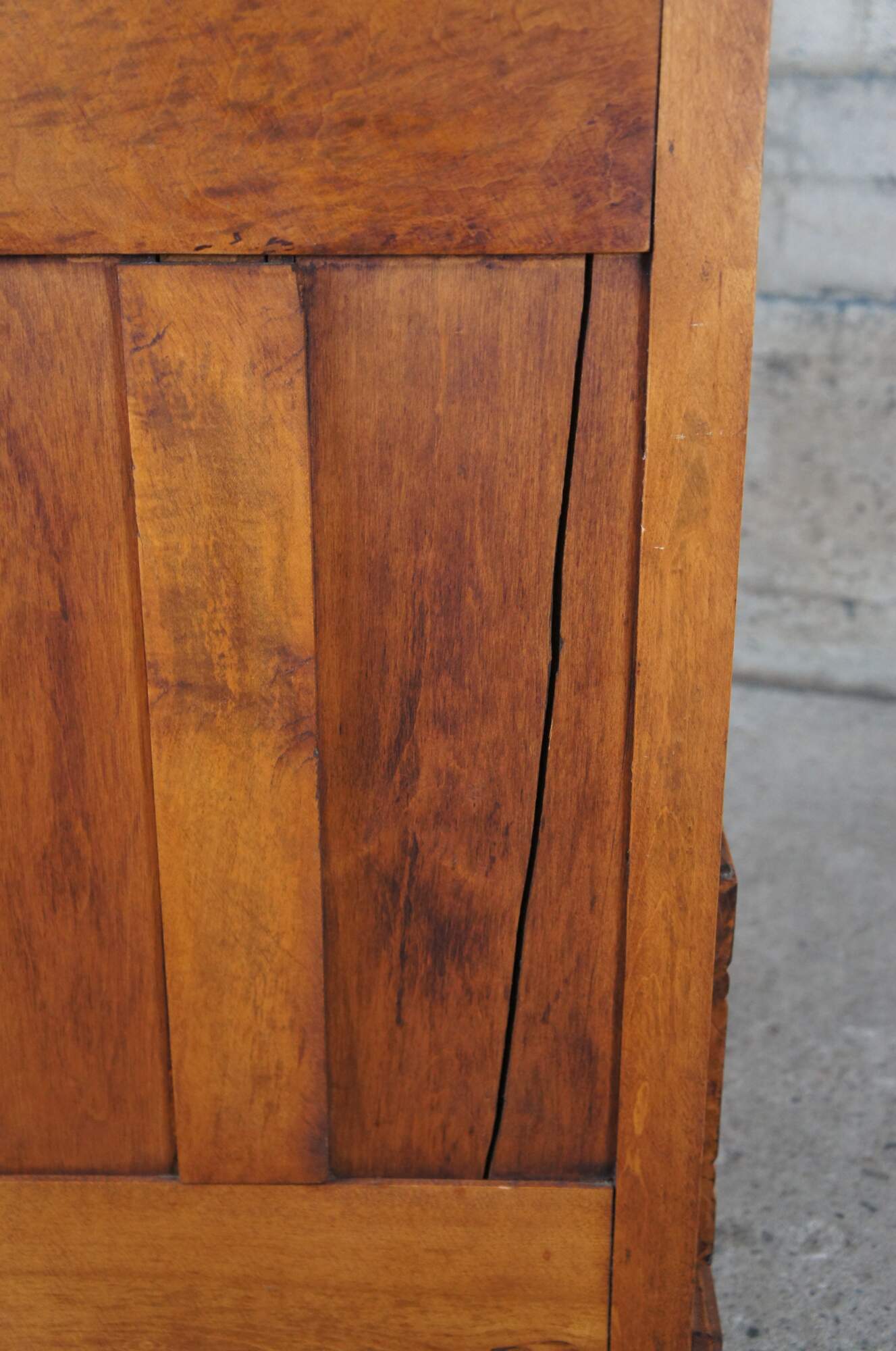 Good antique condition, wear and distressing commensurate with age and use, fading, missing backsplash, splitting / cracking, no castors.