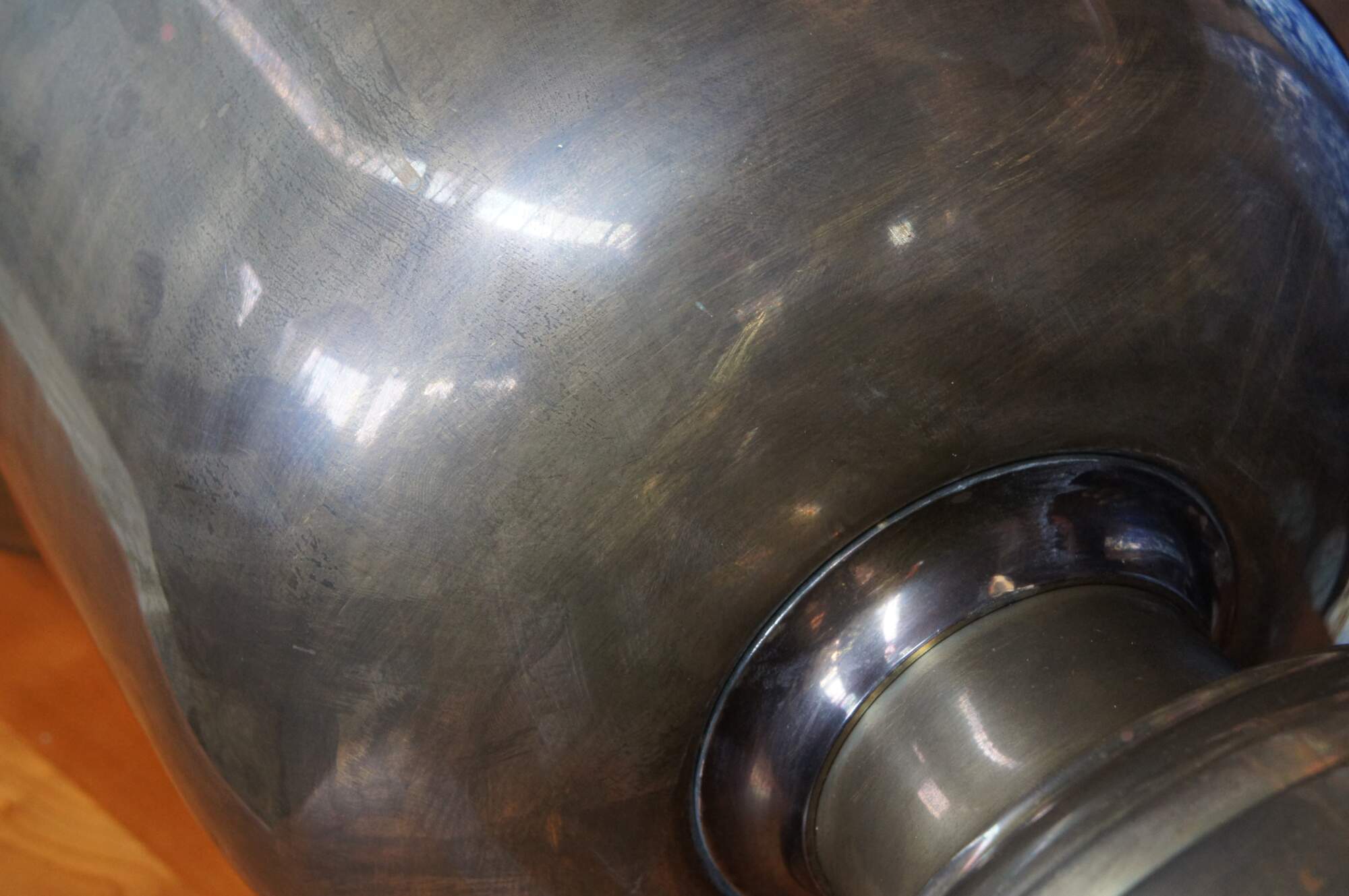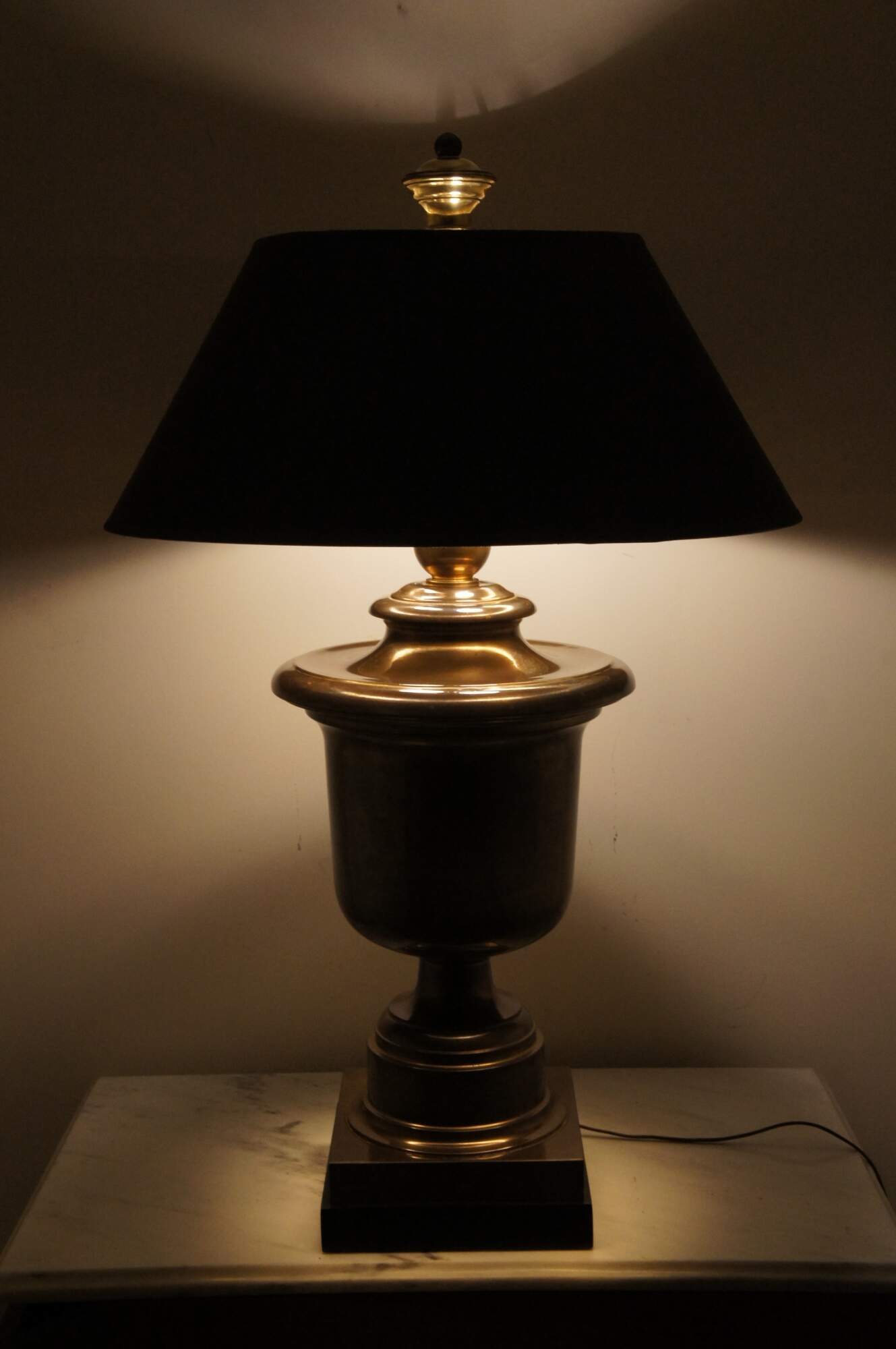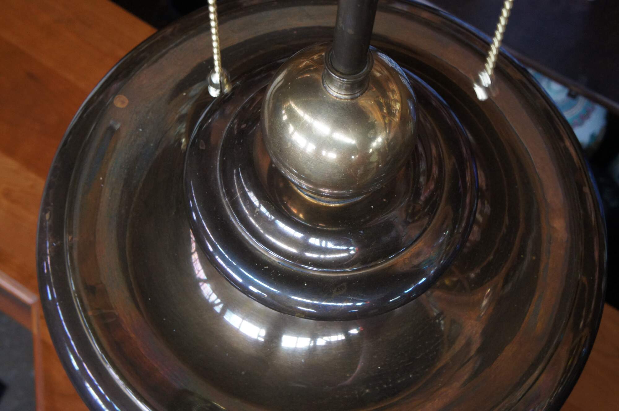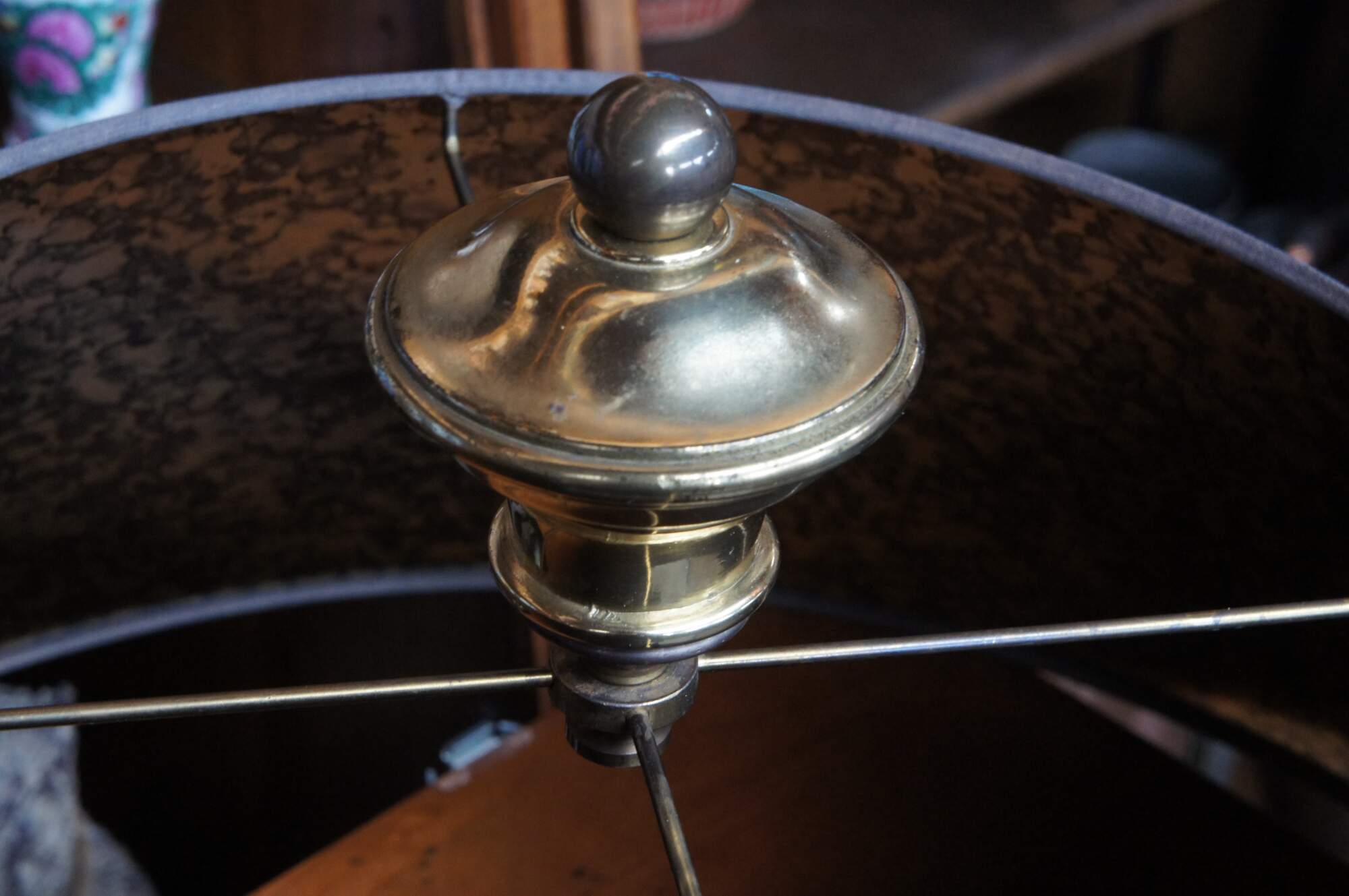 Good Overall - A few trim spots missing along the lower edge of shade. Tarnish - This lamp can be polished if you want it to glisten.