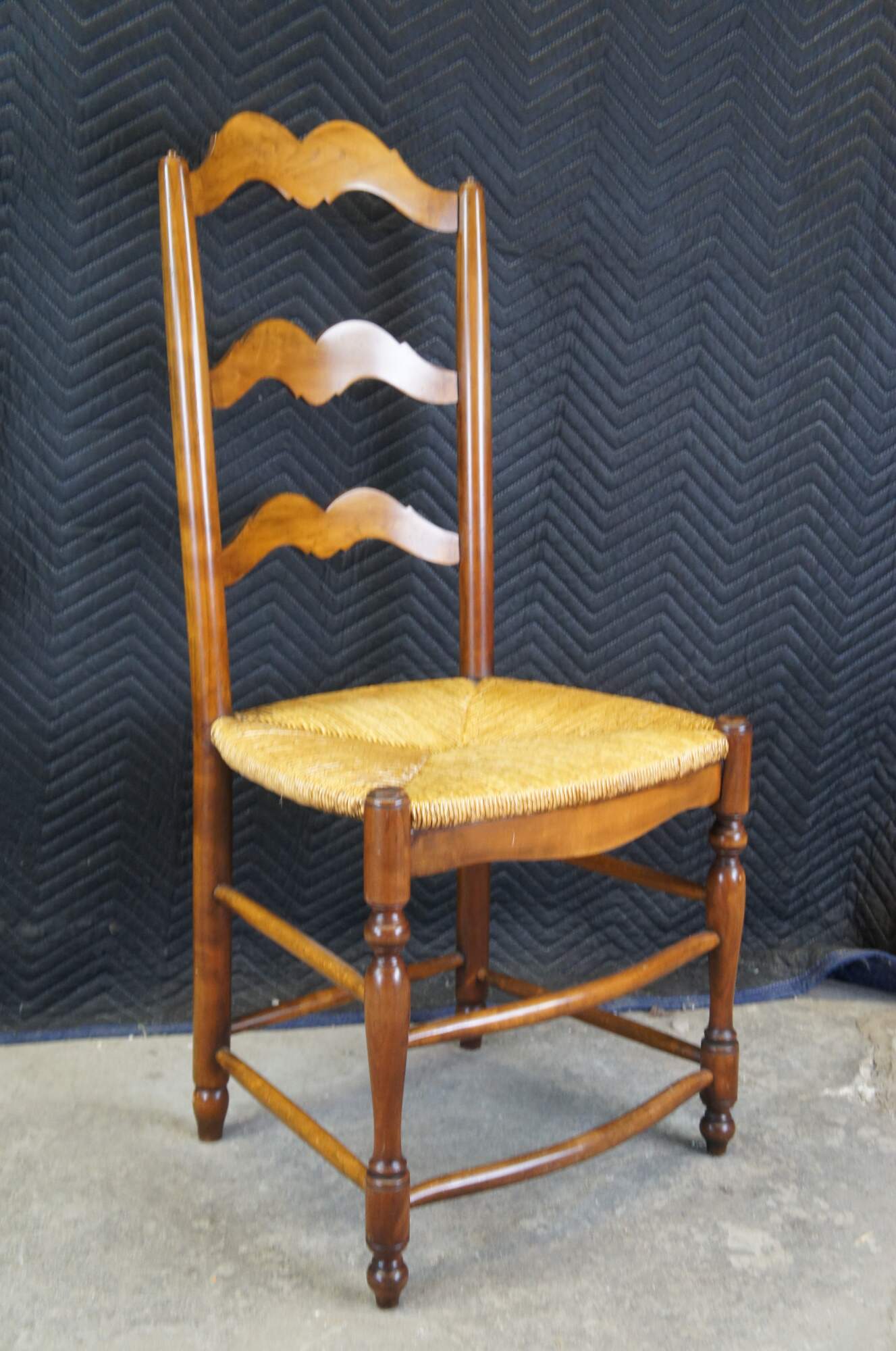 3 American ladderback dining side chairs, circa last quarter 20th century. Made from cherry with a serpentine ladderback, turned stiles and a rush seat