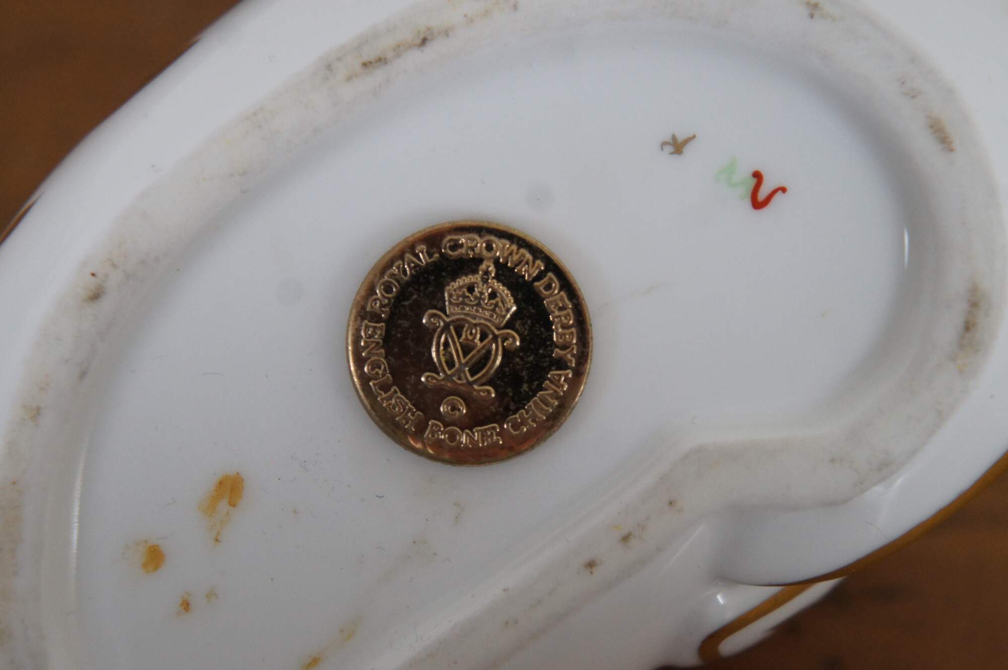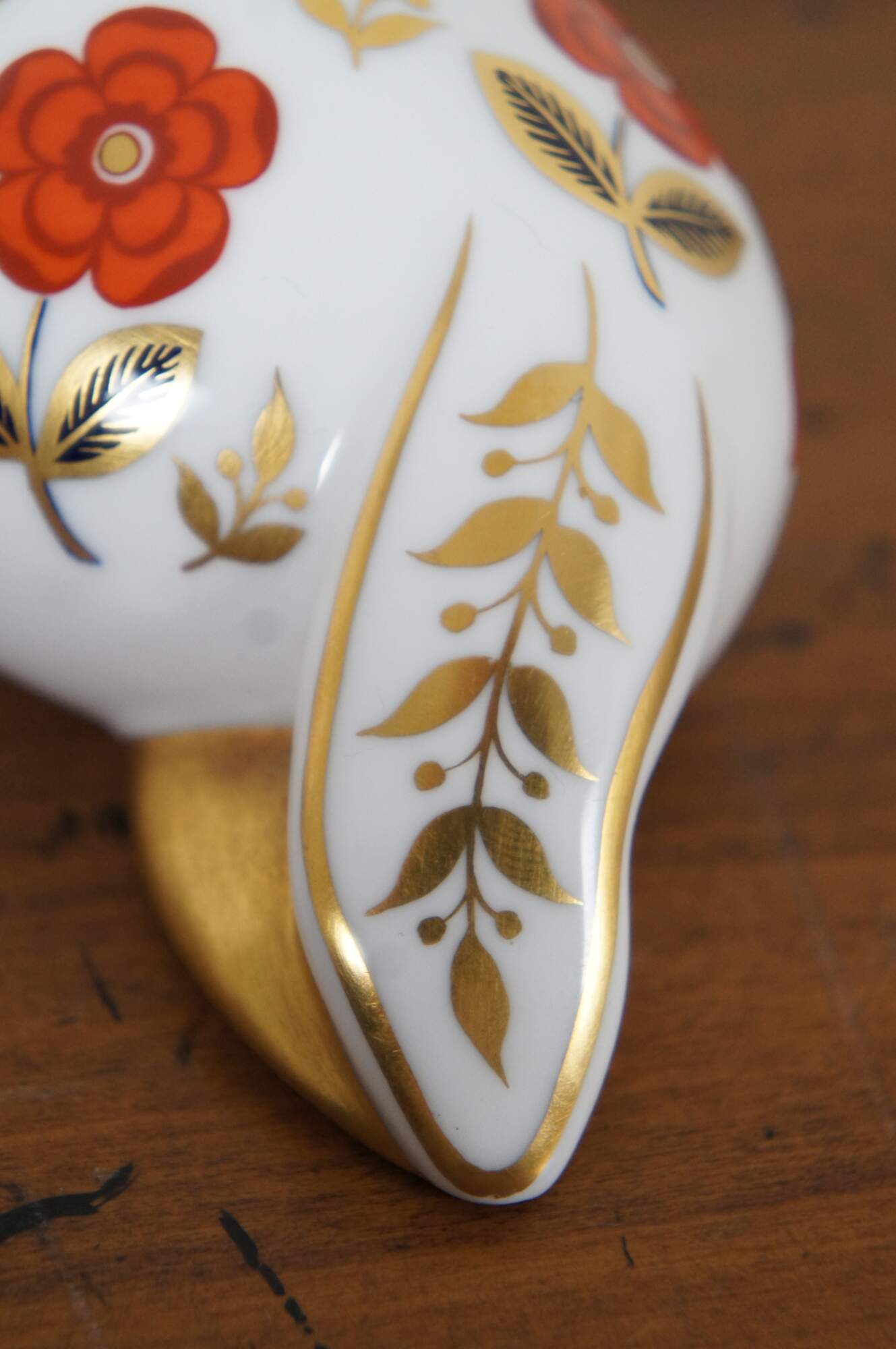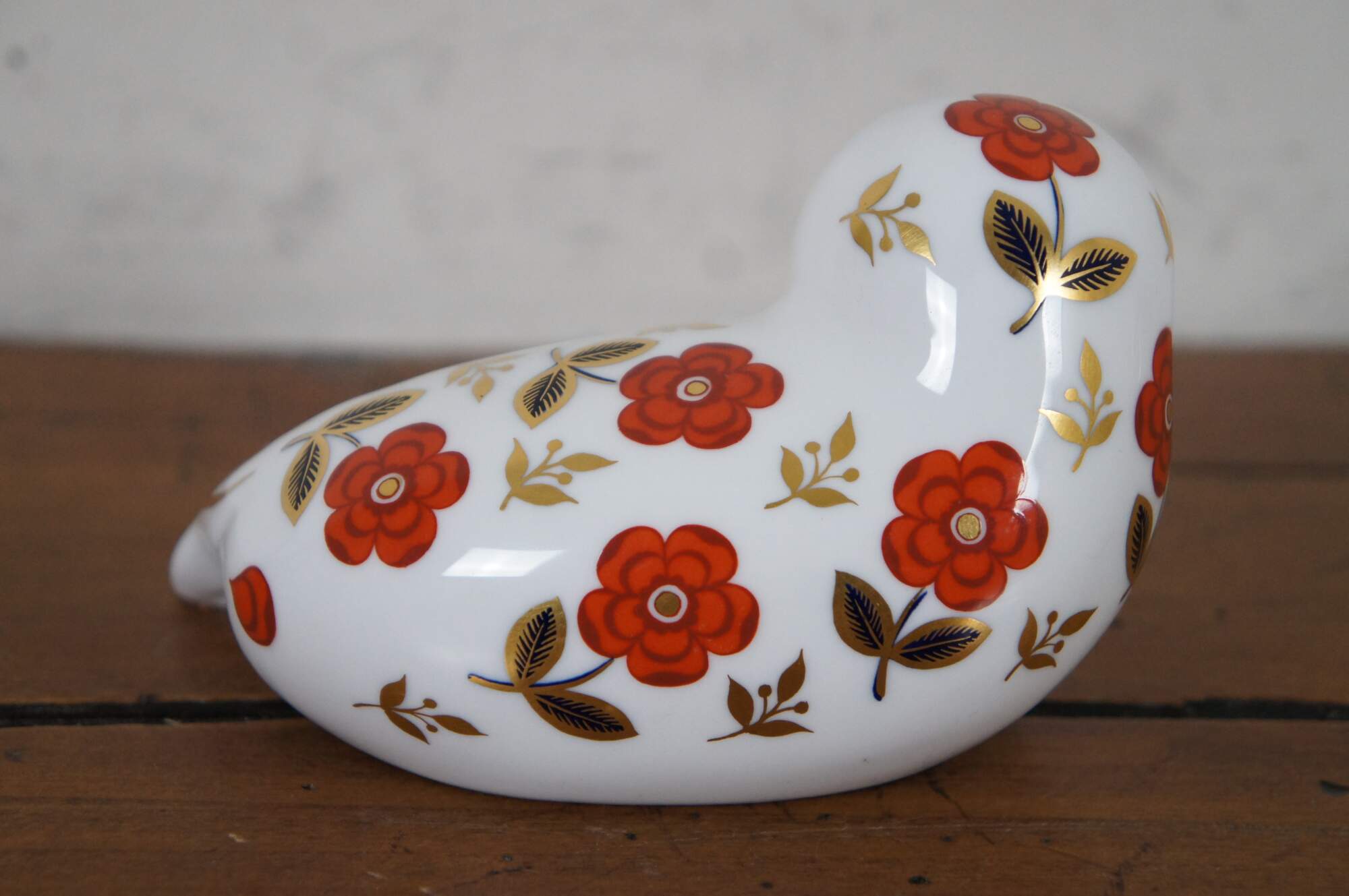 Vintage 1st edition Royal Crown Derby English Bone China porcelain seal figurine / paperweight, painting in rust, gold and cobalt with imari inspired designs, marked with gold stopper.
