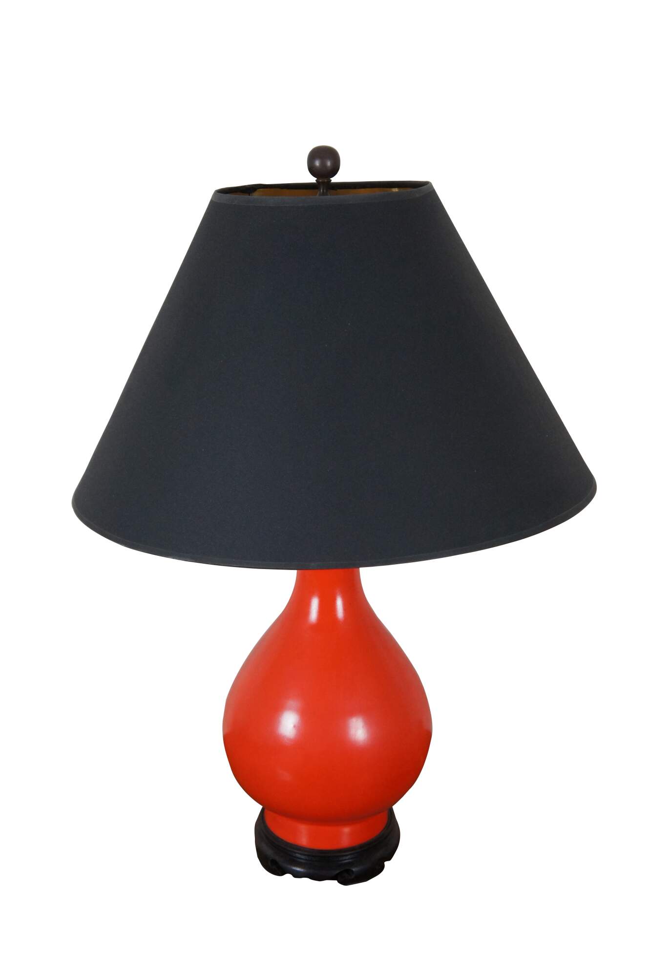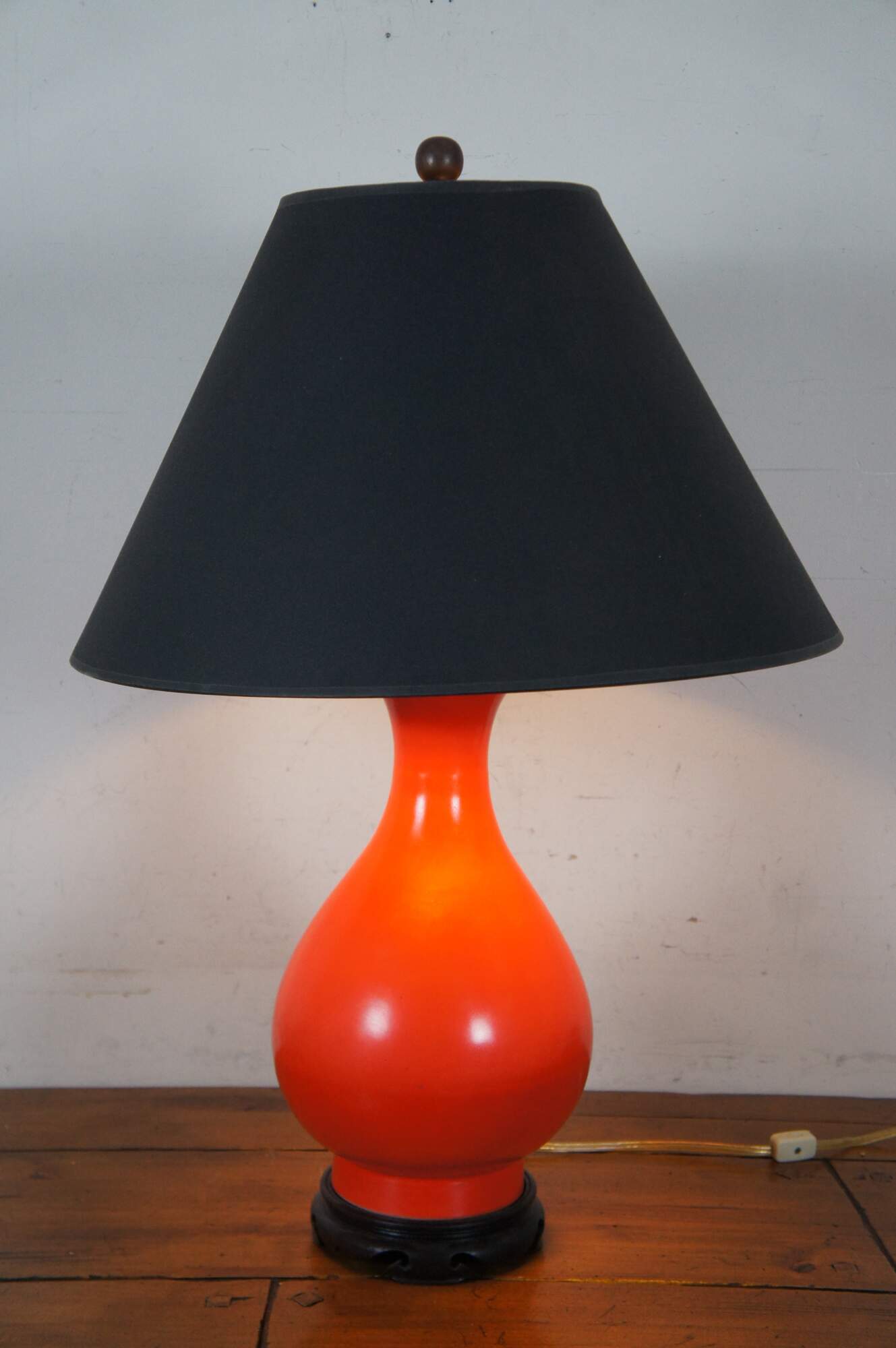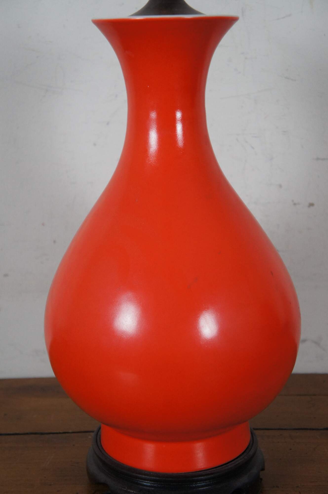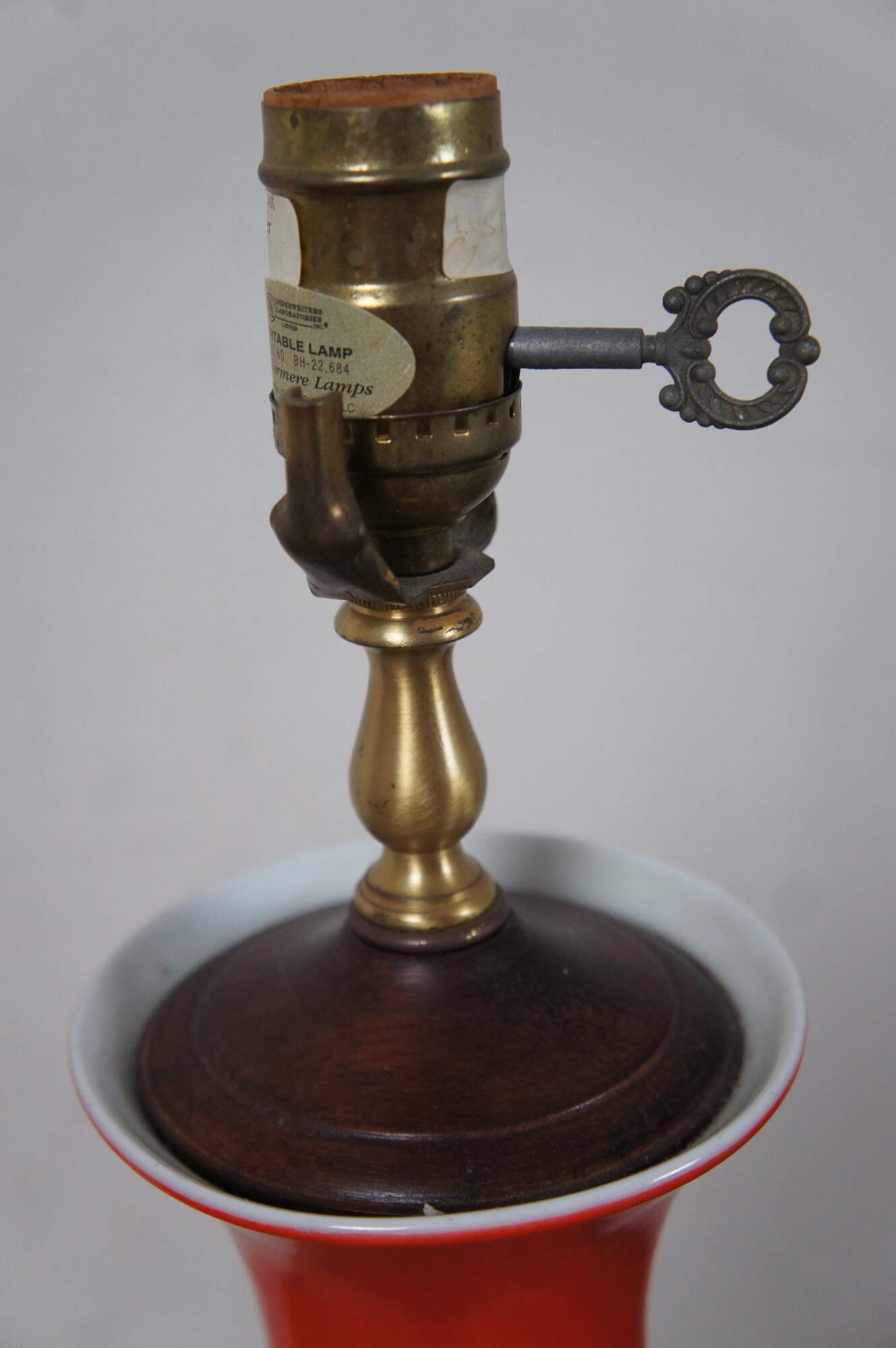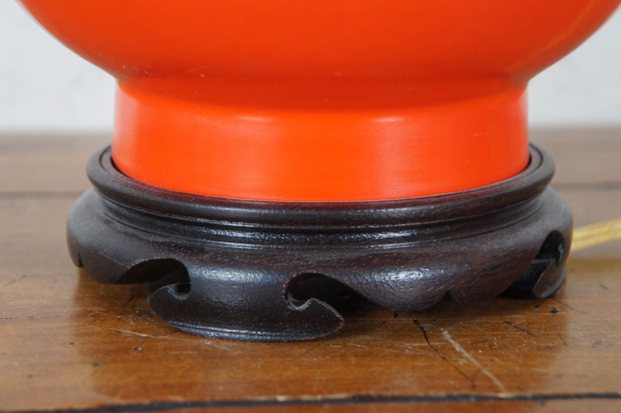 Vintage Windermere Lotus Arts Chinoiserie burnt orange ceramic mantel urn / vase table lamp.