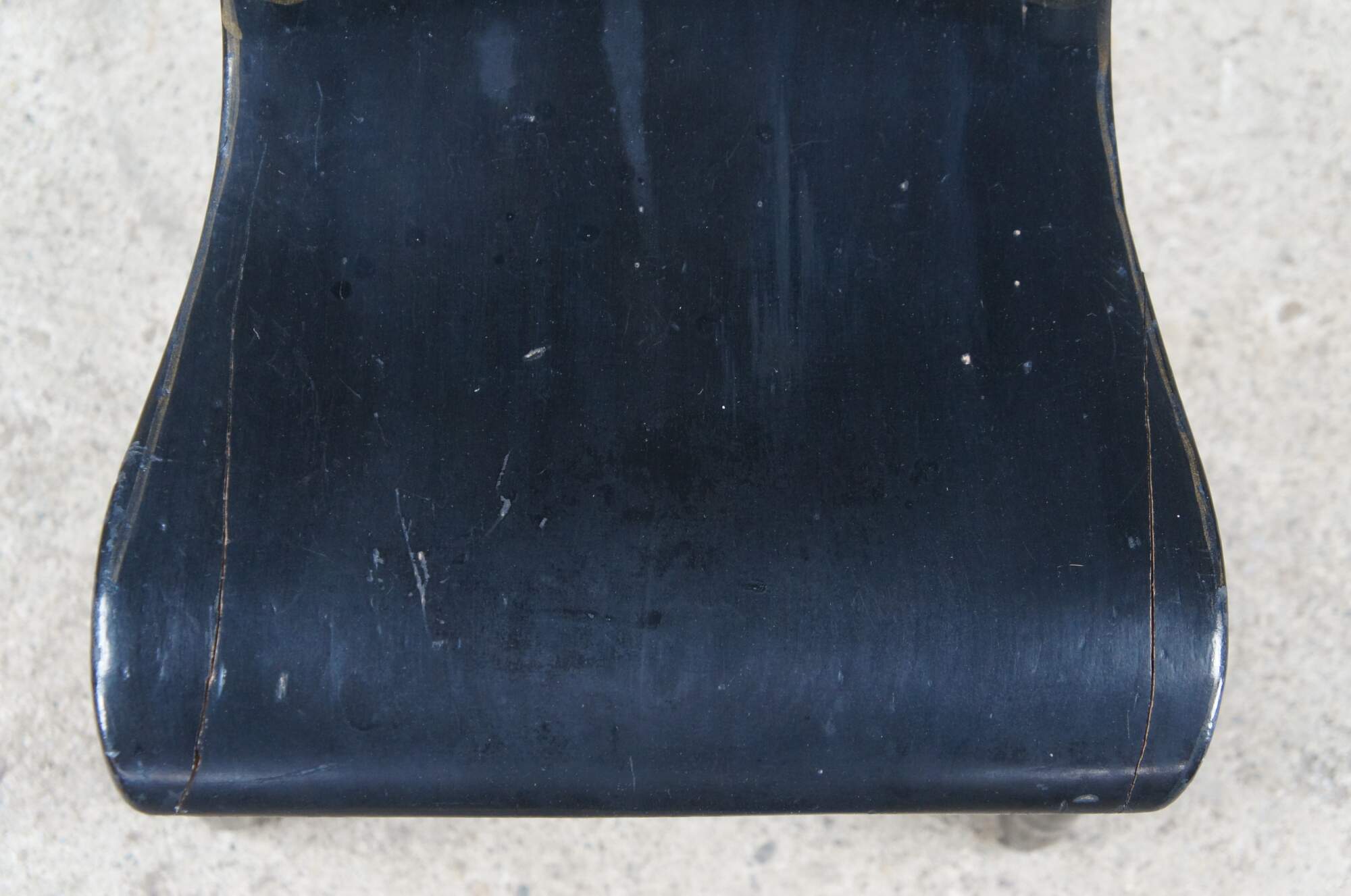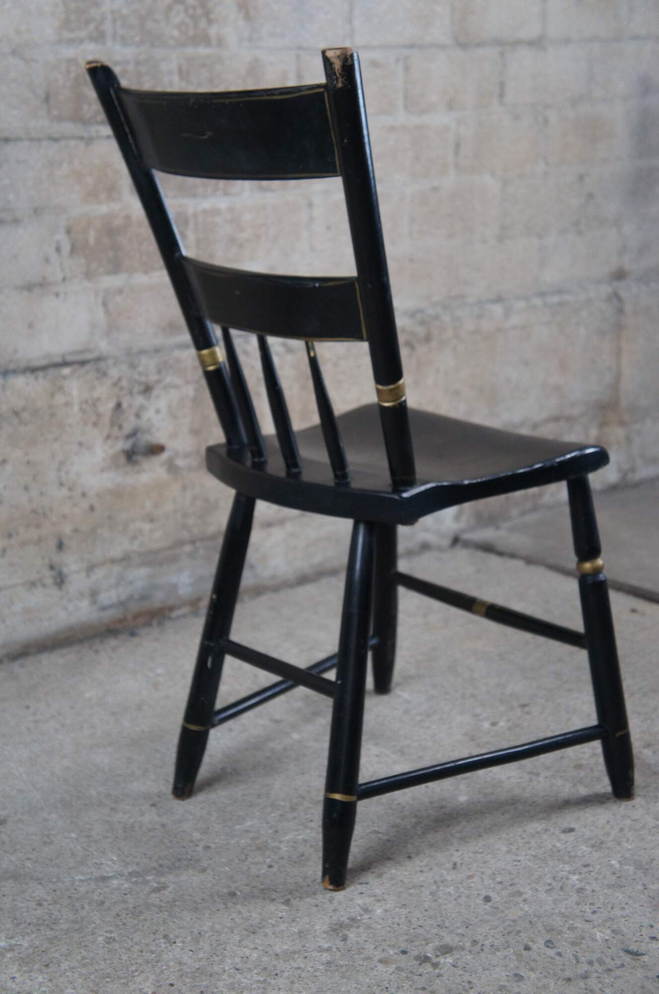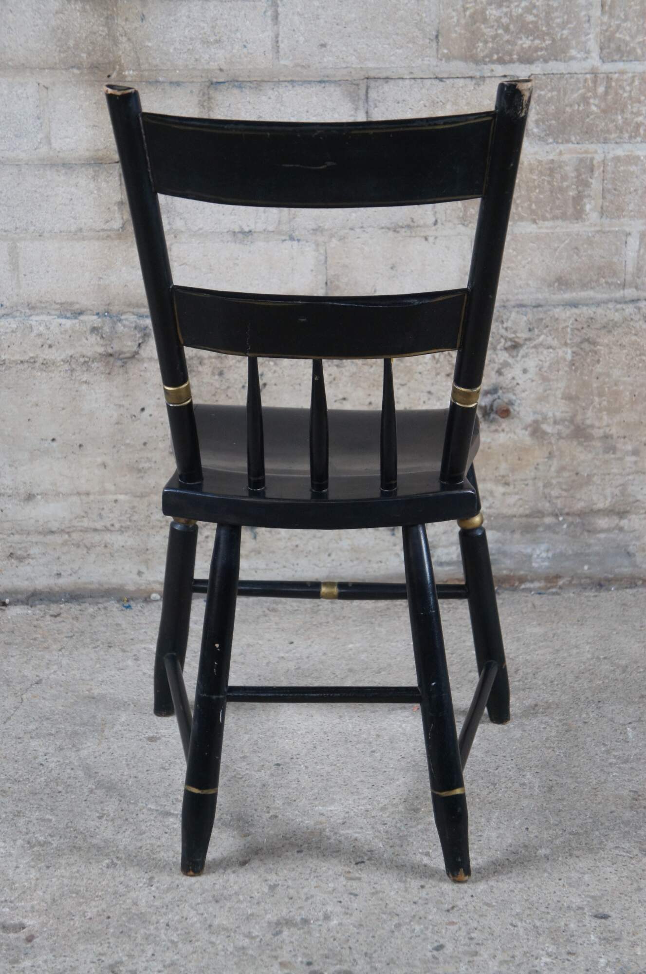 Antique primitive Hitchcock style plank seat Windsor chair featuring black stenciled fruit design with gold accents.