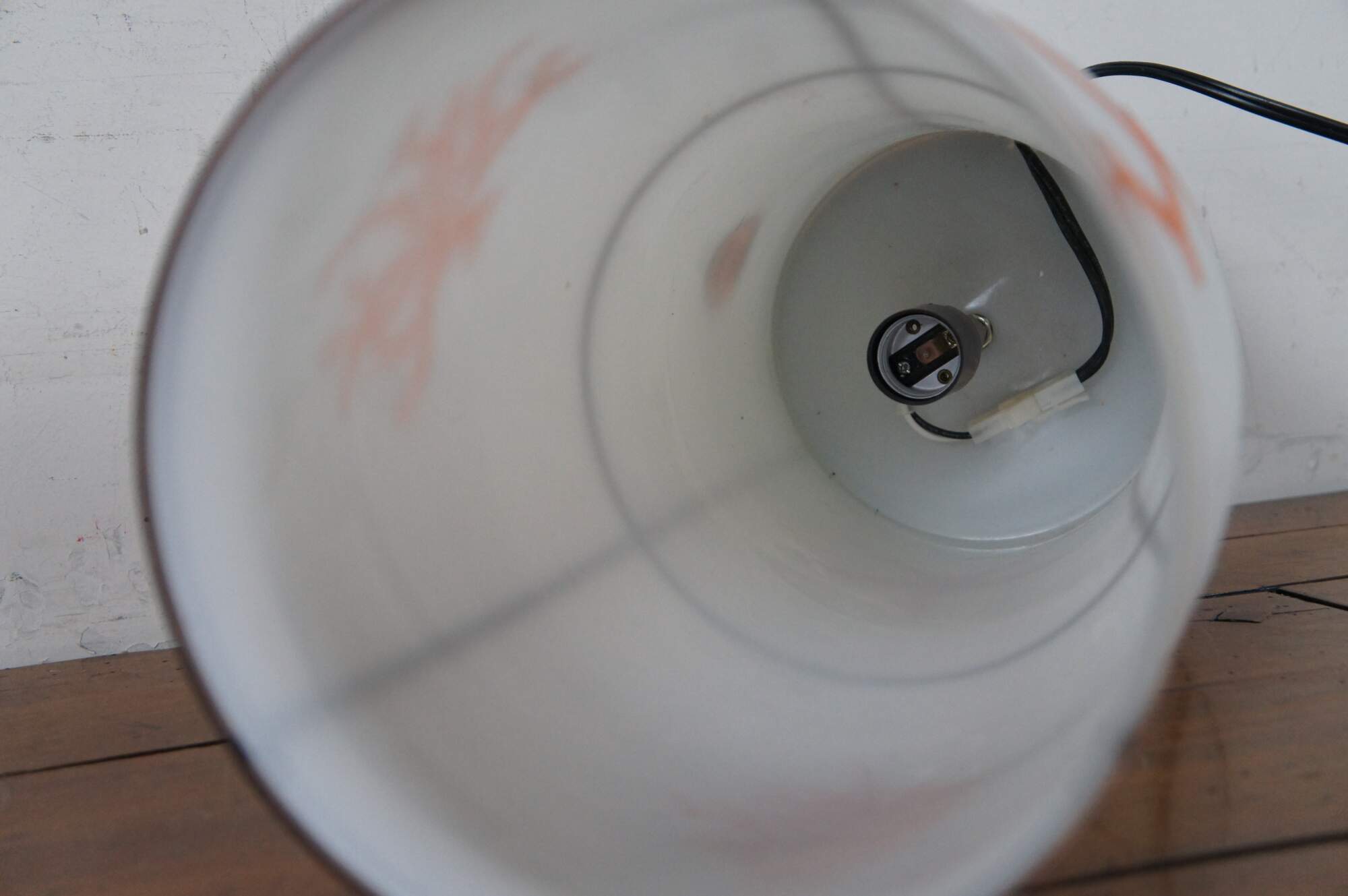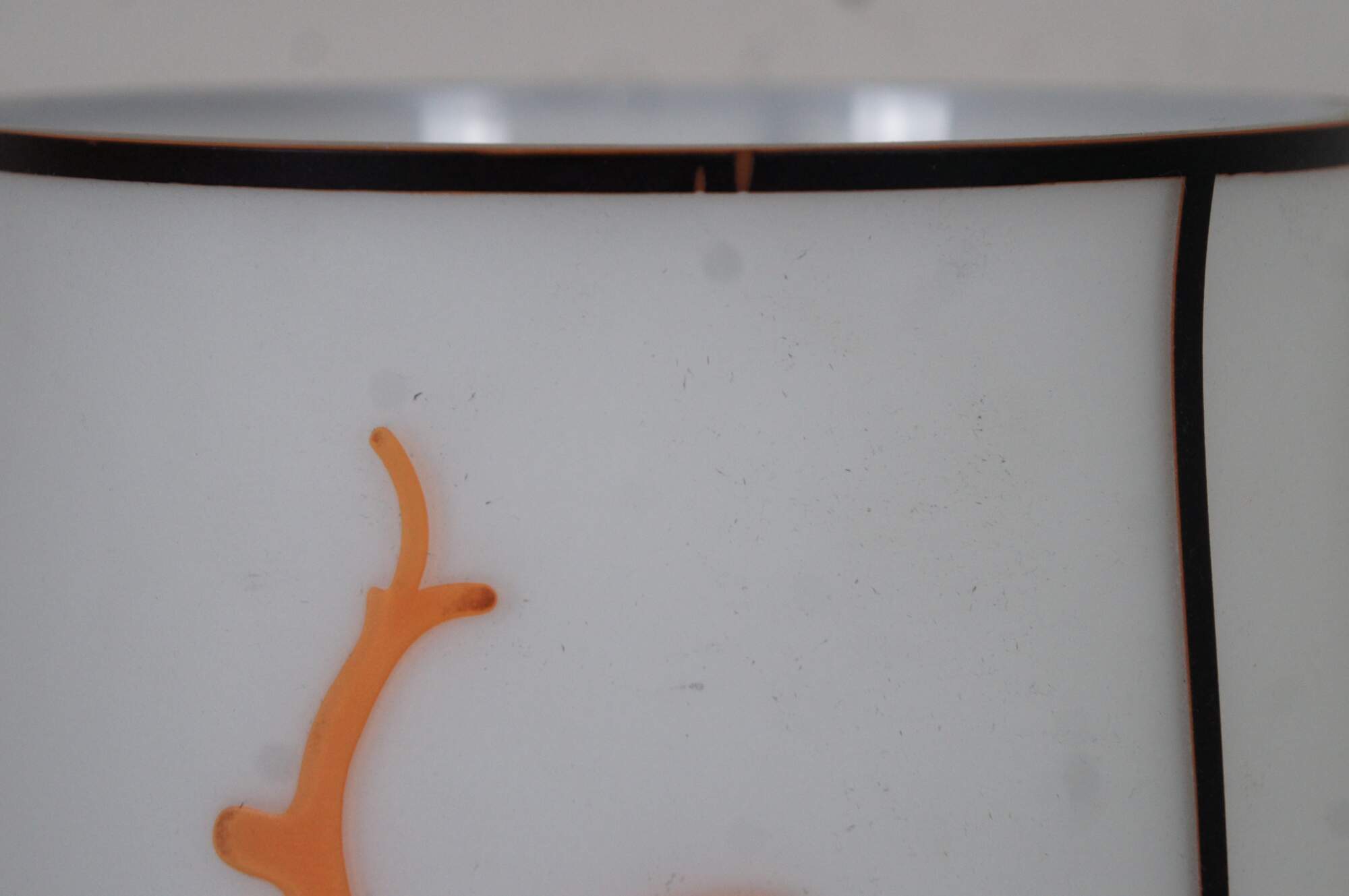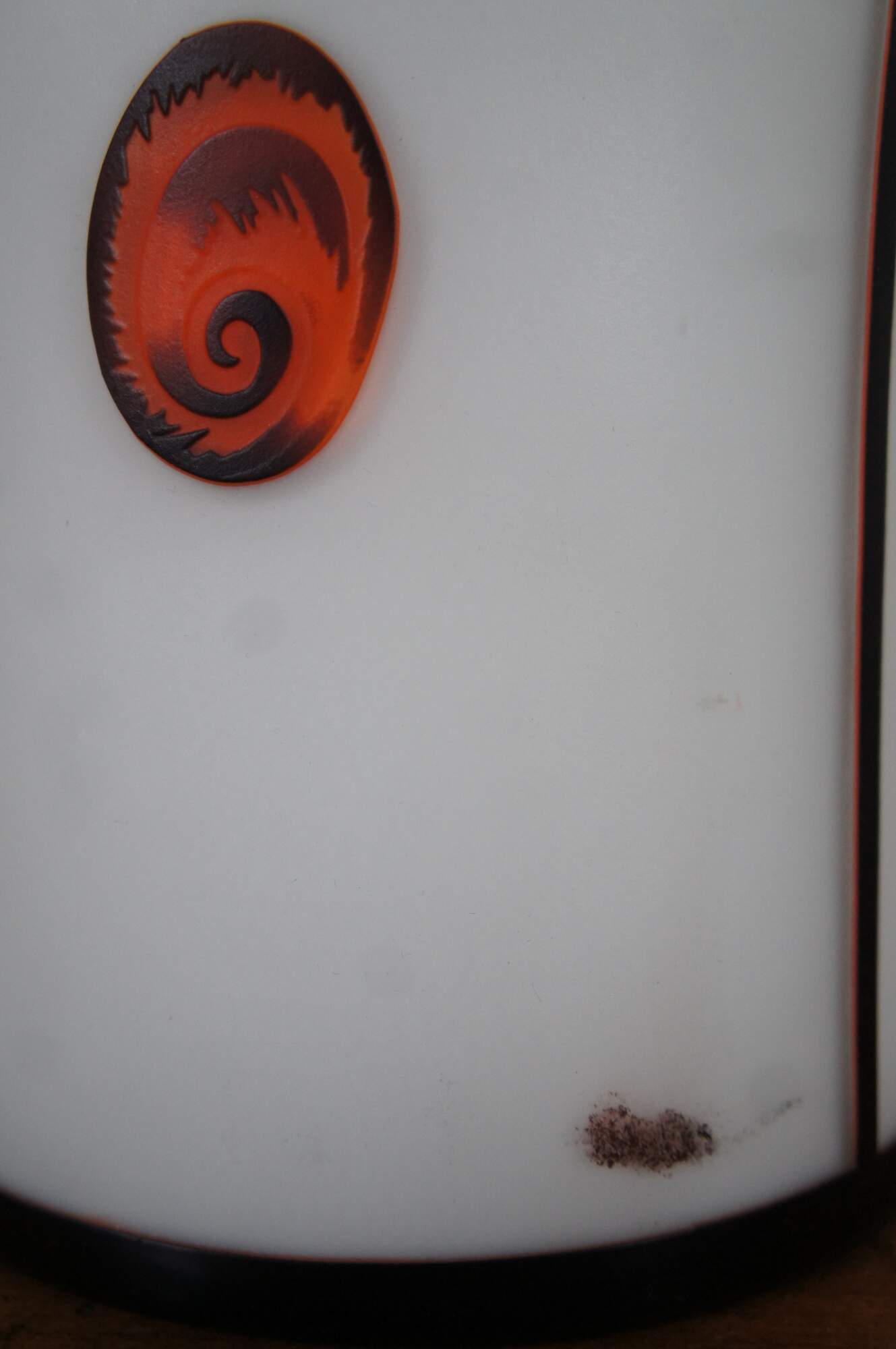 Tozai Home white frosted glass tapered canister shaped table lamp featuring segmented sections blazoned with orange sea creatures and coral.