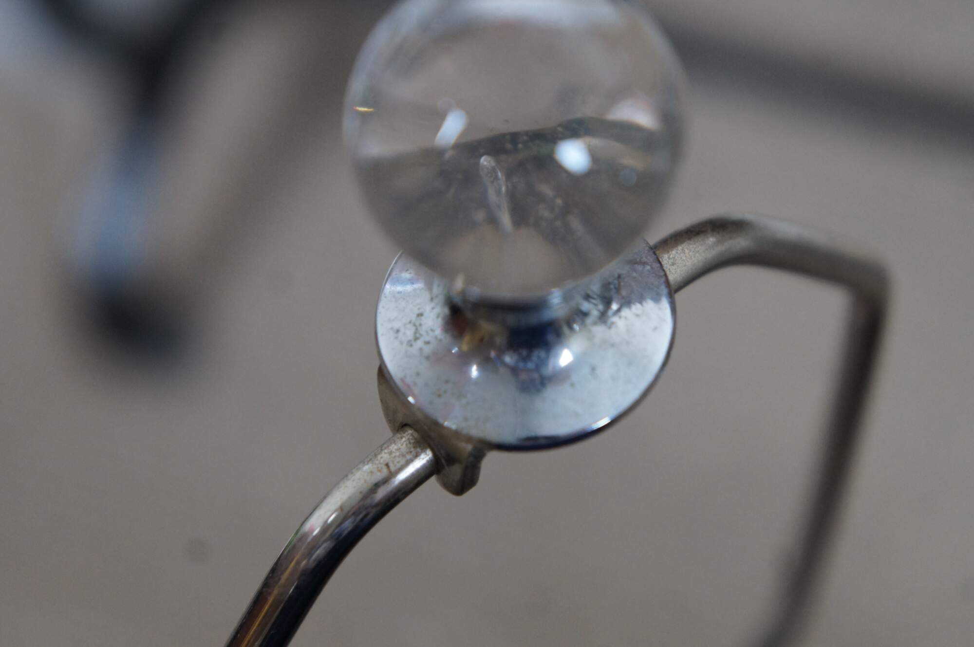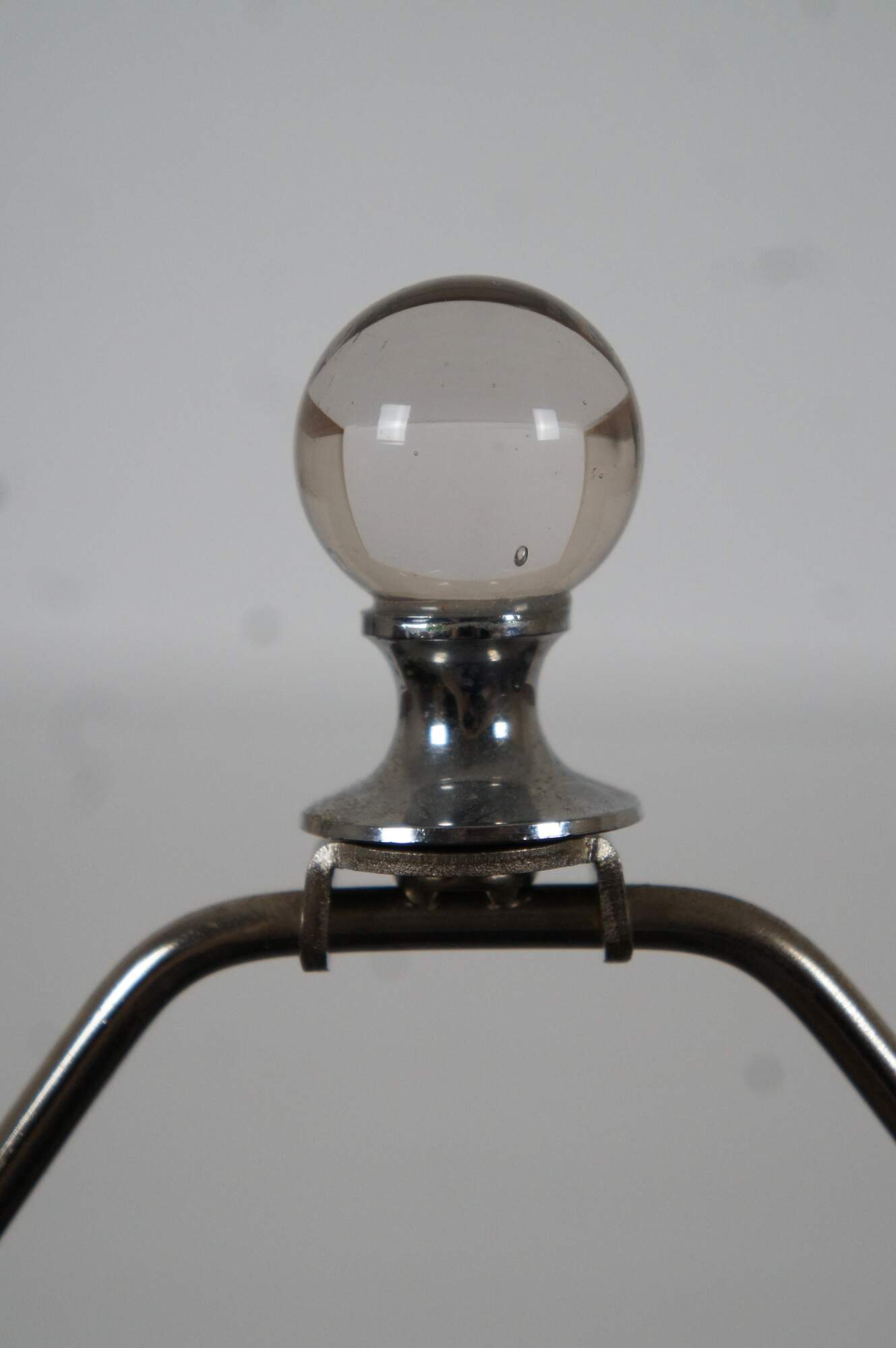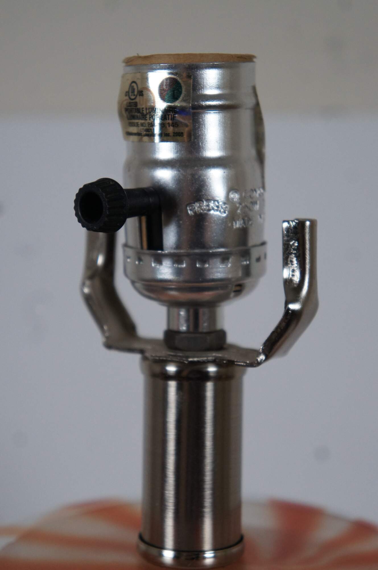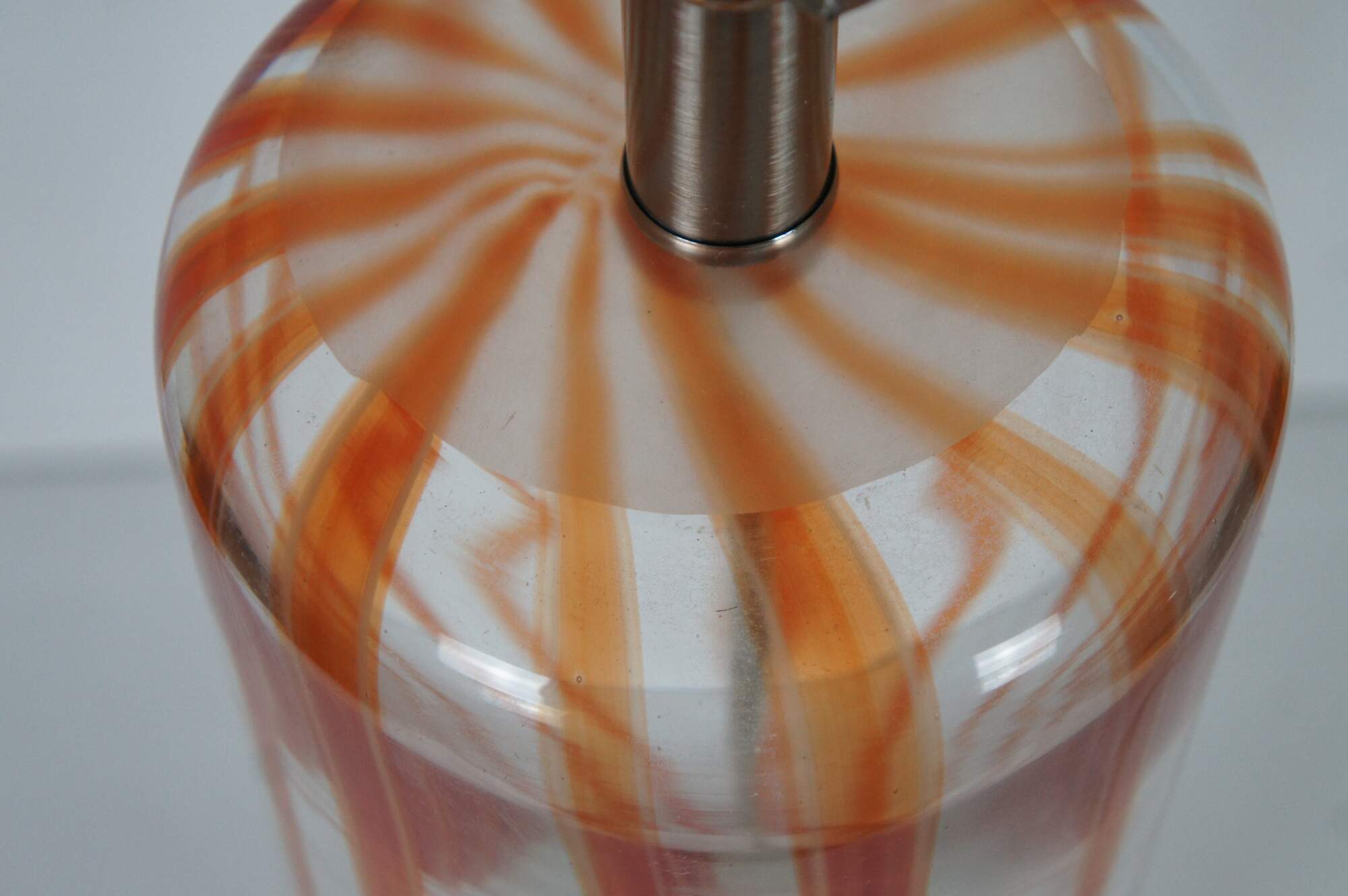 Vintage clear and orange candy stripe art glass hollow base cylindrical table lamp, with clear ball finial.