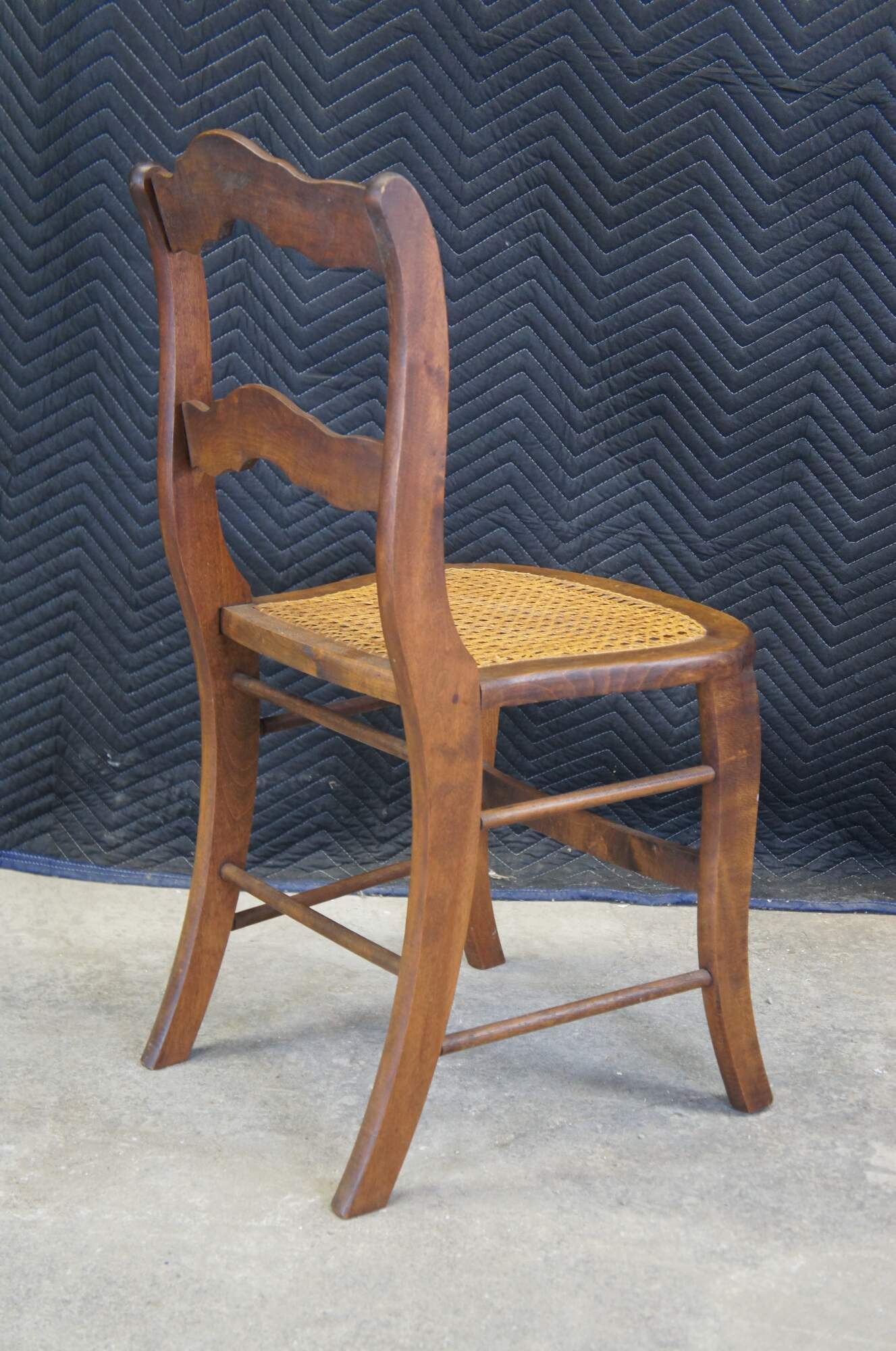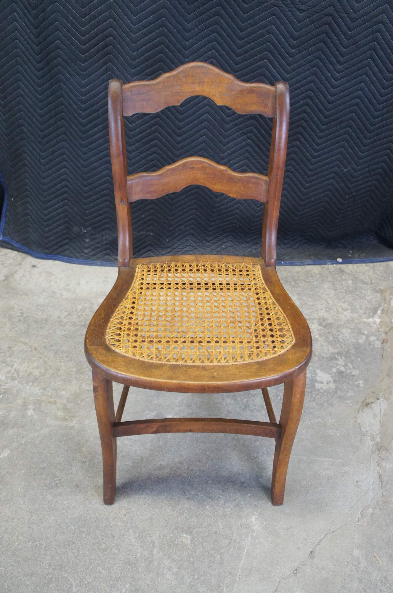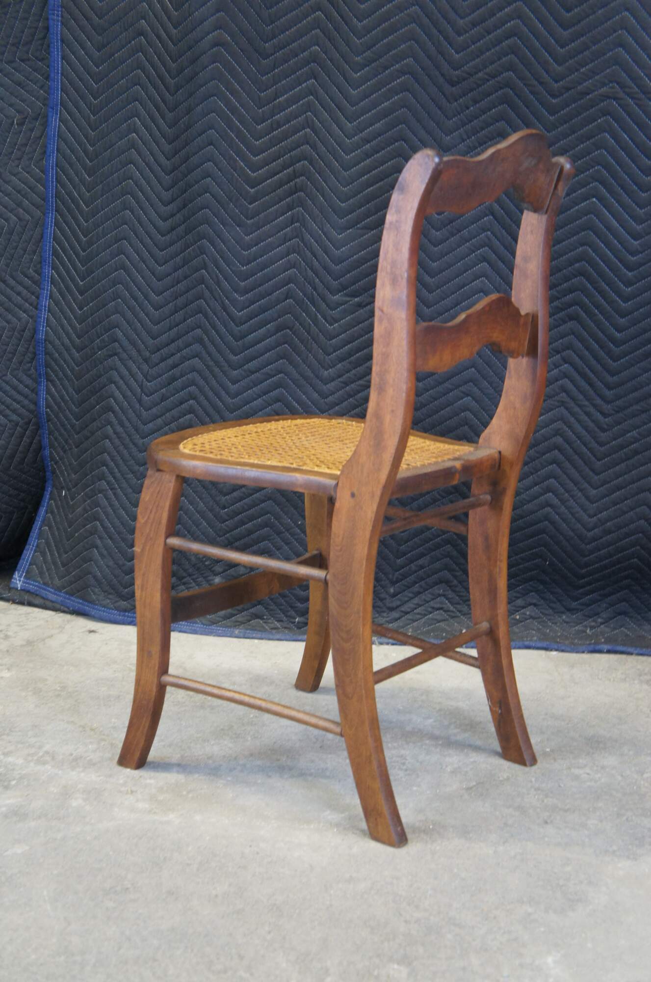 Set of 4 late Victorian side chairs. Made from oak with a contoured ladderback and cane seat.