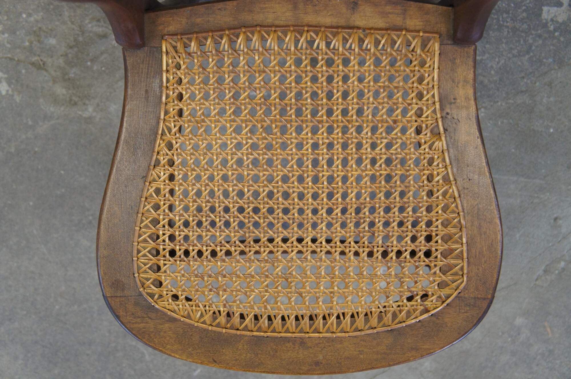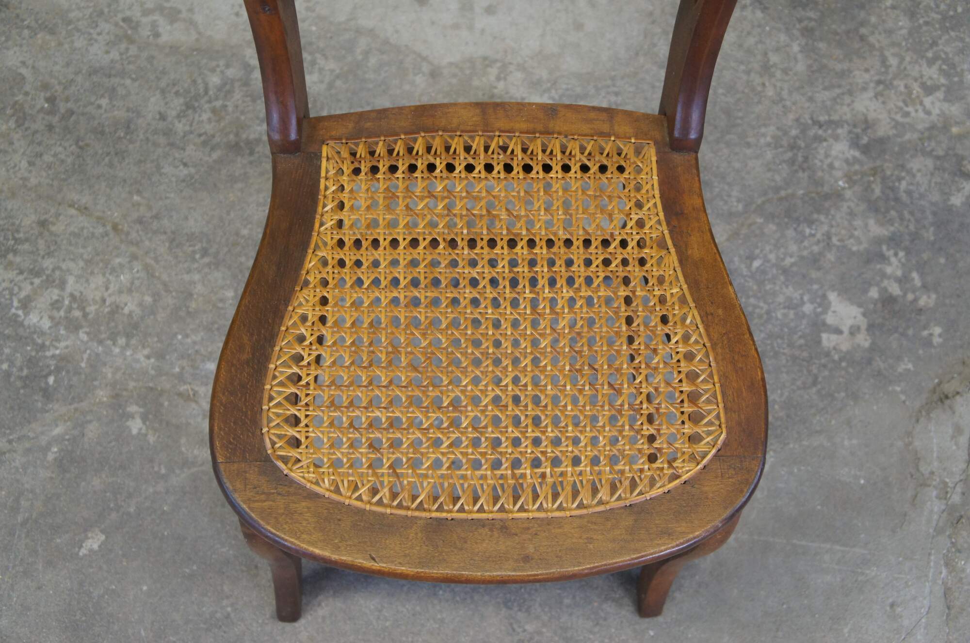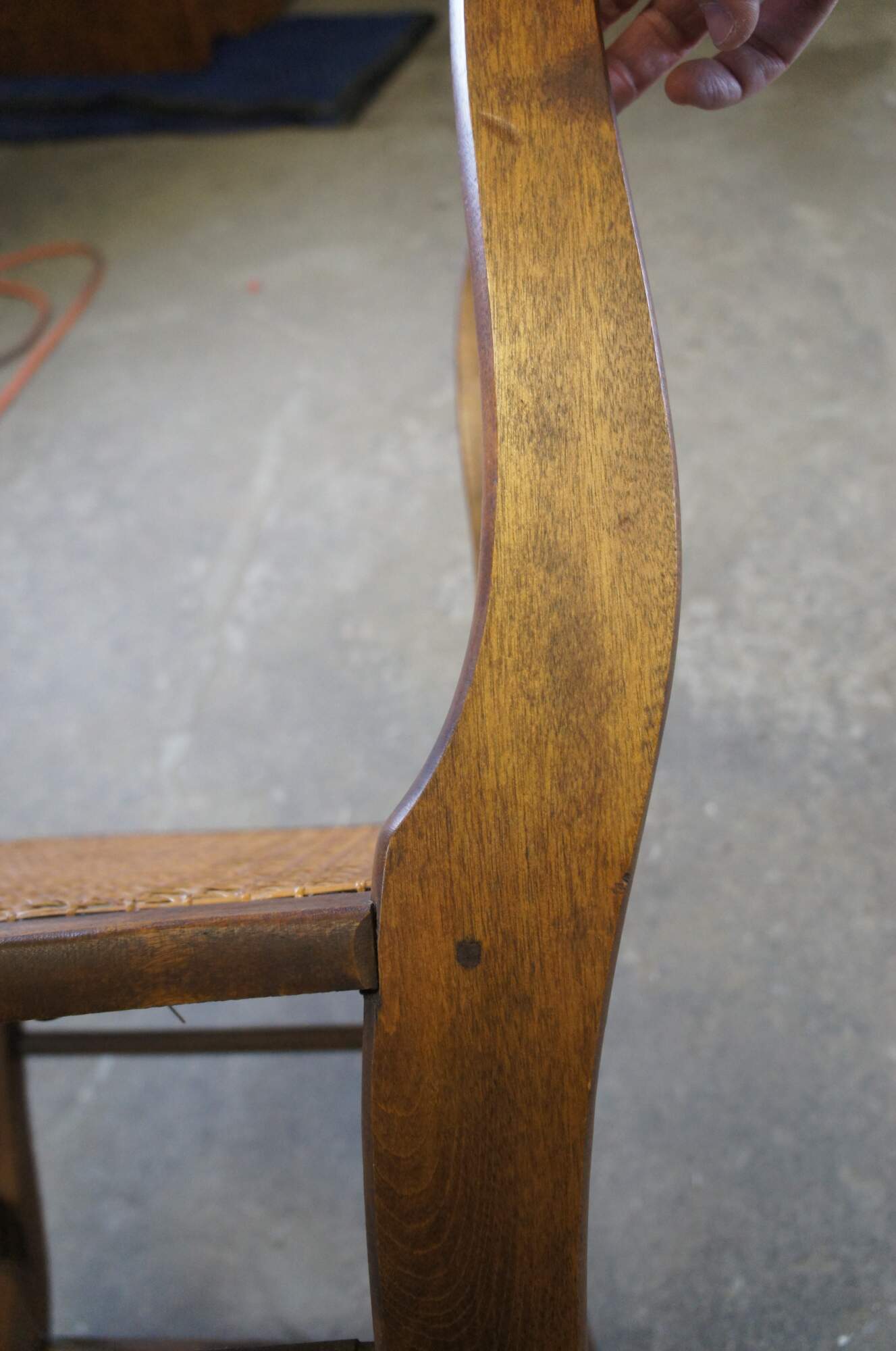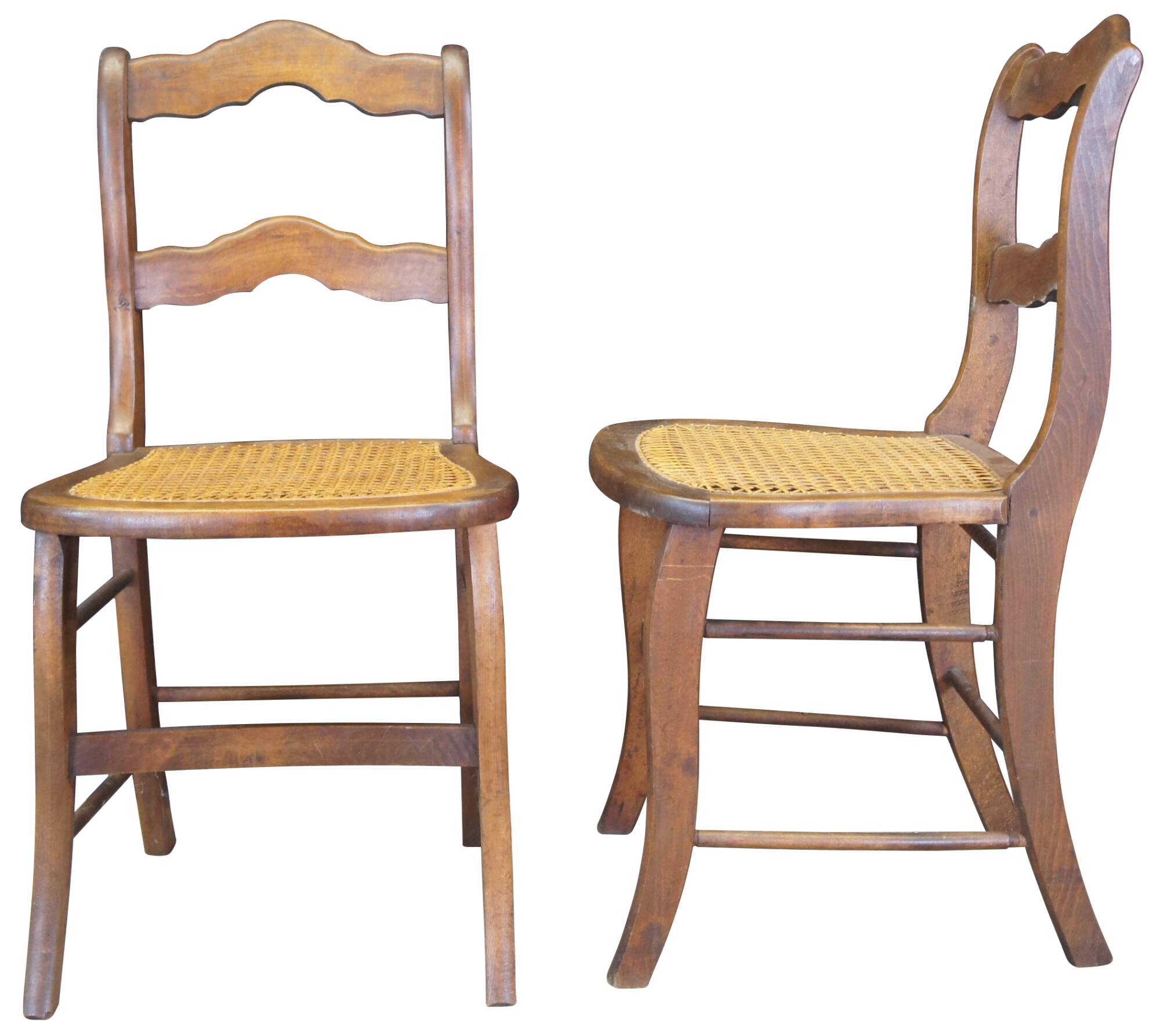 Set of 4 late Victorian side chairs. Made from oak with a contoured ladderback and cane seat.