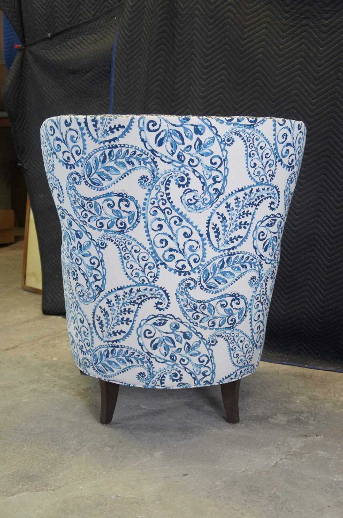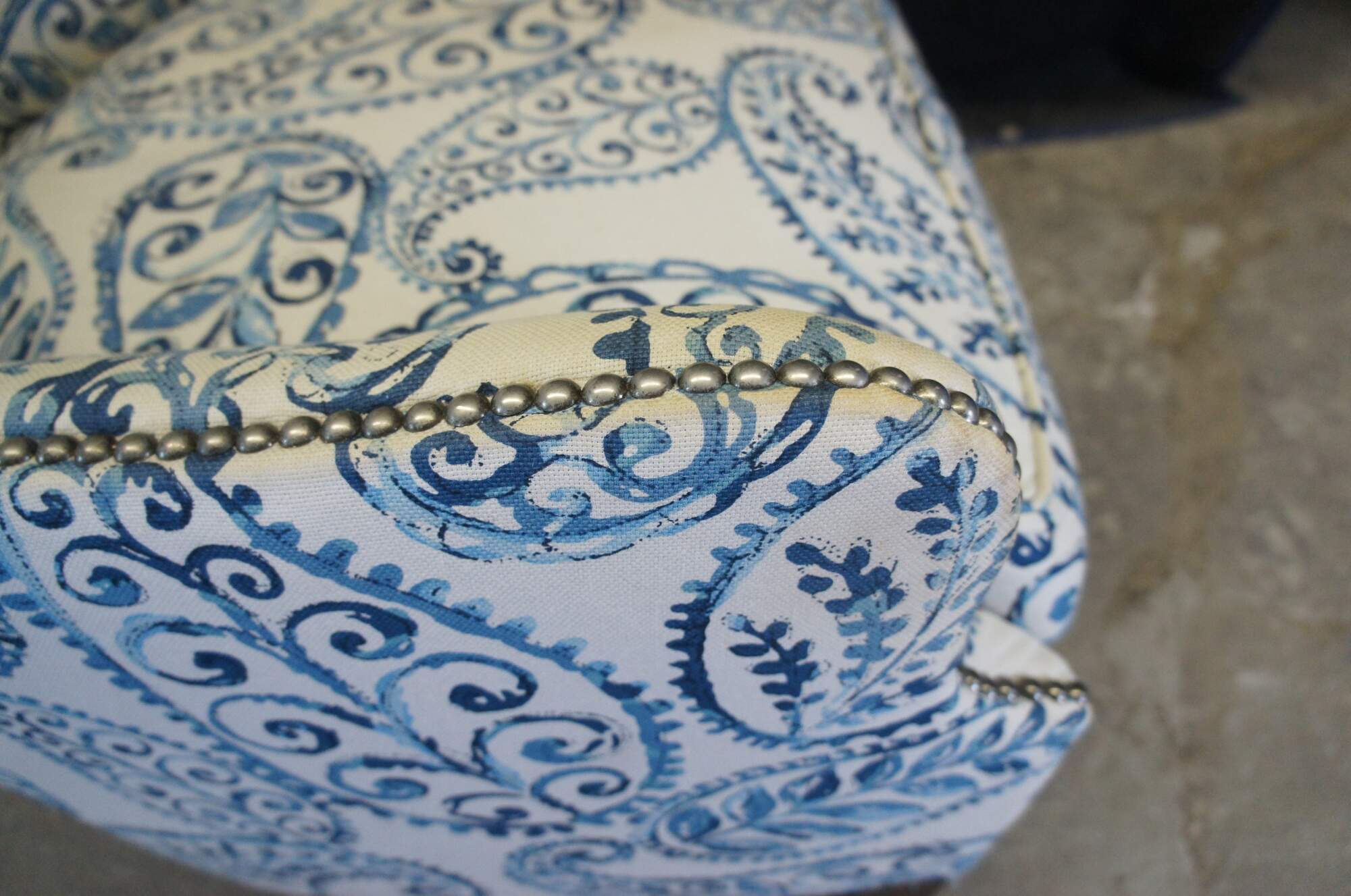 An over scaled paisley print makes the Brielle wing chair an instant statement piece for the living room. Comfortable and conversation-worthy, this updated, classic wingback chair is outlined by hand-applied, platinum-finished nailheads that trace every curve. -Frame is bench made with certified sustainable hardwood that's kiln-dried to prevent warping -Eight-way, hand-tied spring suspension -Tight seat cushioning is soy-based polyfoam wrapped in synthetic fiber and down blend in downproof ticking -Tight back is soy-based polyfoam and fiber -Hand-applied, platinum-finished nailhead trim -Self-welting -Hardwood legs with warm pecan brown finish -Made in North Carolina, USA of domestic and imported materials.
