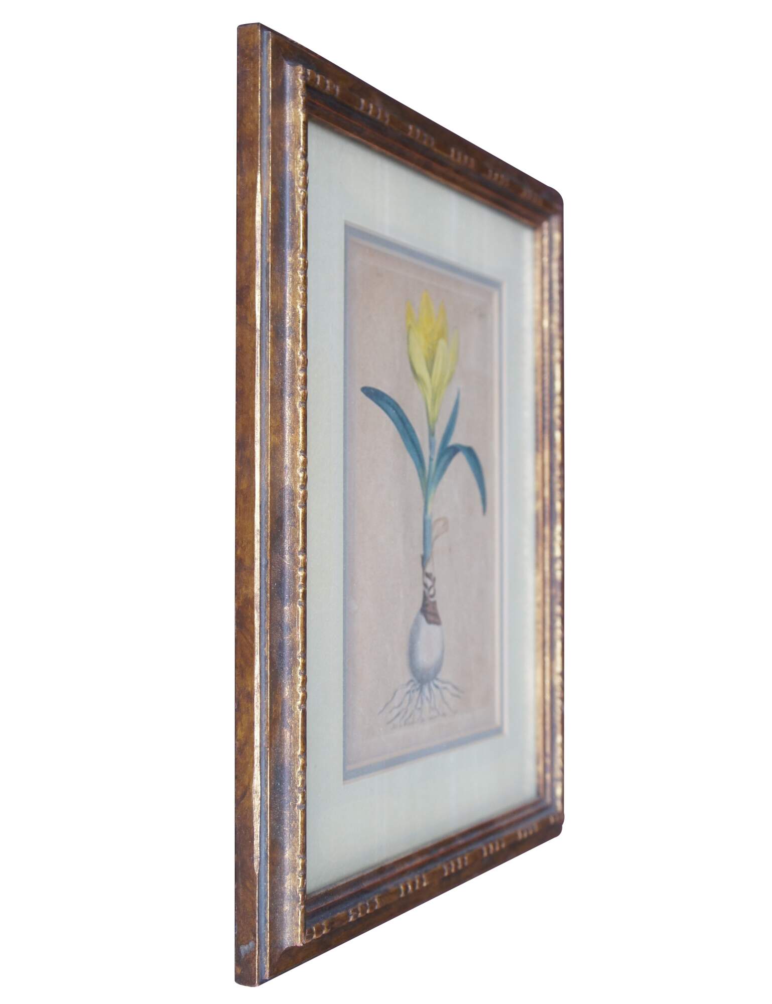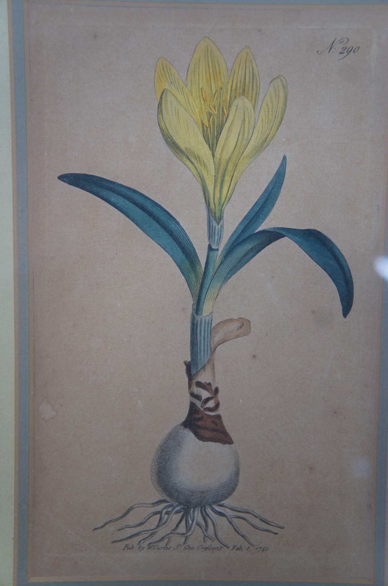 Antique Yellow Amaryllis botanical engraving by William Curtis, circa 1795, from The Botanical Magazine.