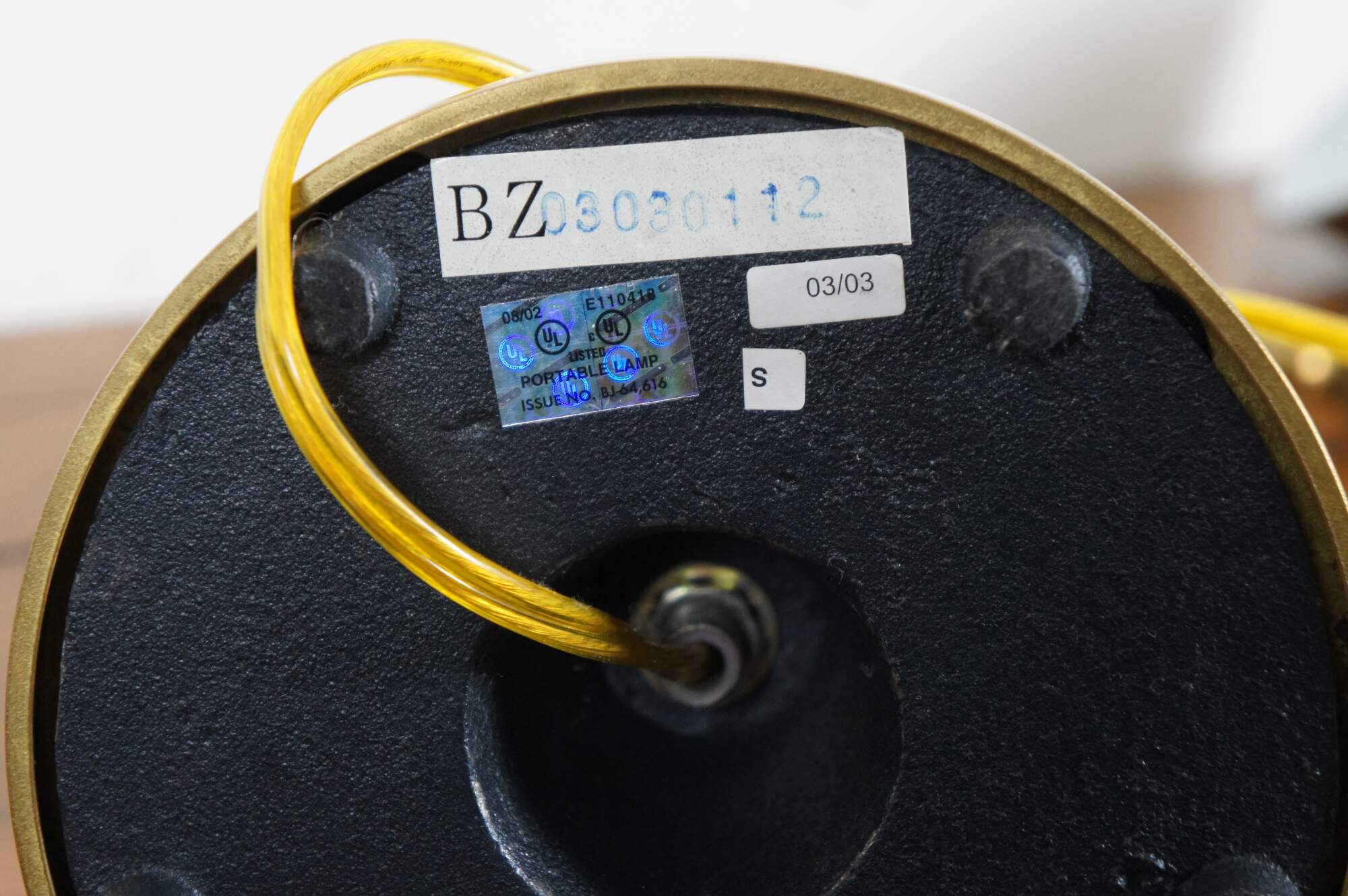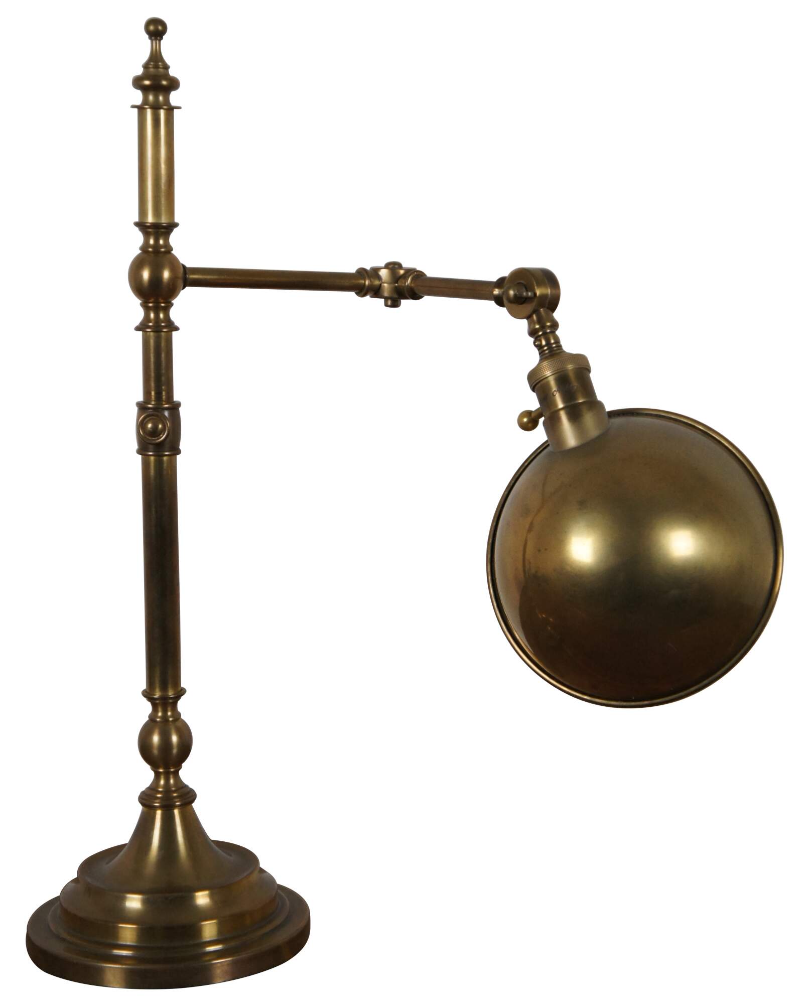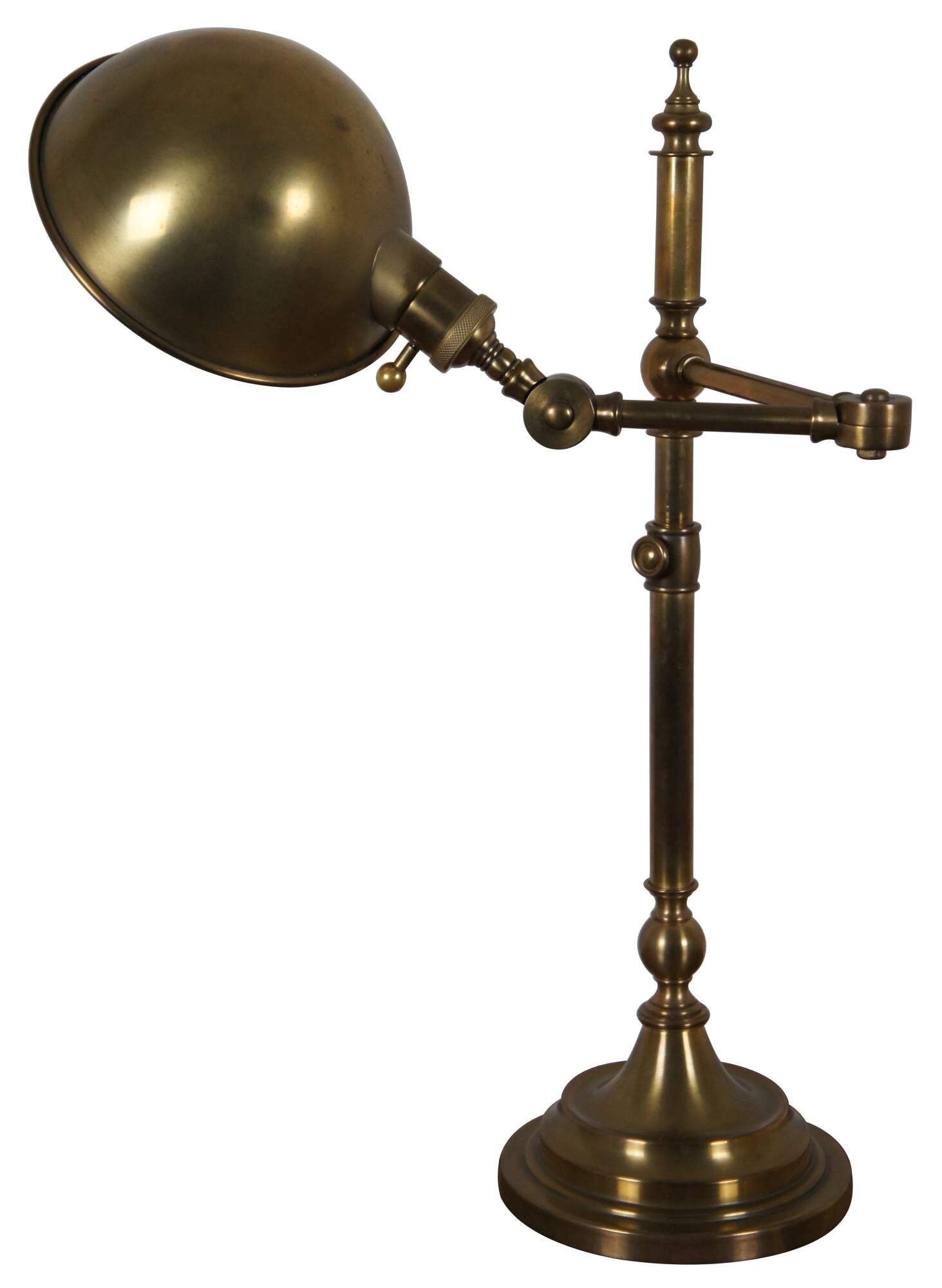 Robert Abbey Ant Bee articulated swing arm table / library desk pharmacy style lamp in antique brass finish. Circa 2003.